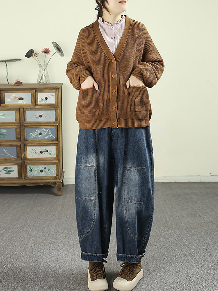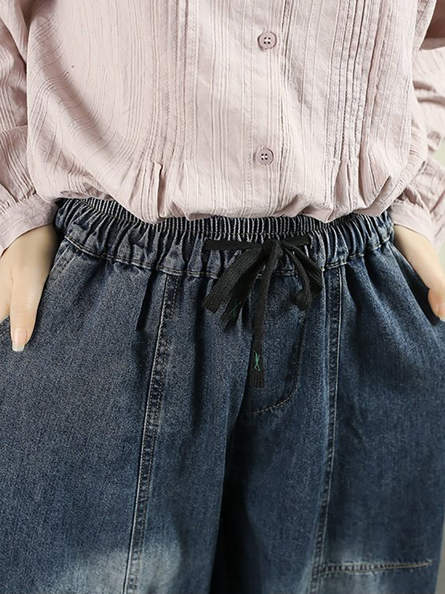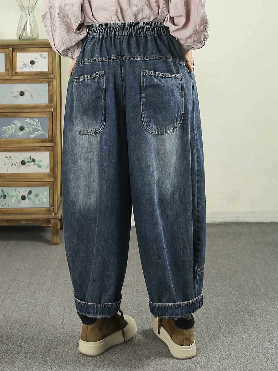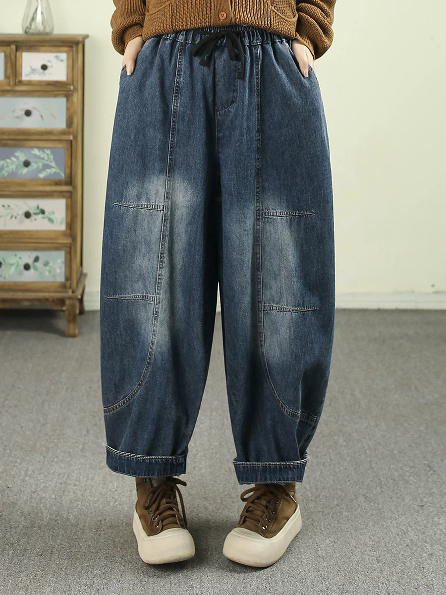Women Spring Vintage Denim Spliced Harem Pants