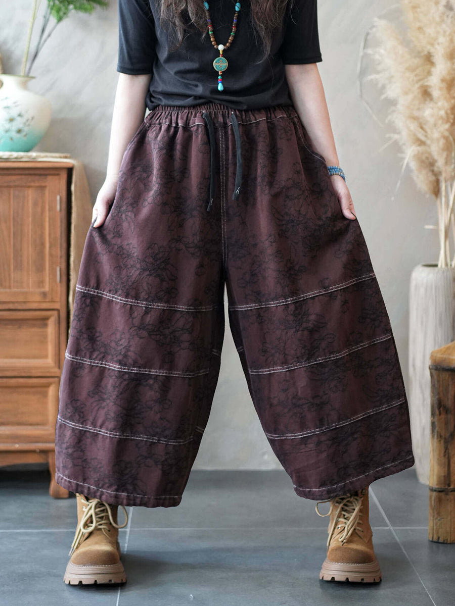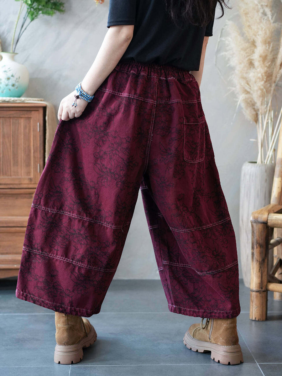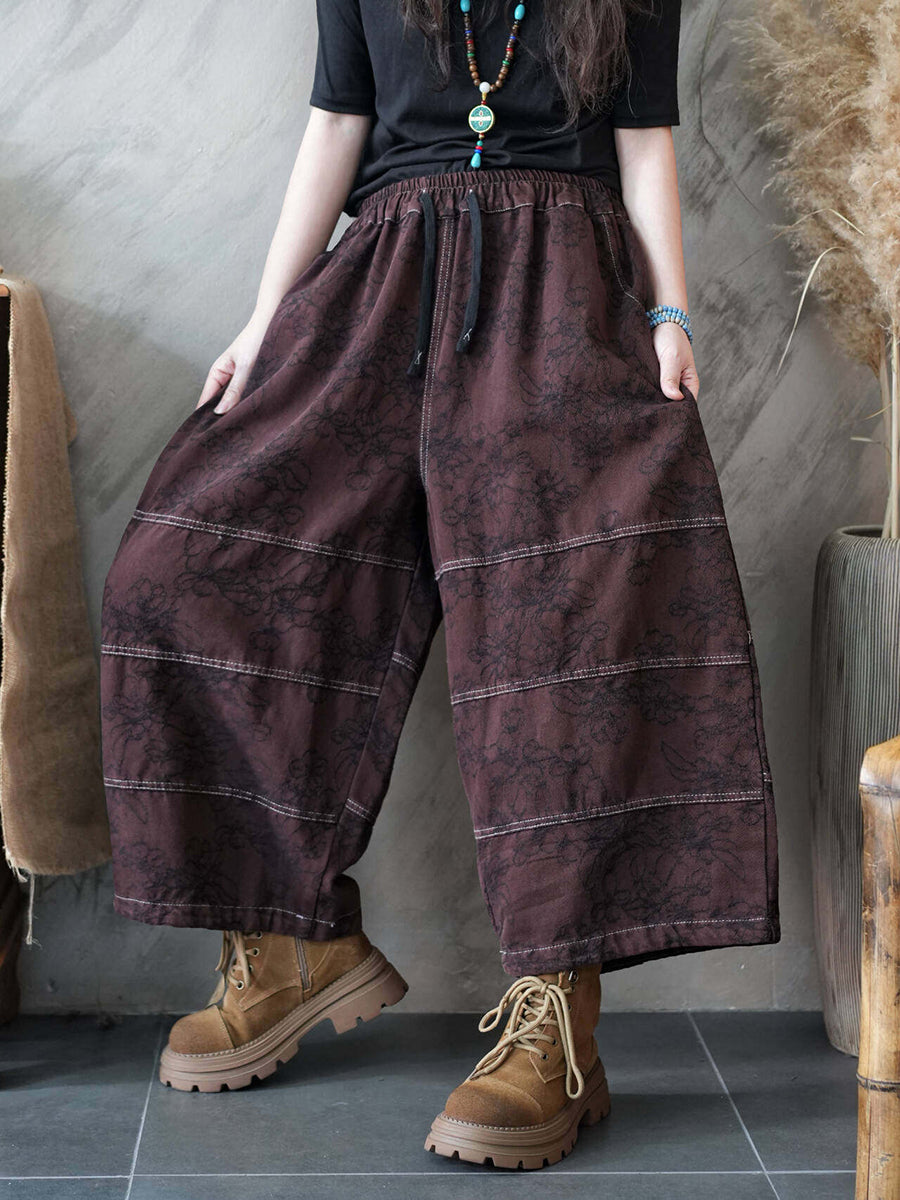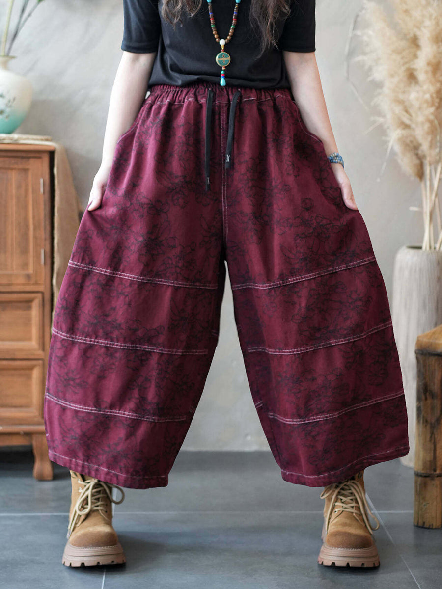 Women Spring Vintage Denim Spliced Wide-leg Pants