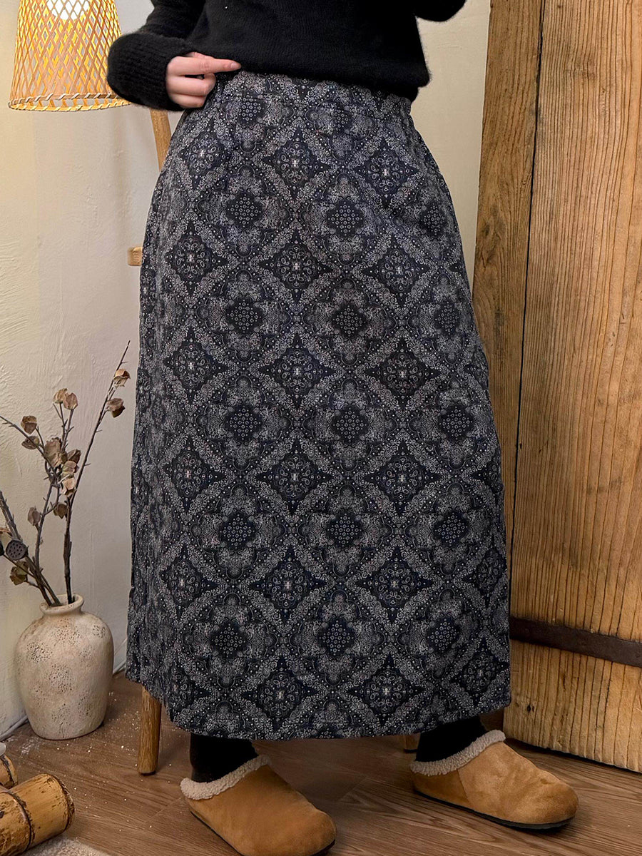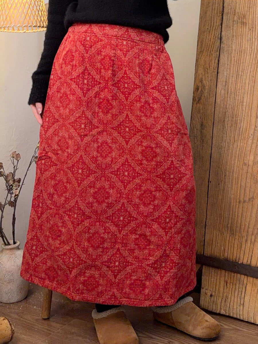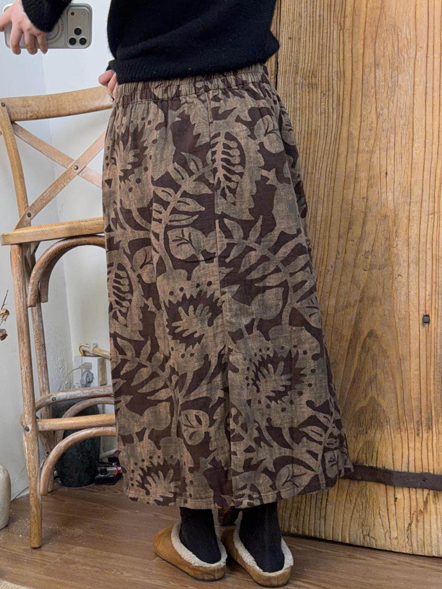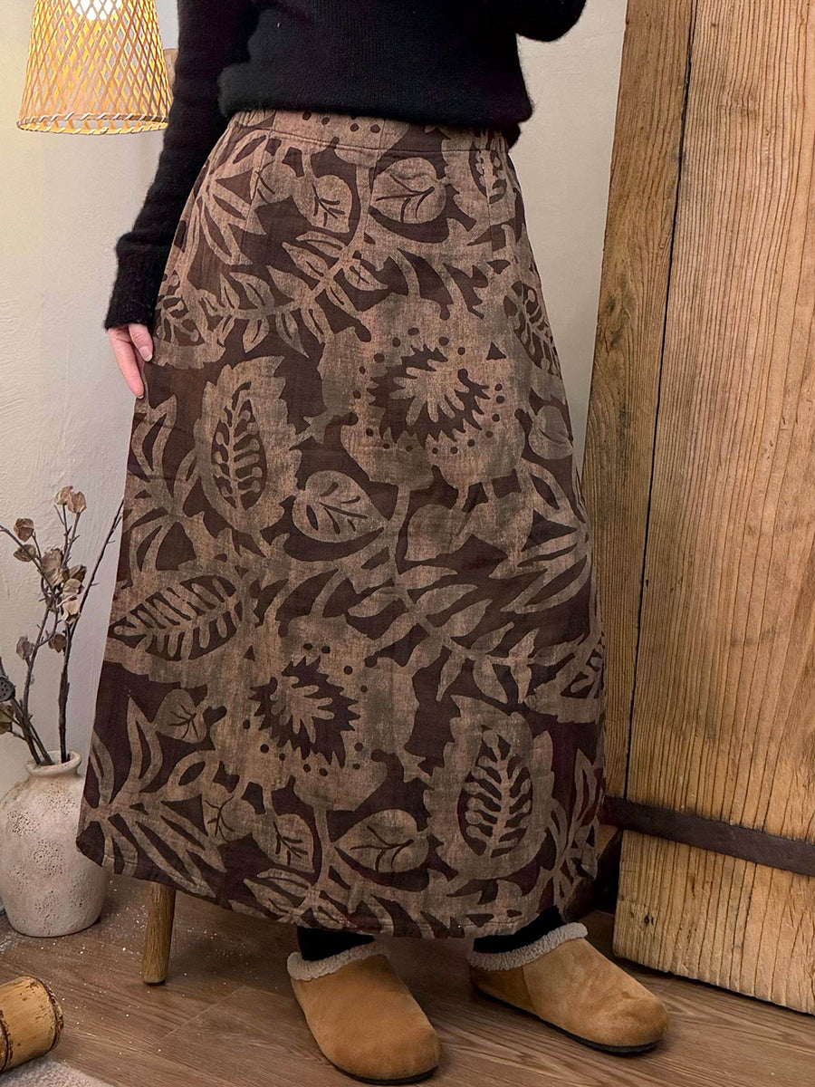 Women Spring Vintage Flower Cotton A-Shape Skirt