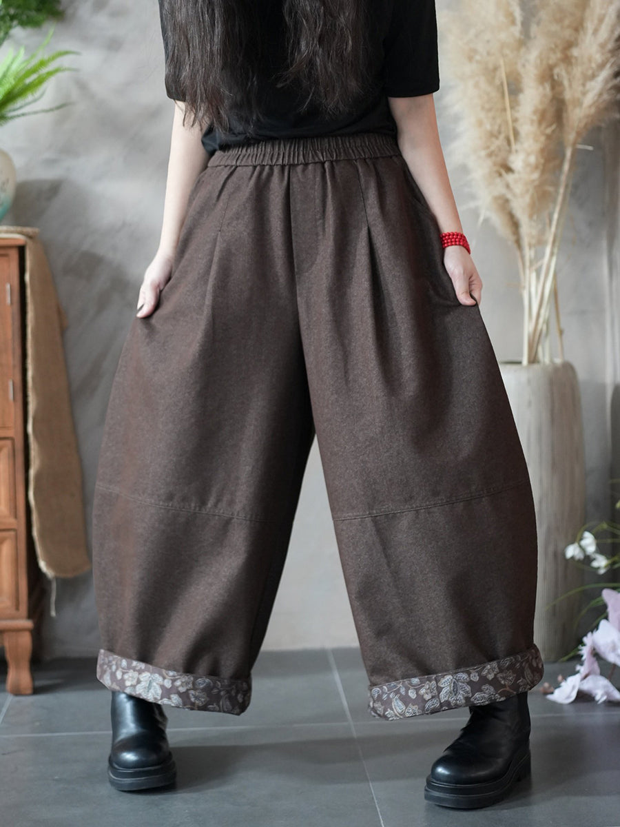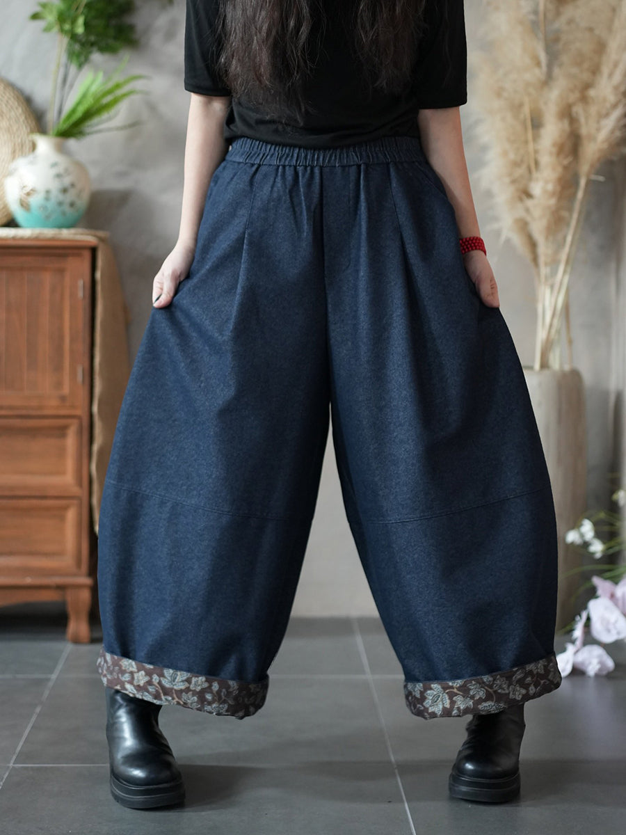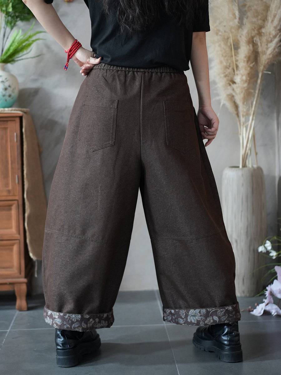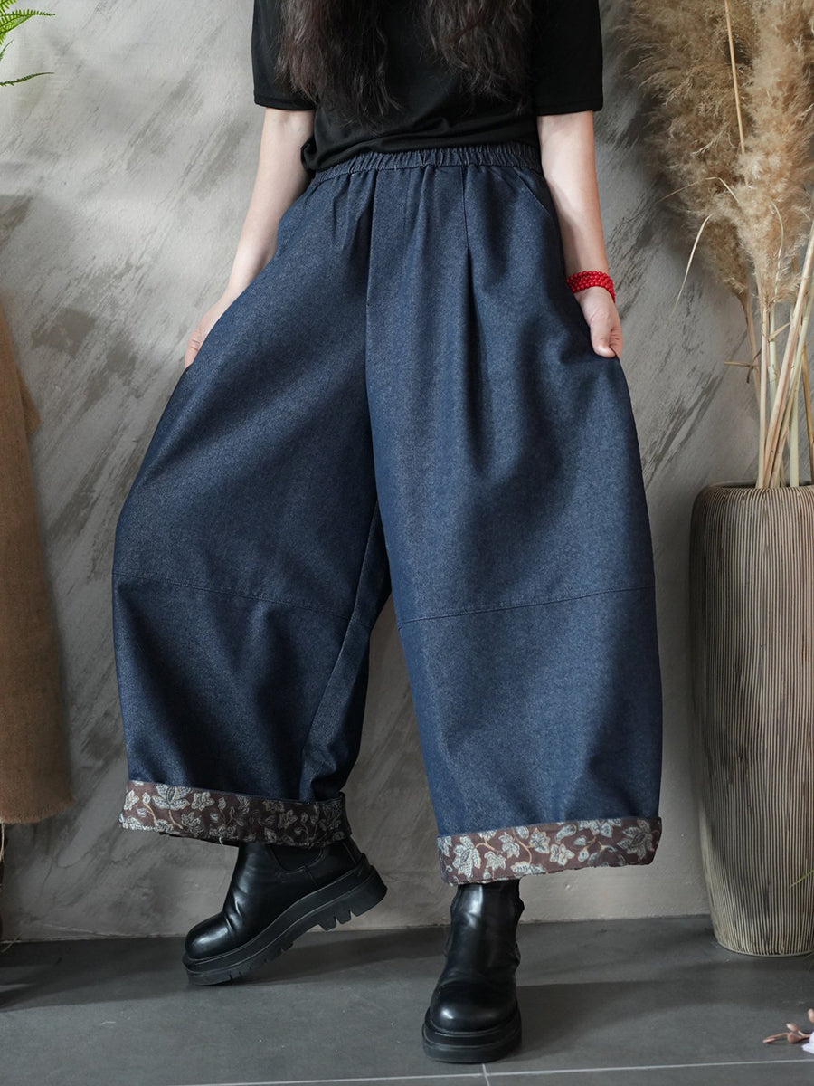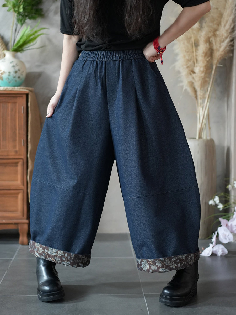 Women Spring Vintage Flower Spliced Wide-leg Pants