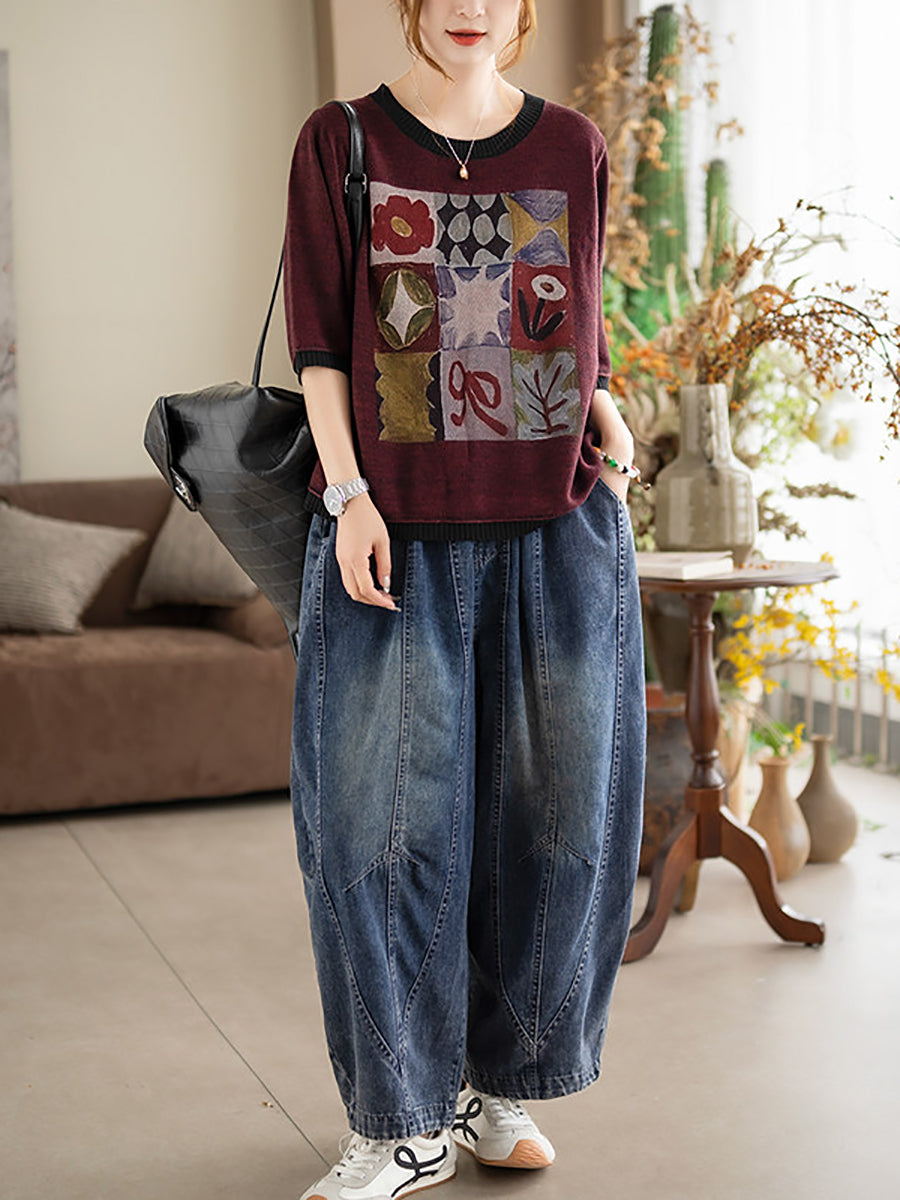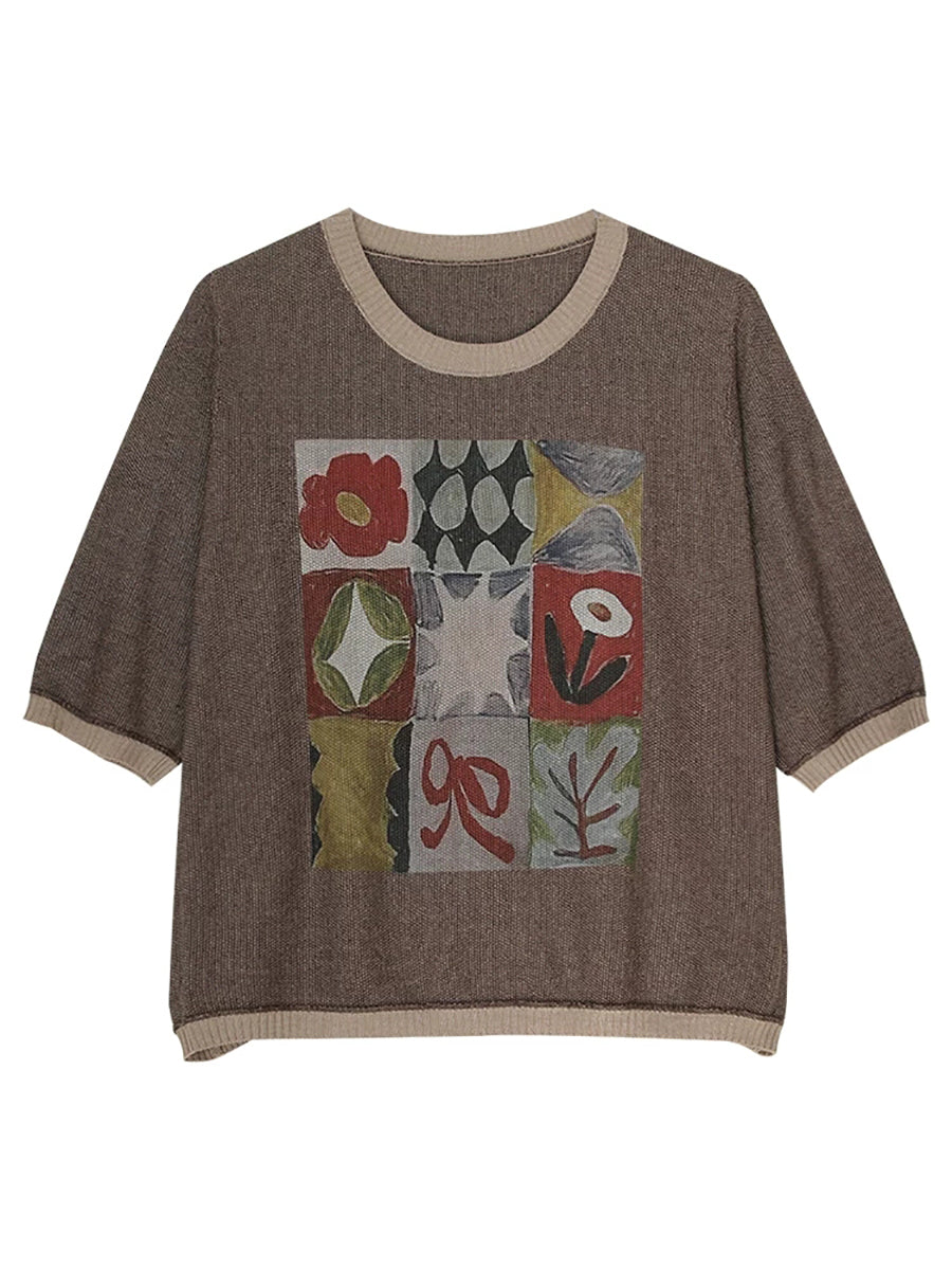 Women Spring Artsy Cotton O-neck Knitted Blouse