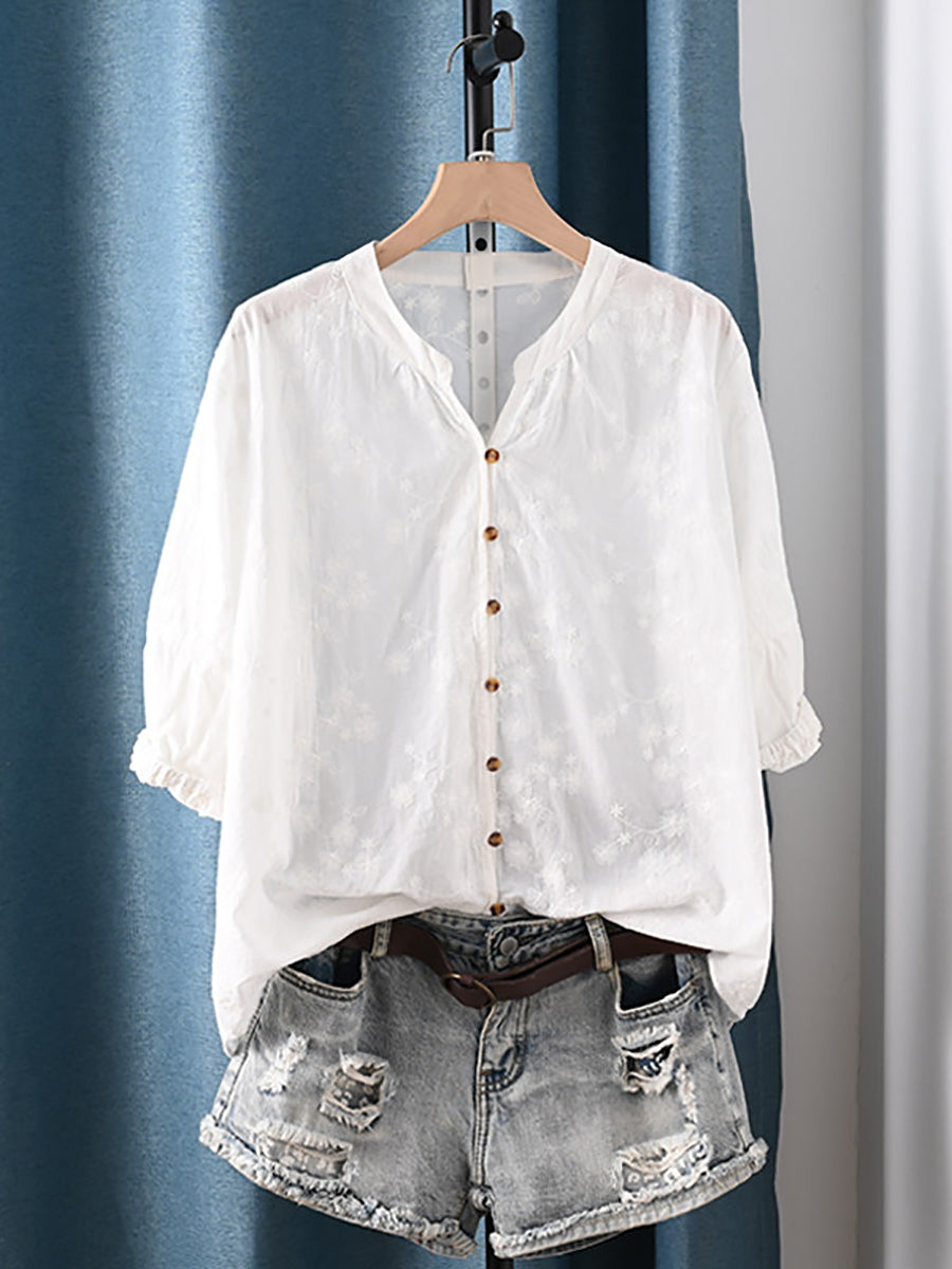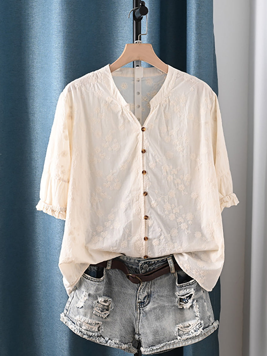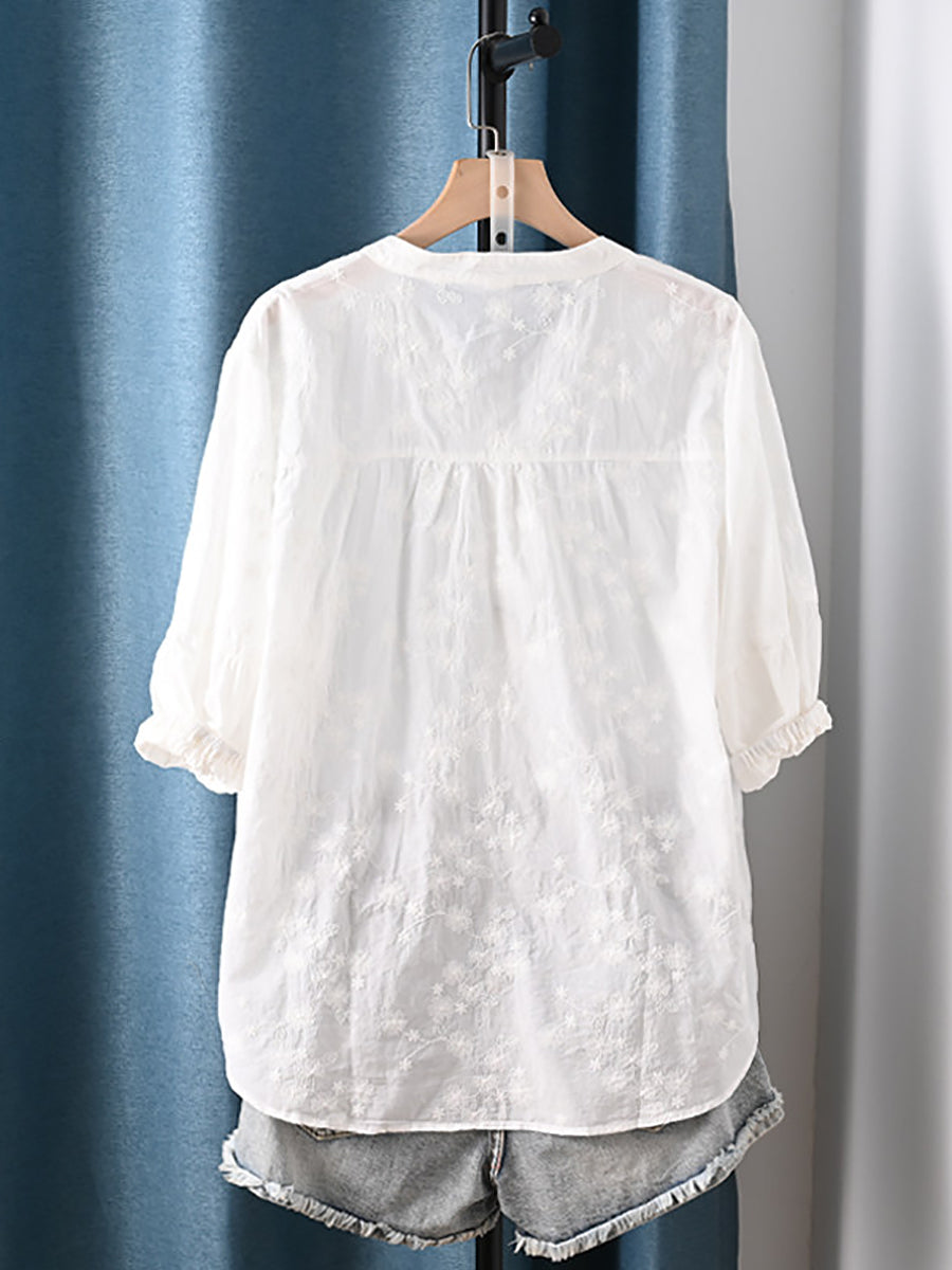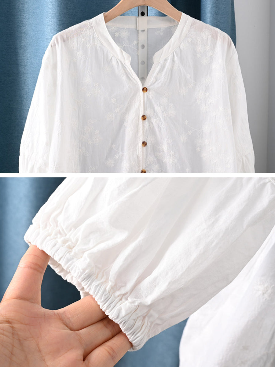 Women Summer Artsy Embroidery 100%Cotton Blouse