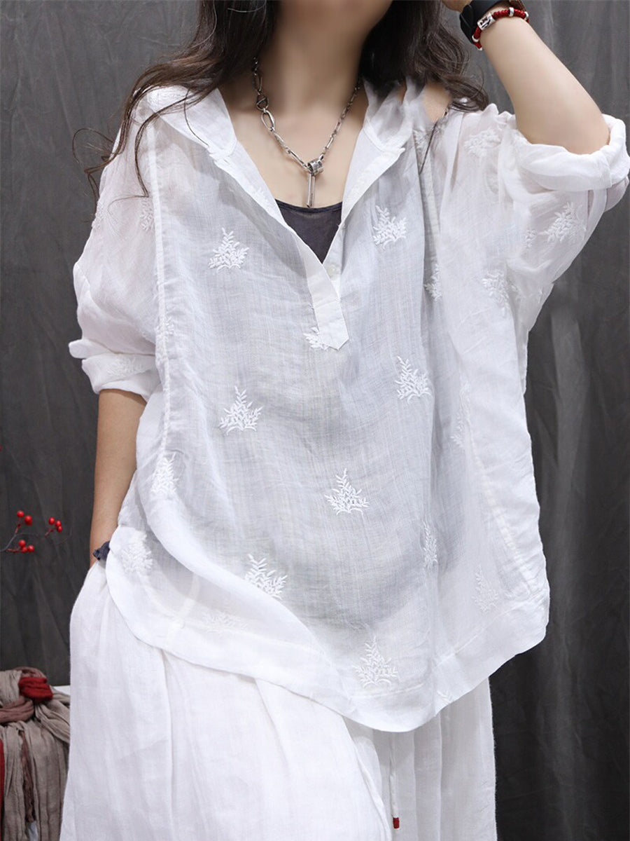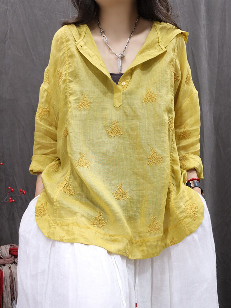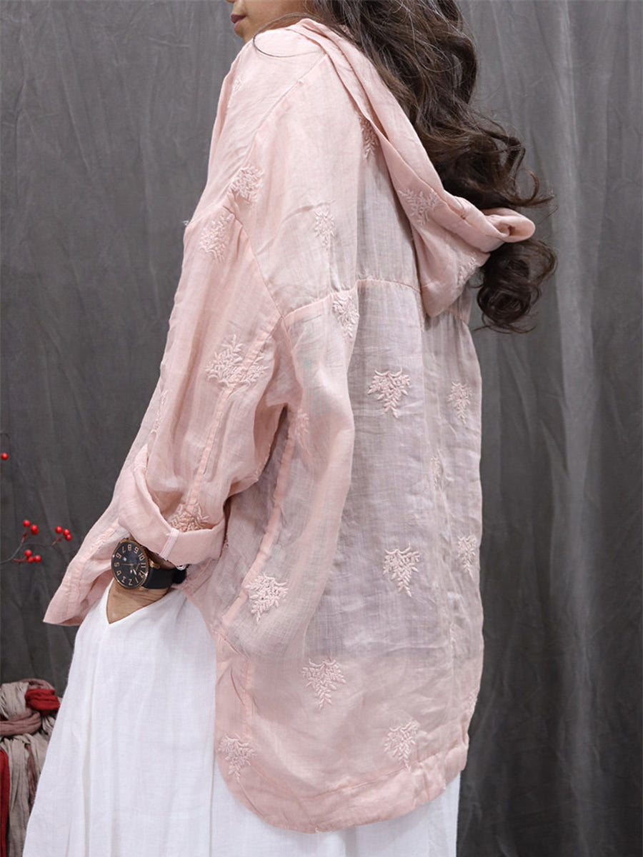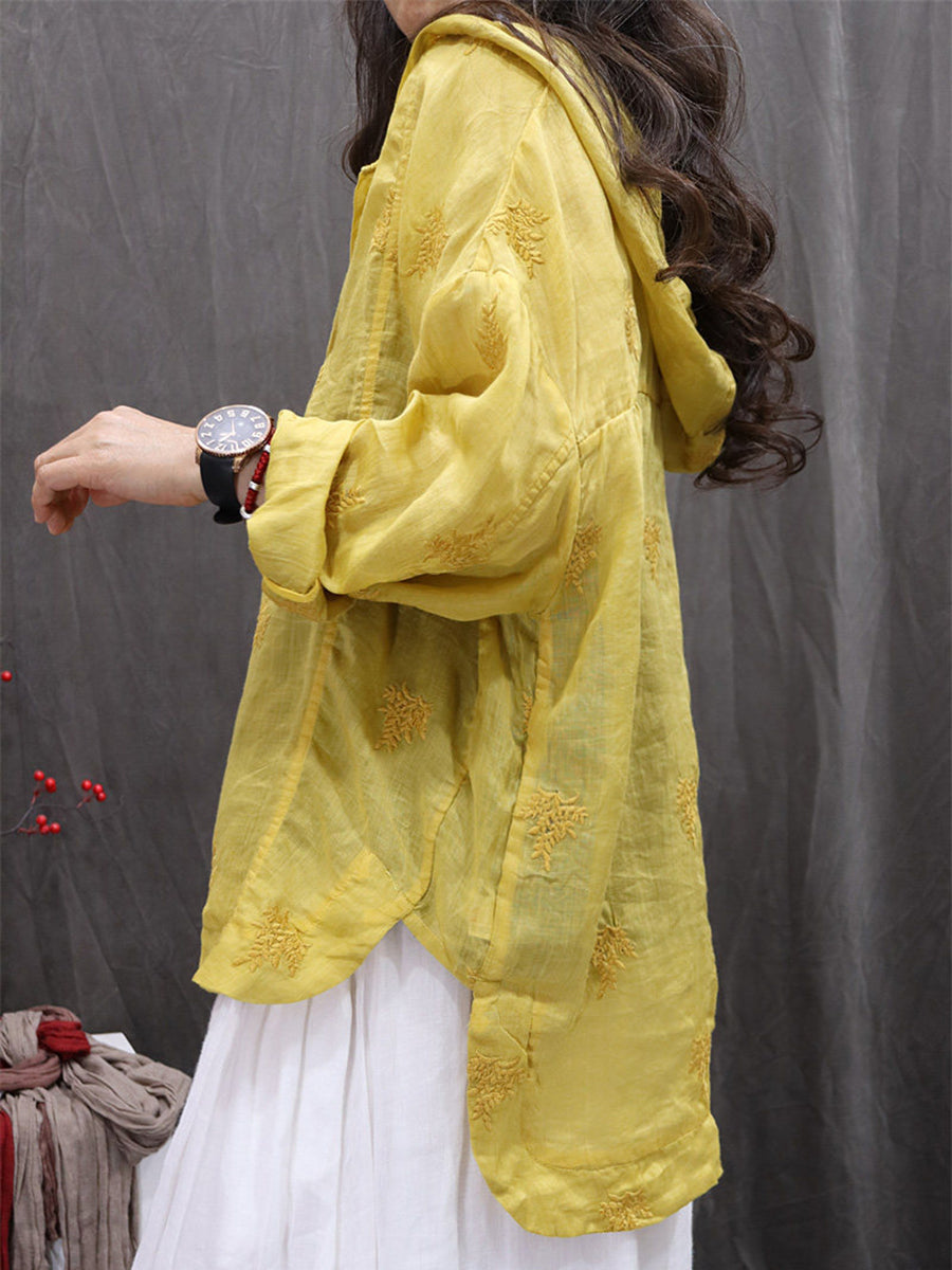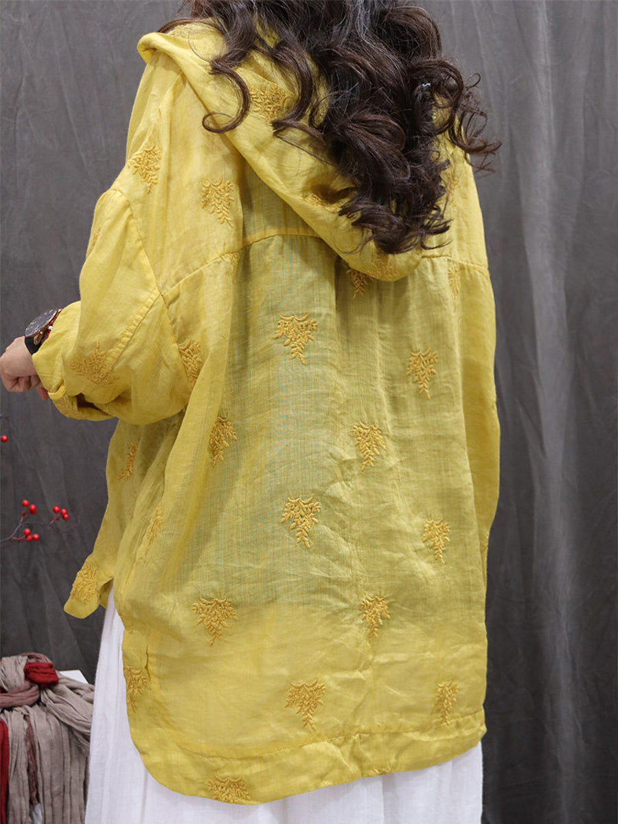 Women Summer Artsy Embroidery 100%Ramie Hoodie