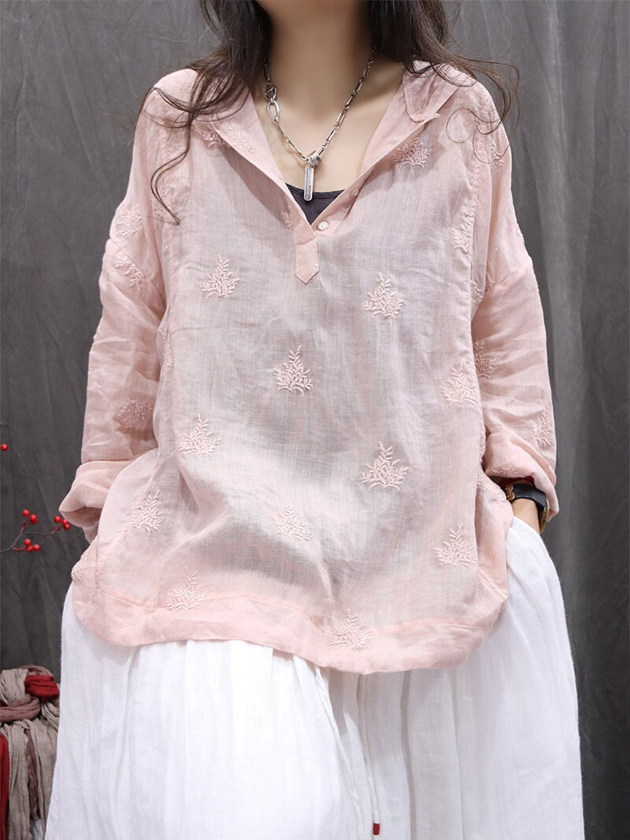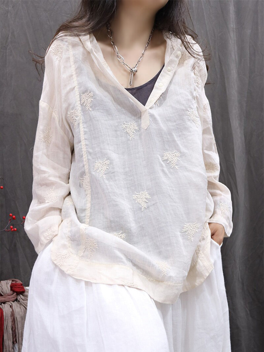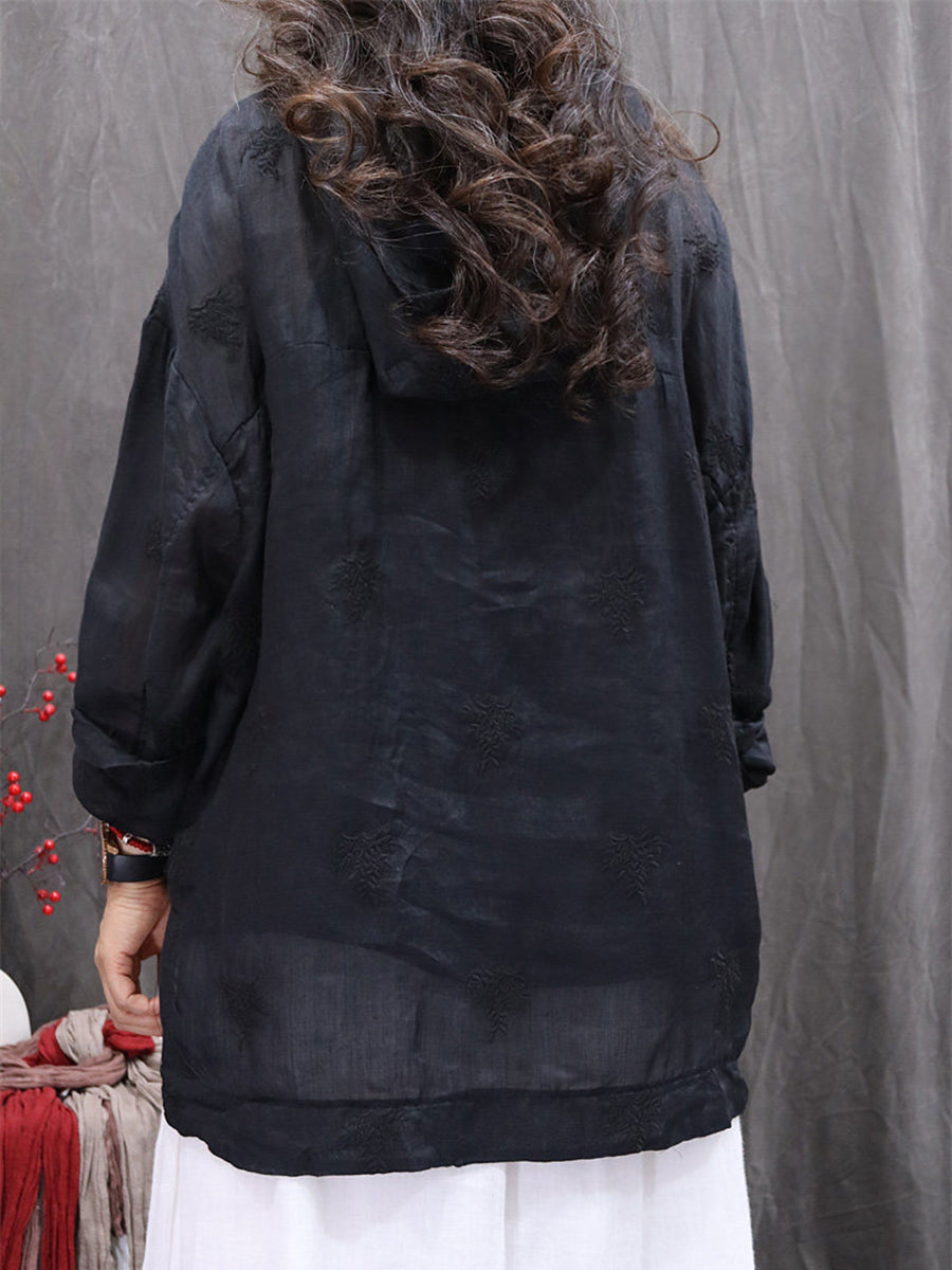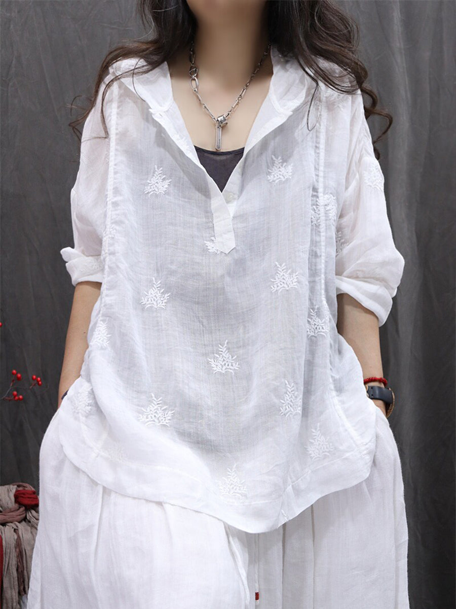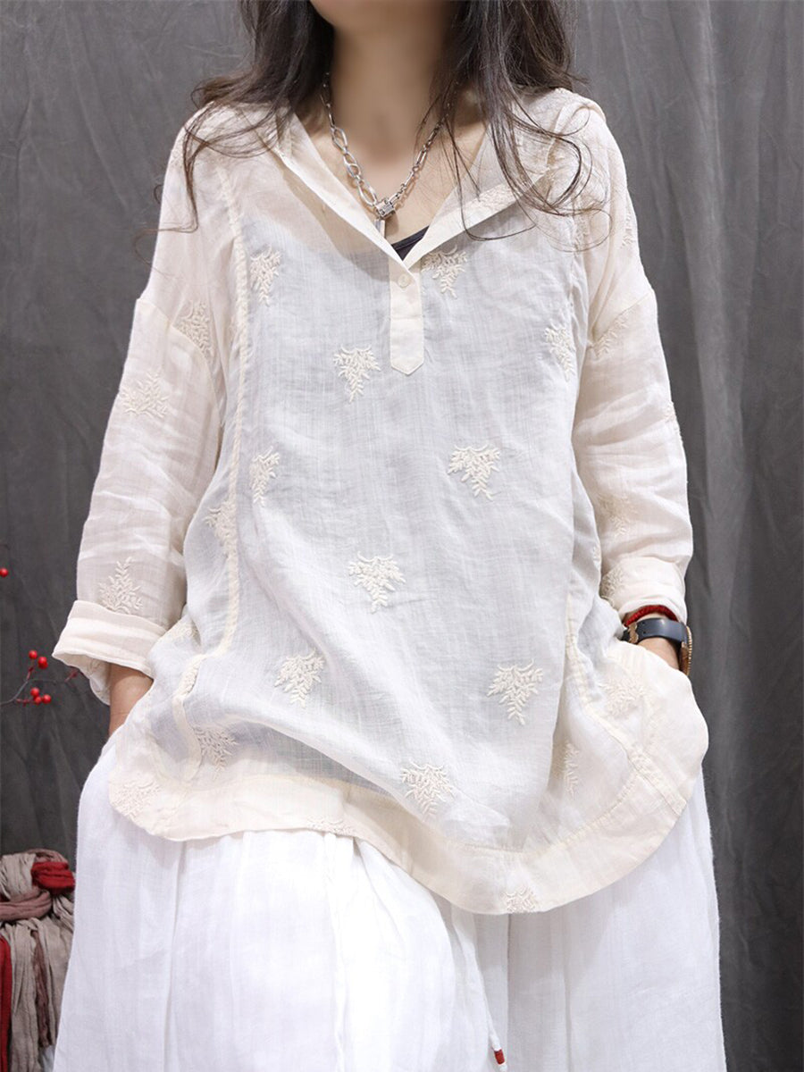 Women Summer Artsy Embroidery 100%Ramie Hoodie