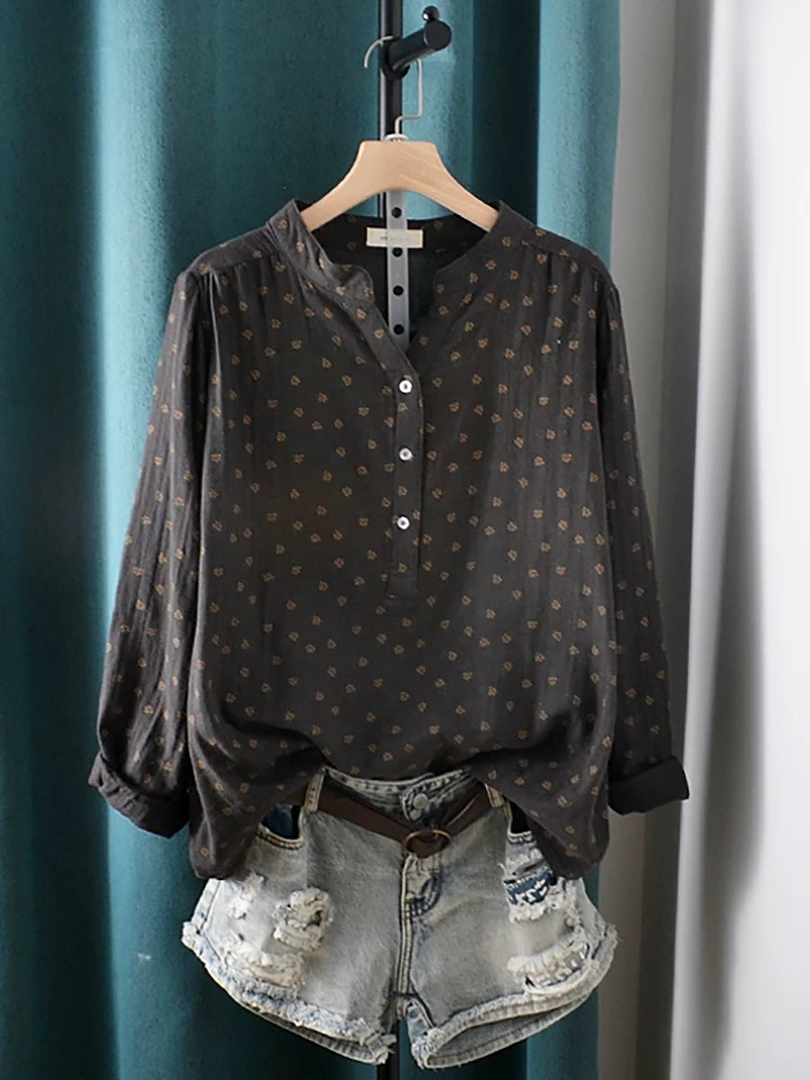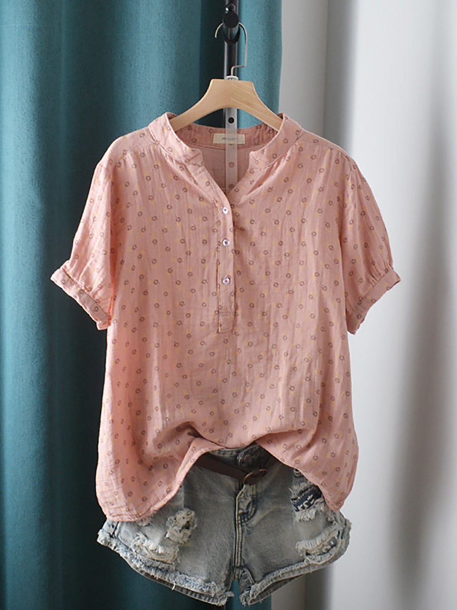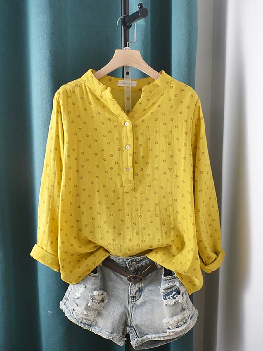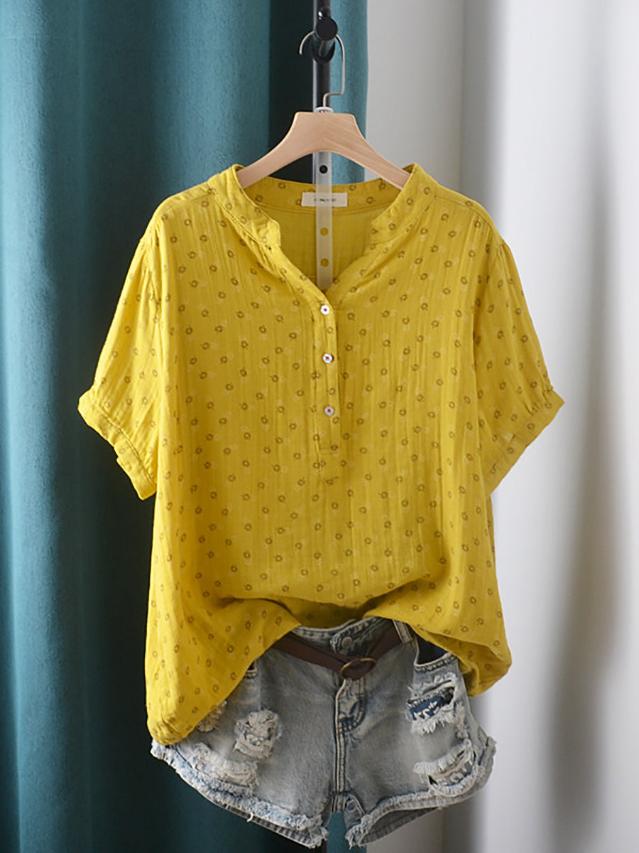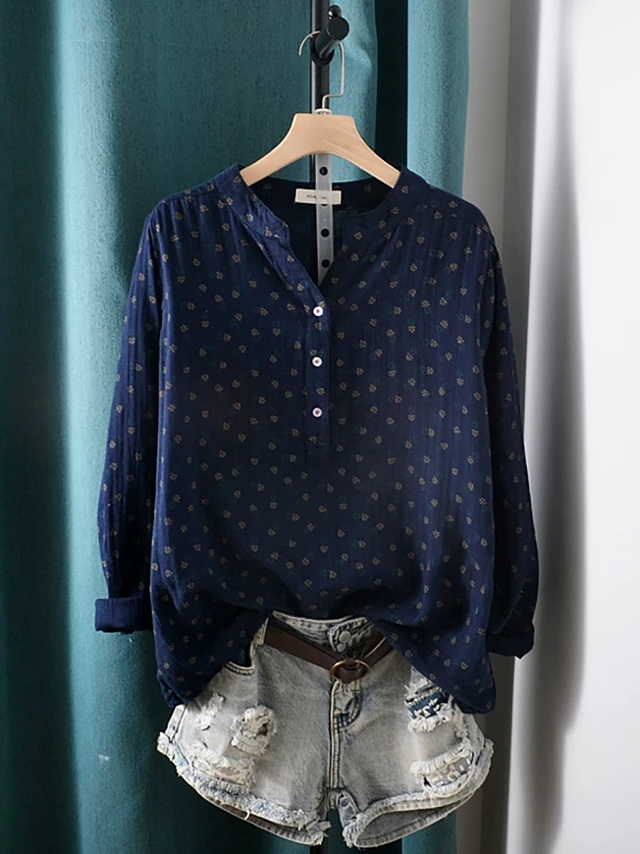 Women Summer Artsy Floral V-Neck 100%Cotton Shirt