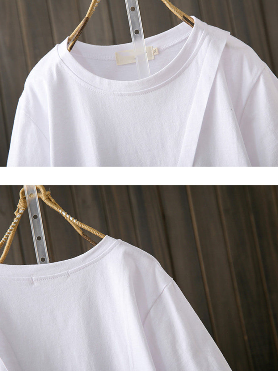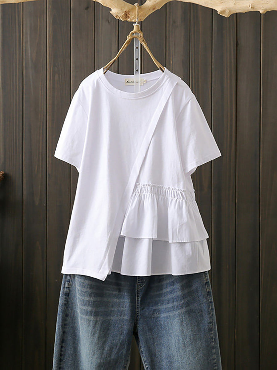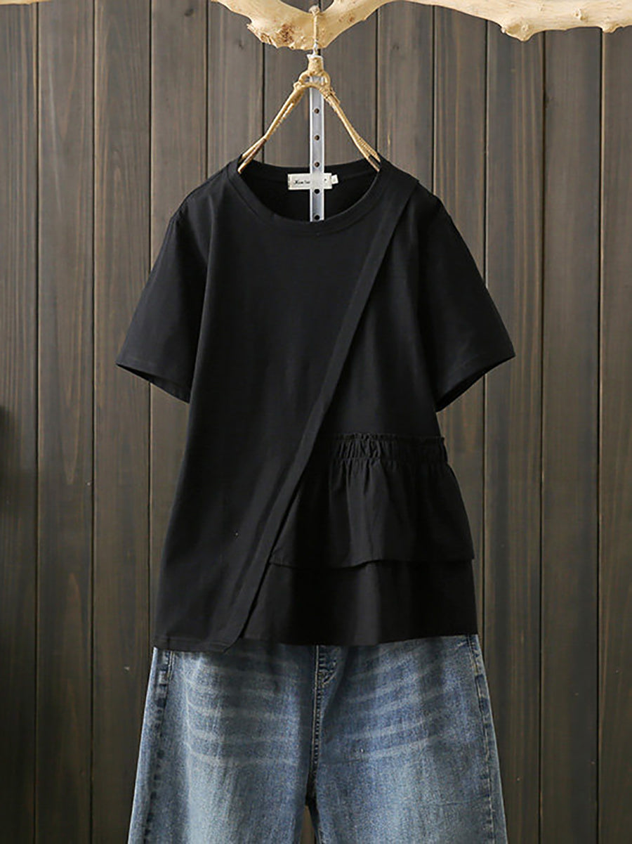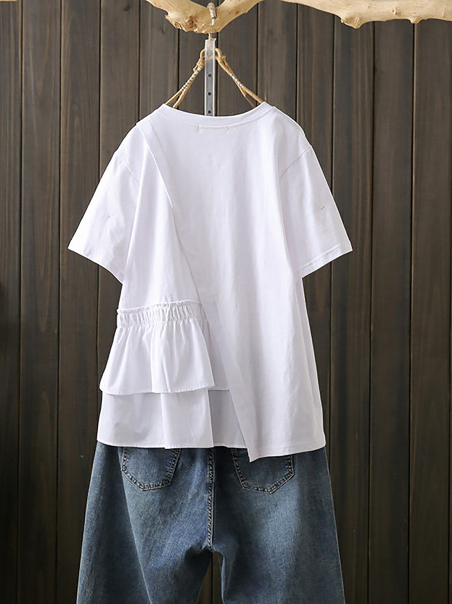 Women Summer Artsy Irregular Spliced Cotton T-Shirt