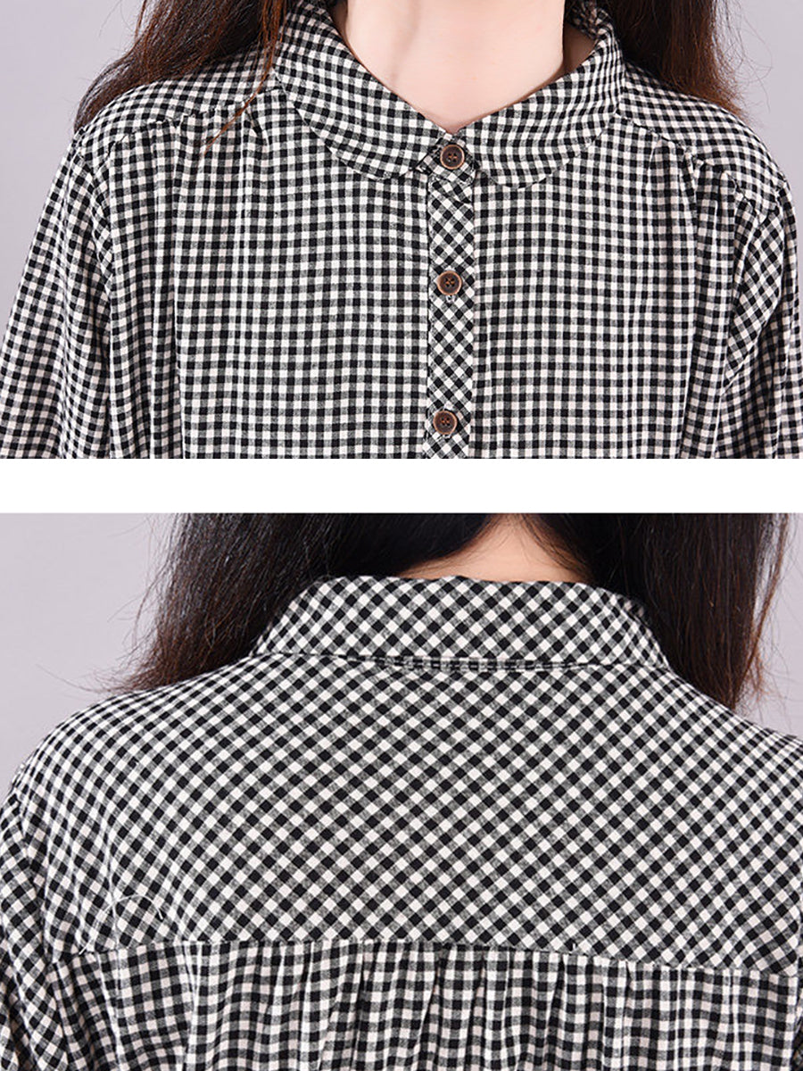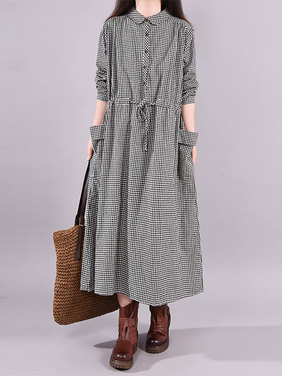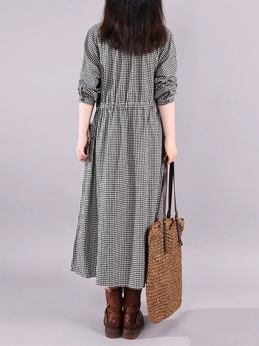 Women Summer Artsy Plaid Turn-down Collar Dress