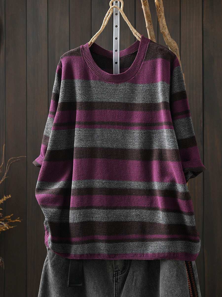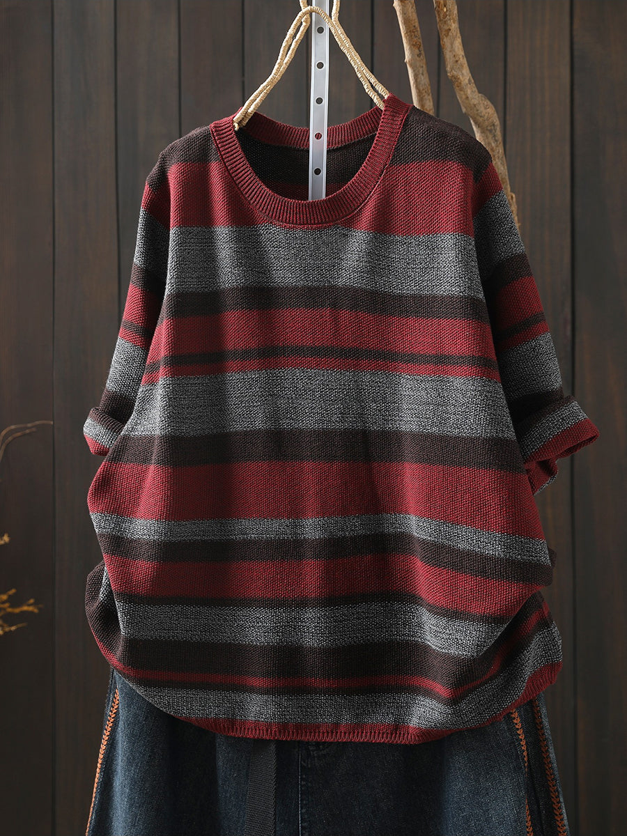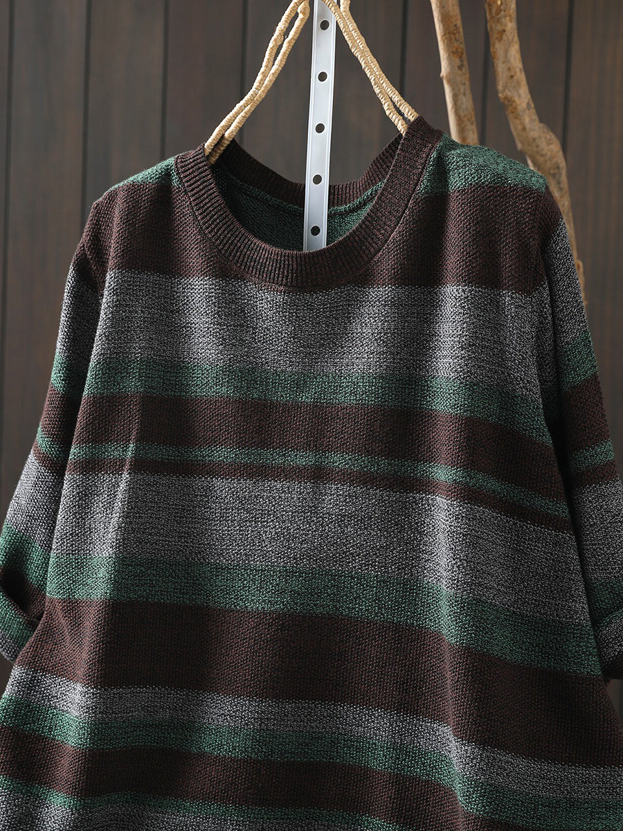 Women Summer Artsy Stripe Knitted O-Neck Blouse
