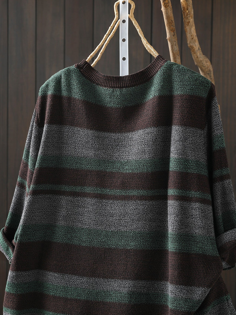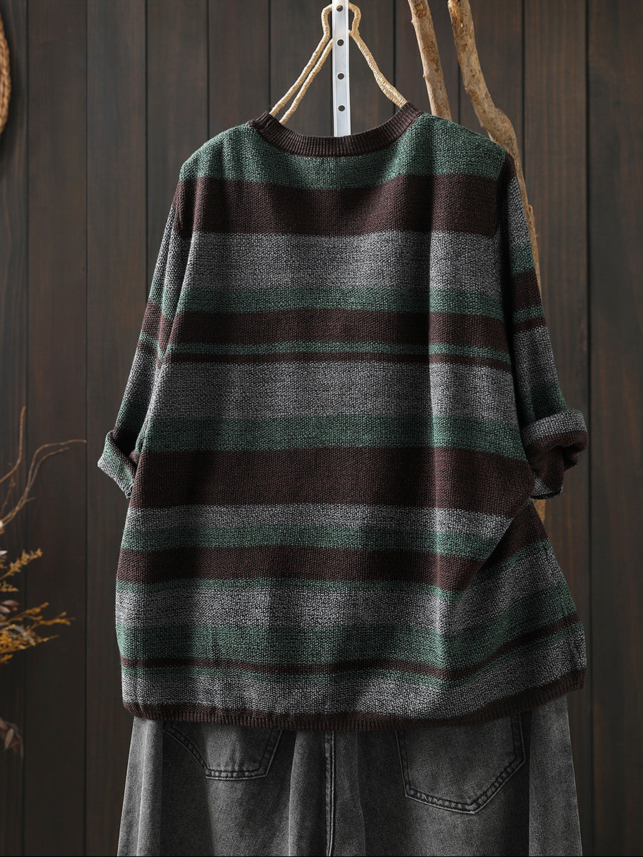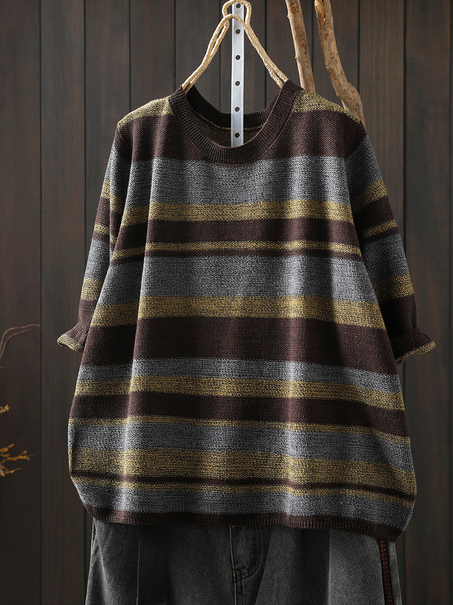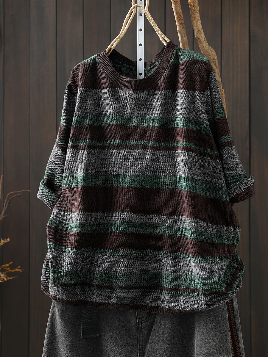 Women Summer Artsy Stripe Knitted O-Neck Blouse