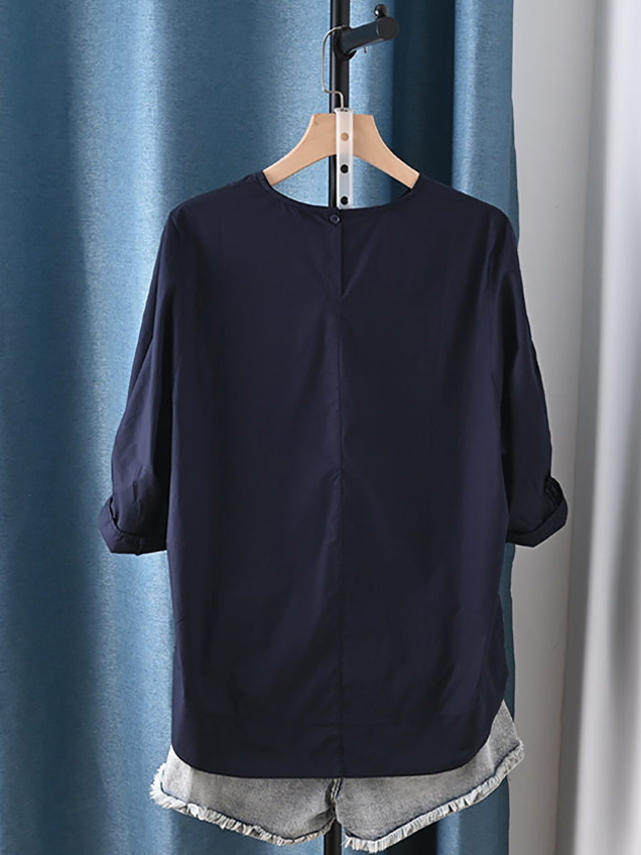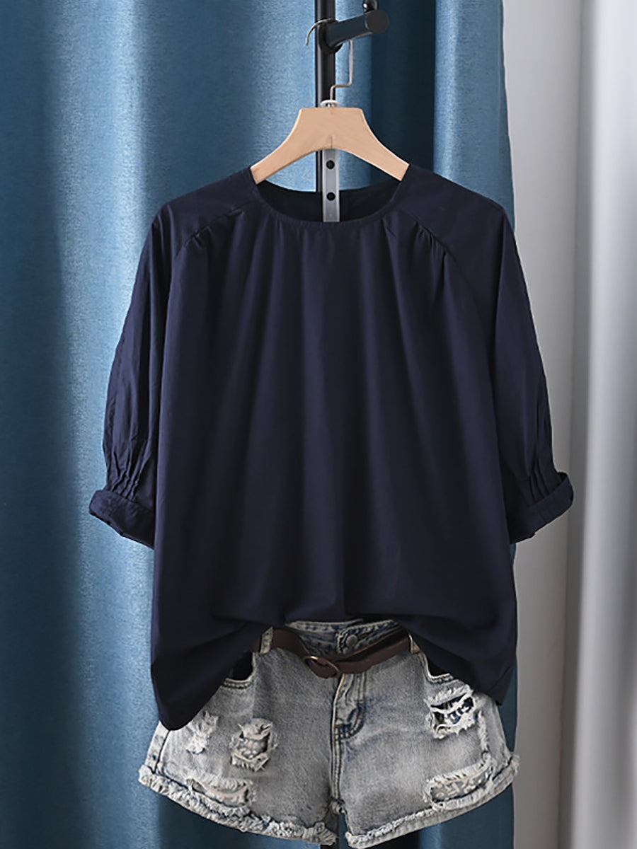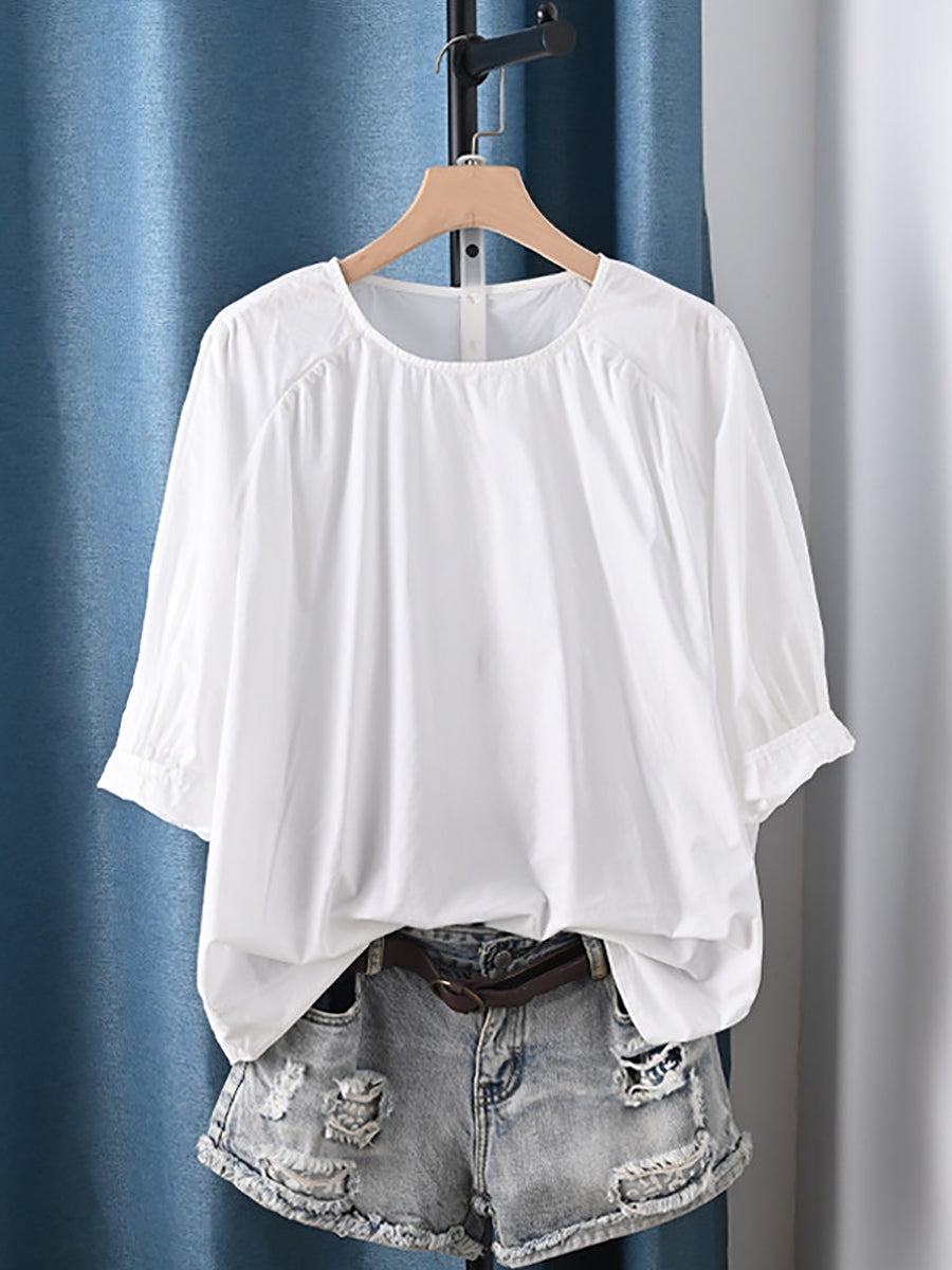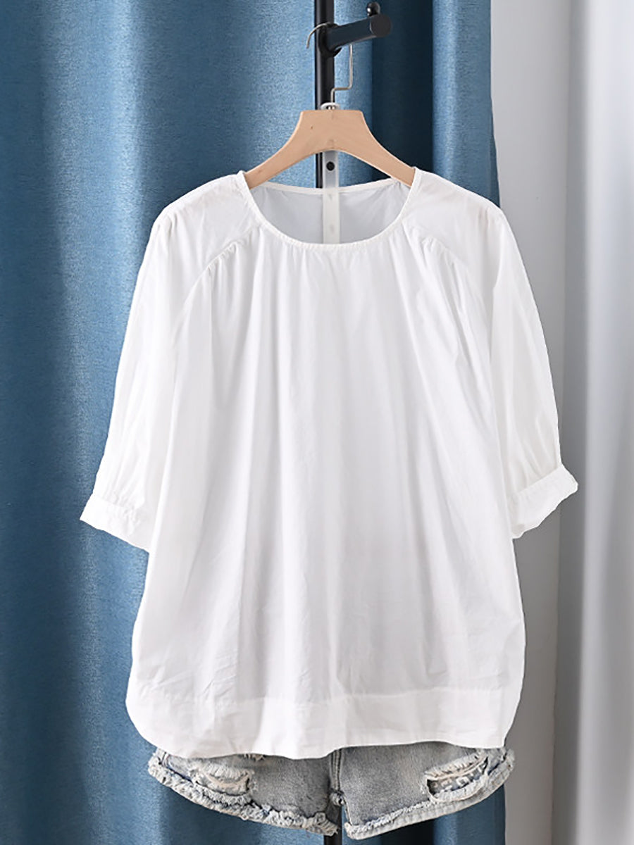 Women Summer Casual Pure Color 100%Cotton Blouse