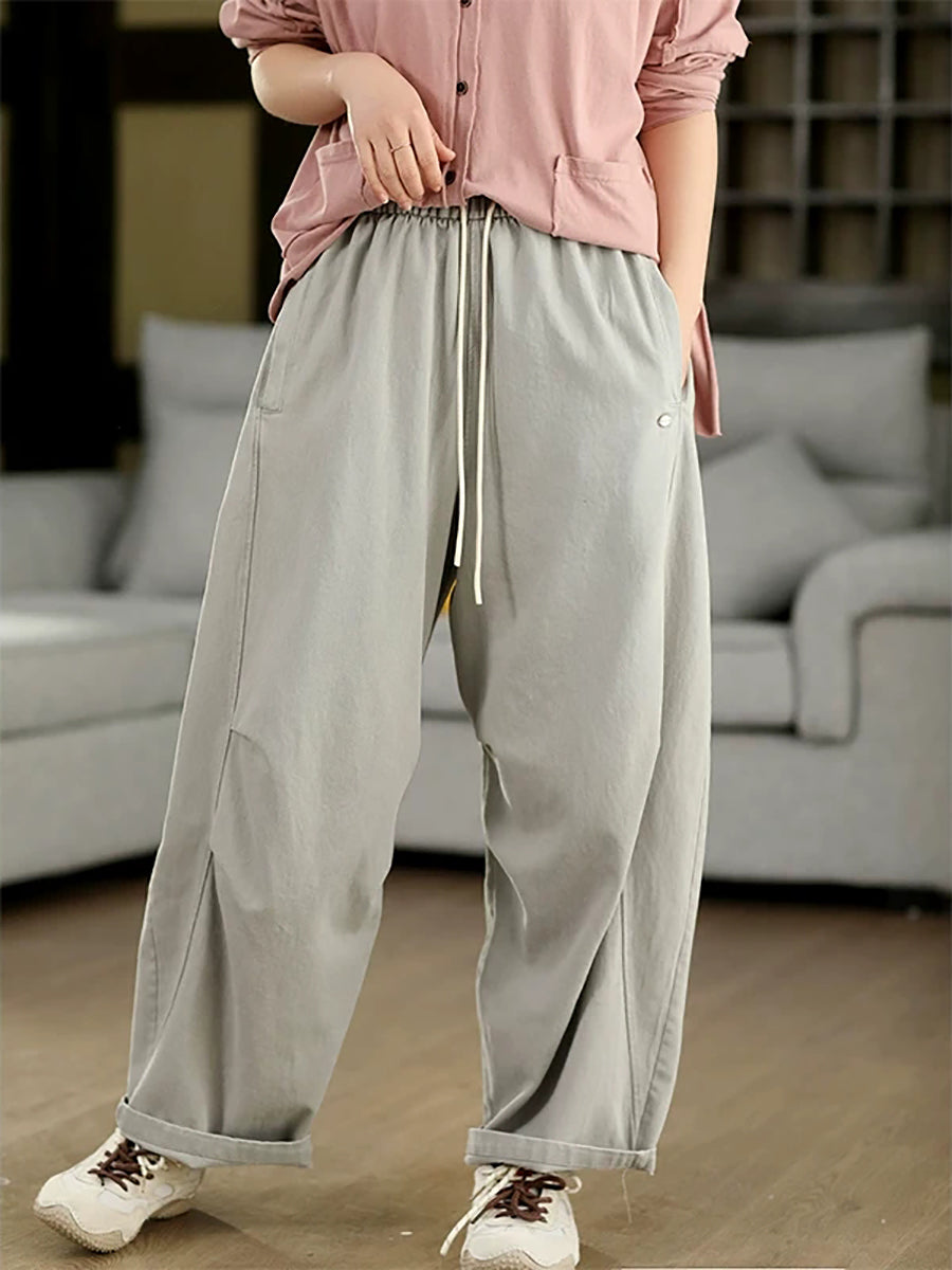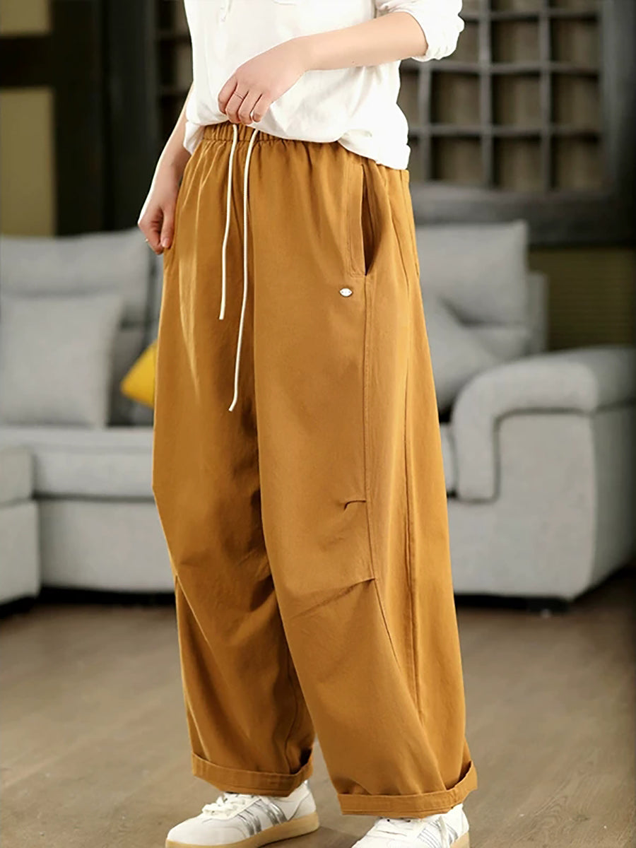 Women Summer Casual Pure Color 100%Cotton Harem Pants
