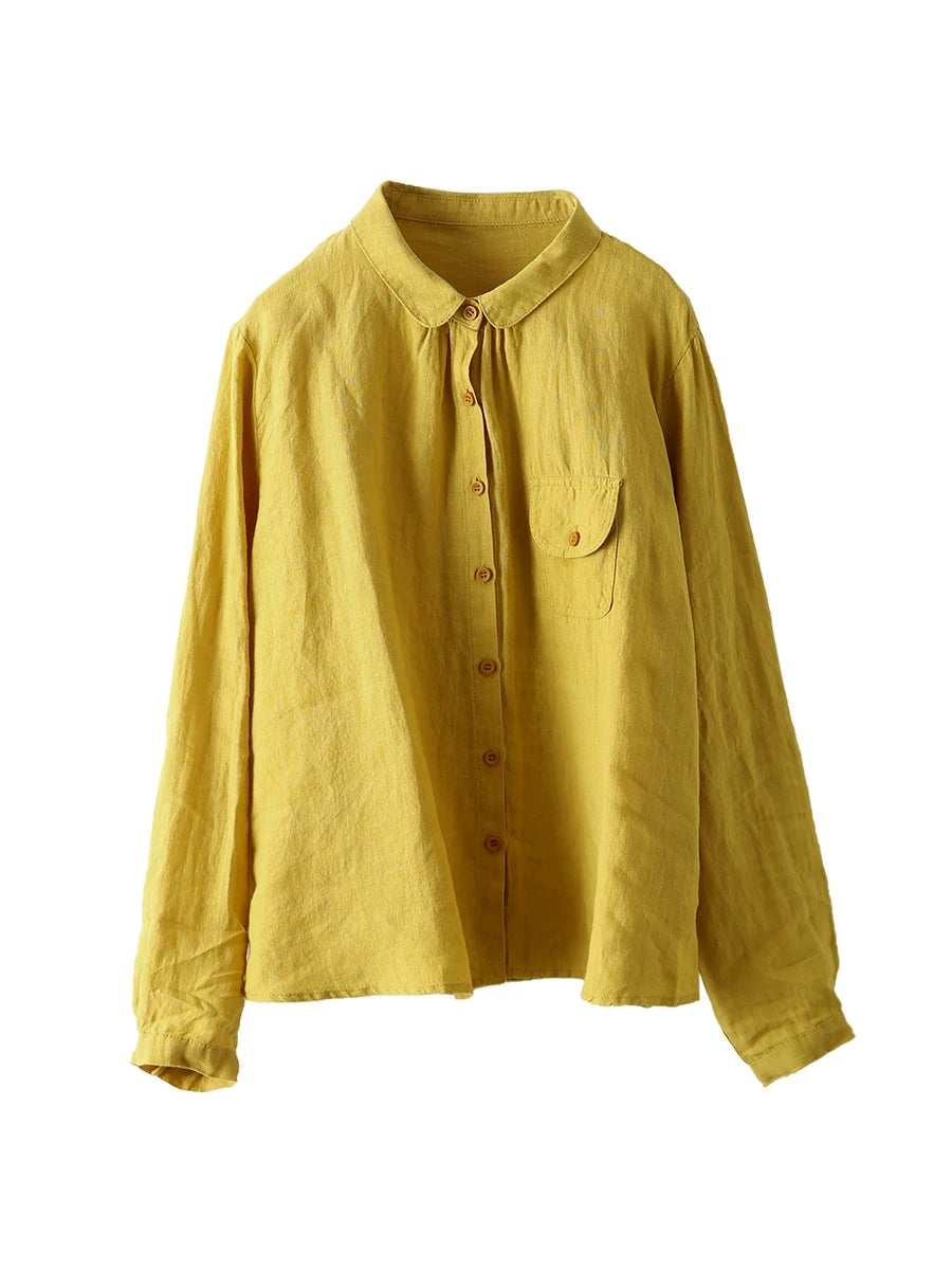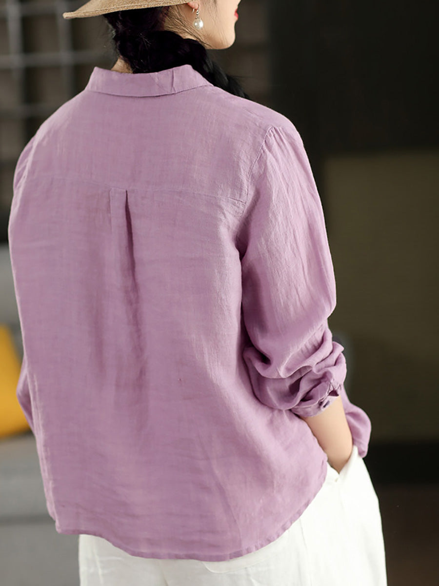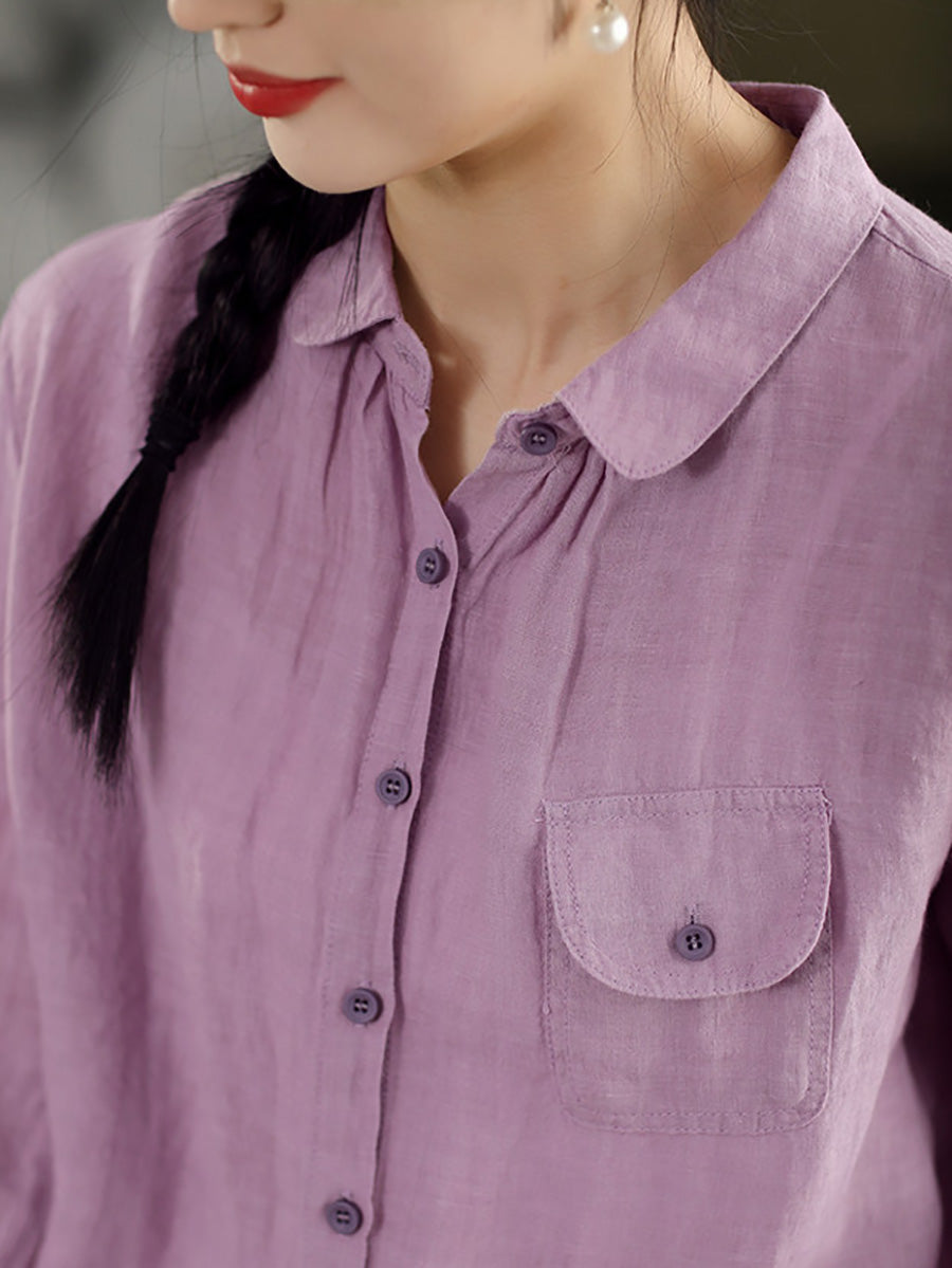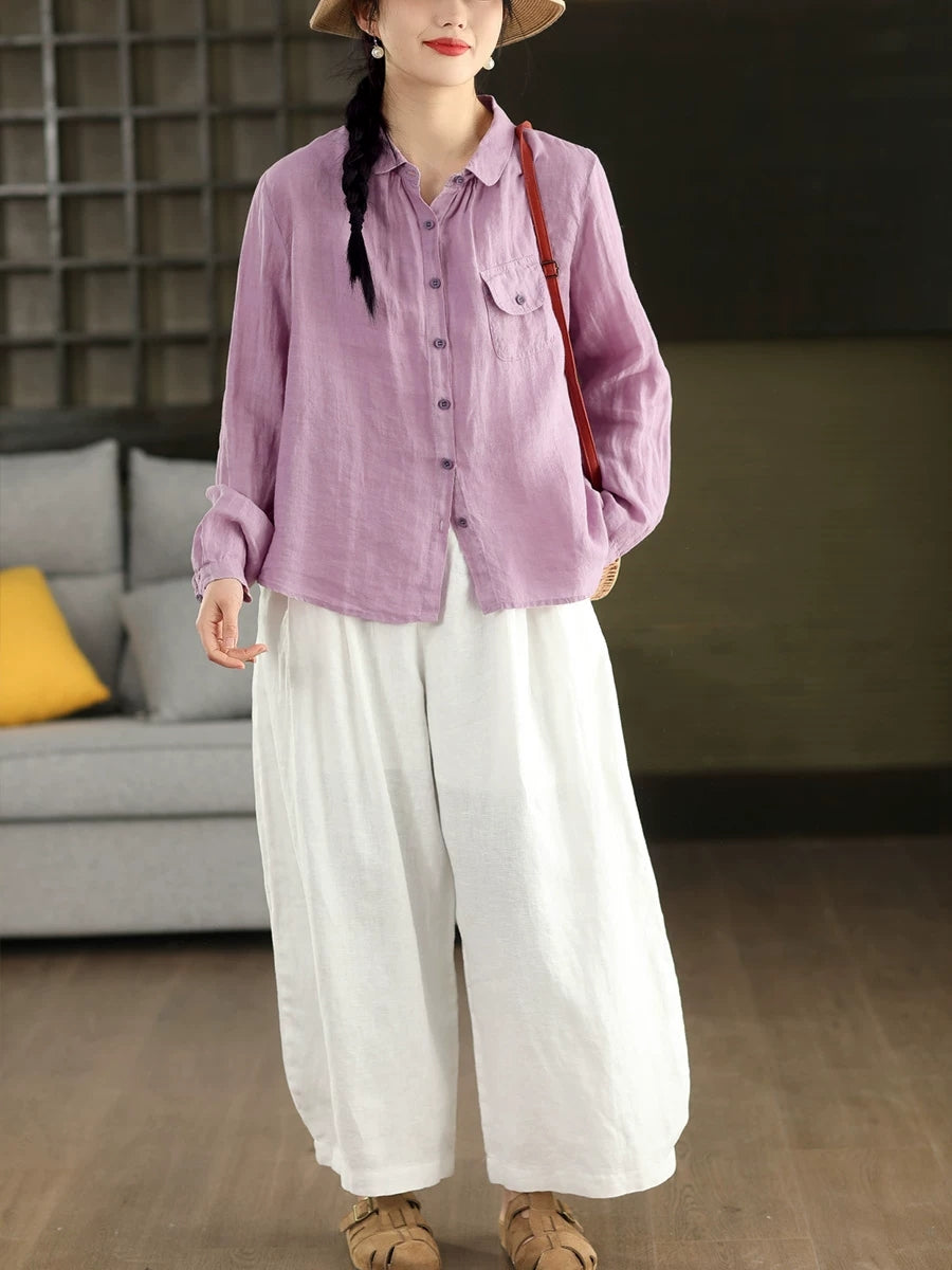 Women Summer Casual Pure Color 100%Linen Shirt