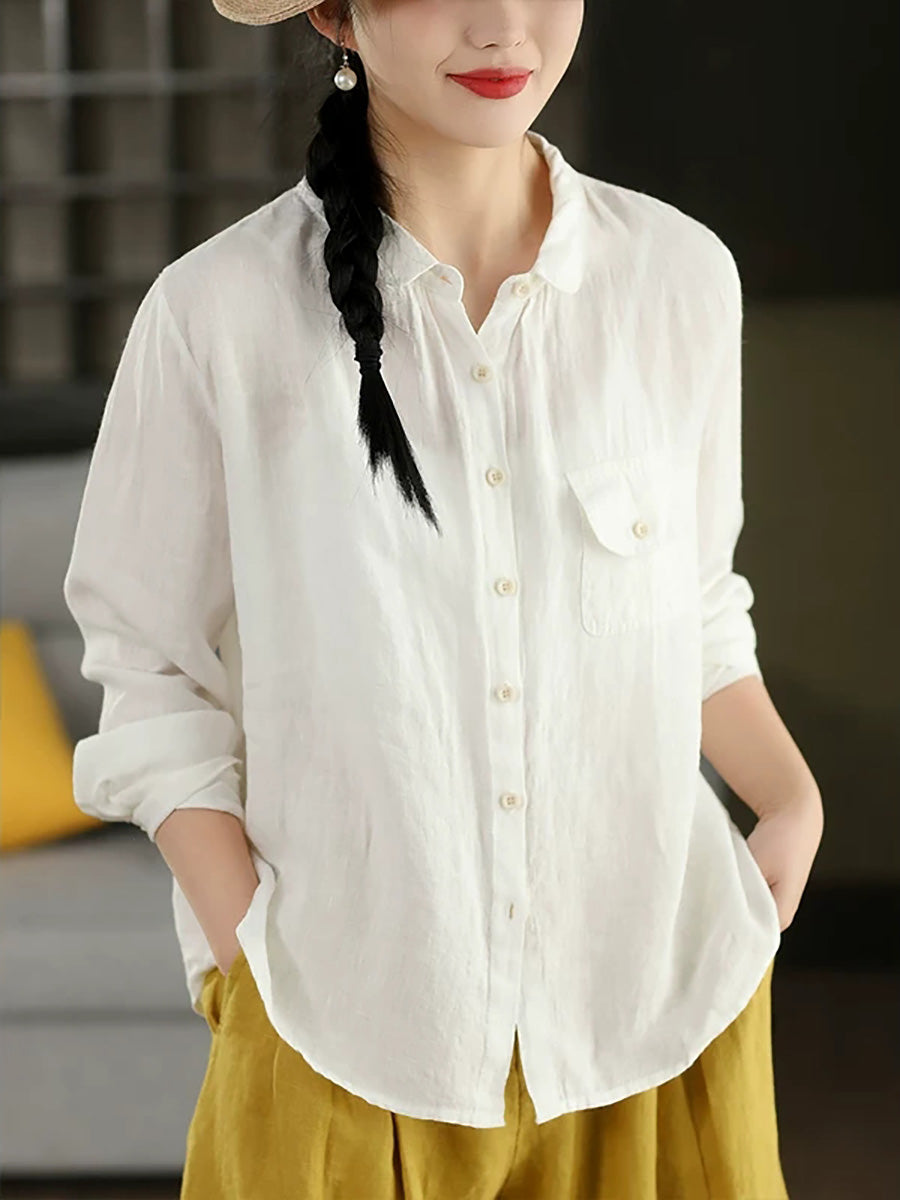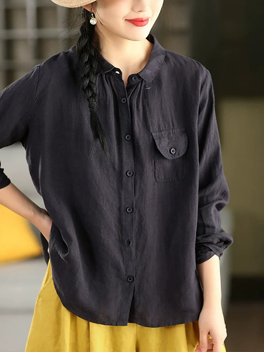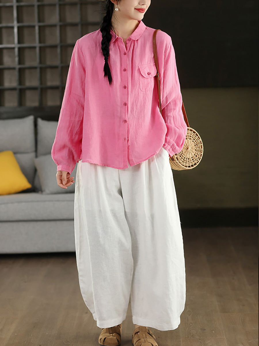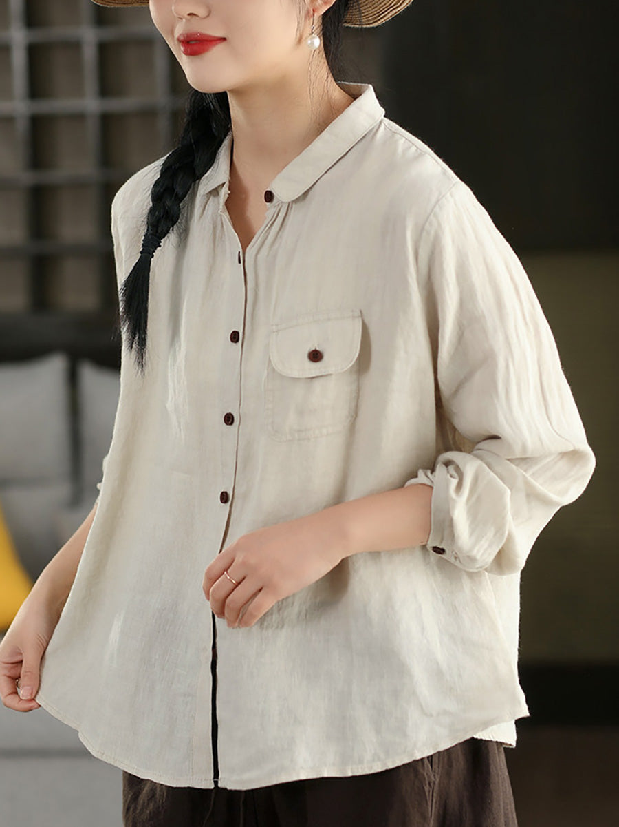 Women Summer Casual Pure Color 100%Linen Shirt