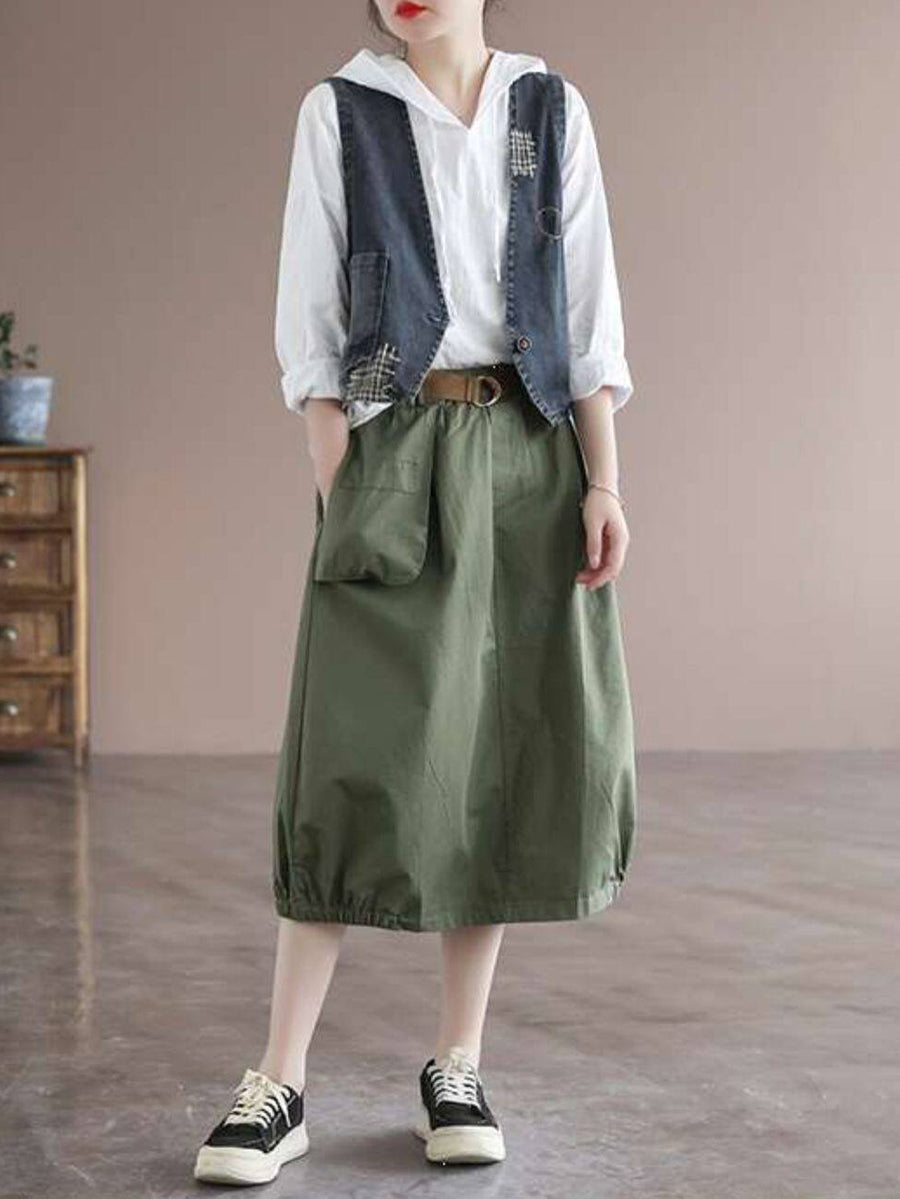 Women Summer Casual Pure Color Bud Skirt