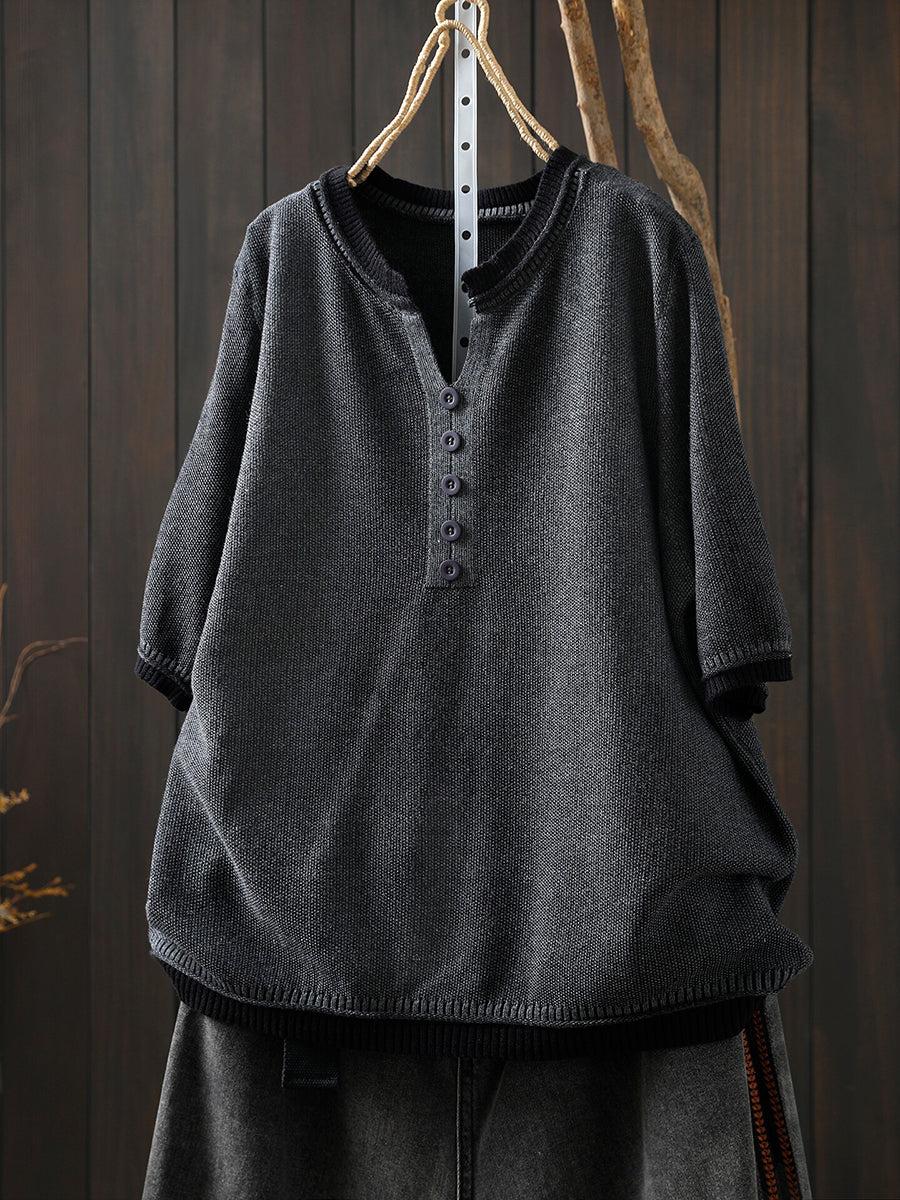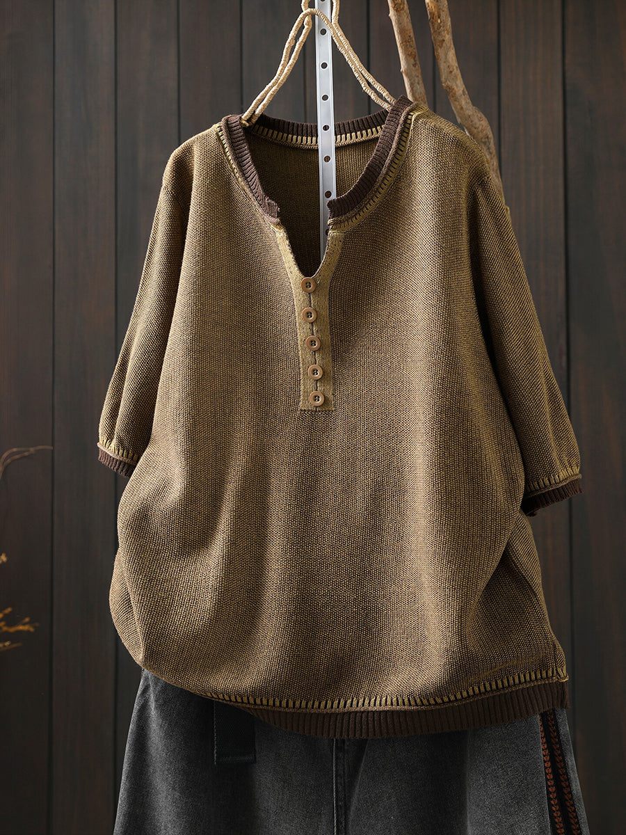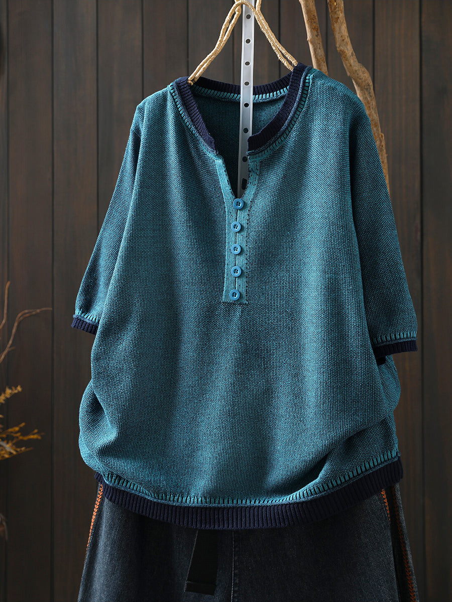Women Summer Casual Pure Color V-Neck Blouse