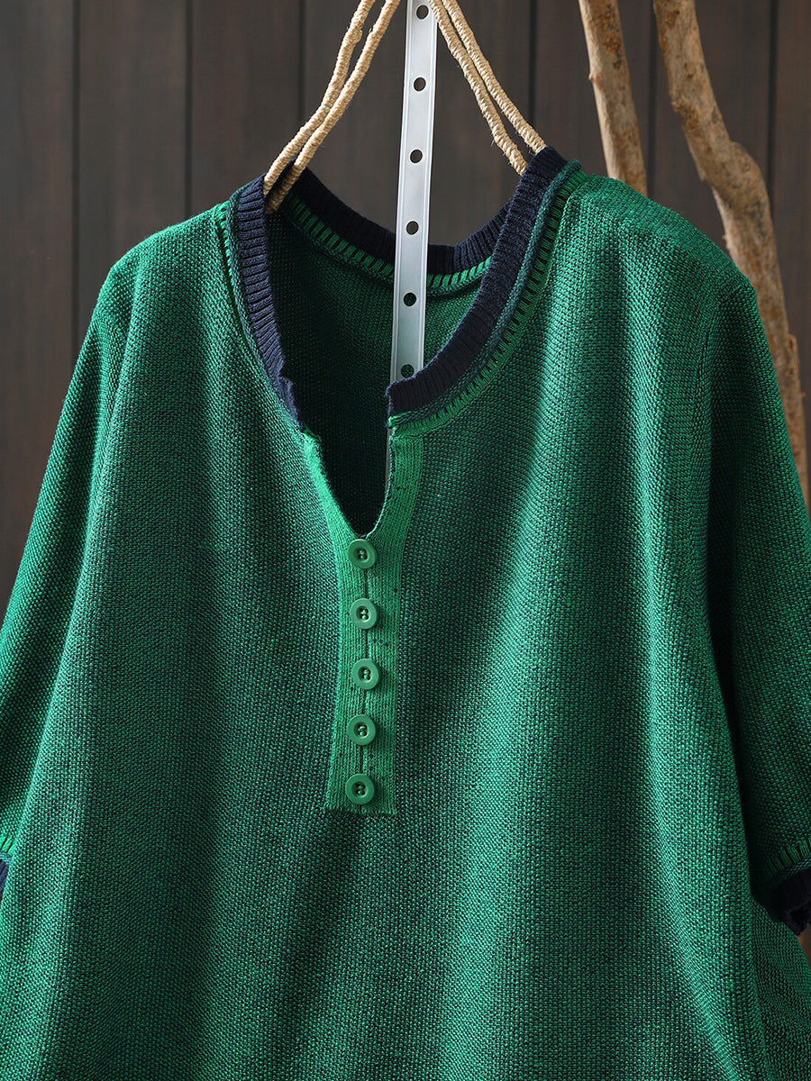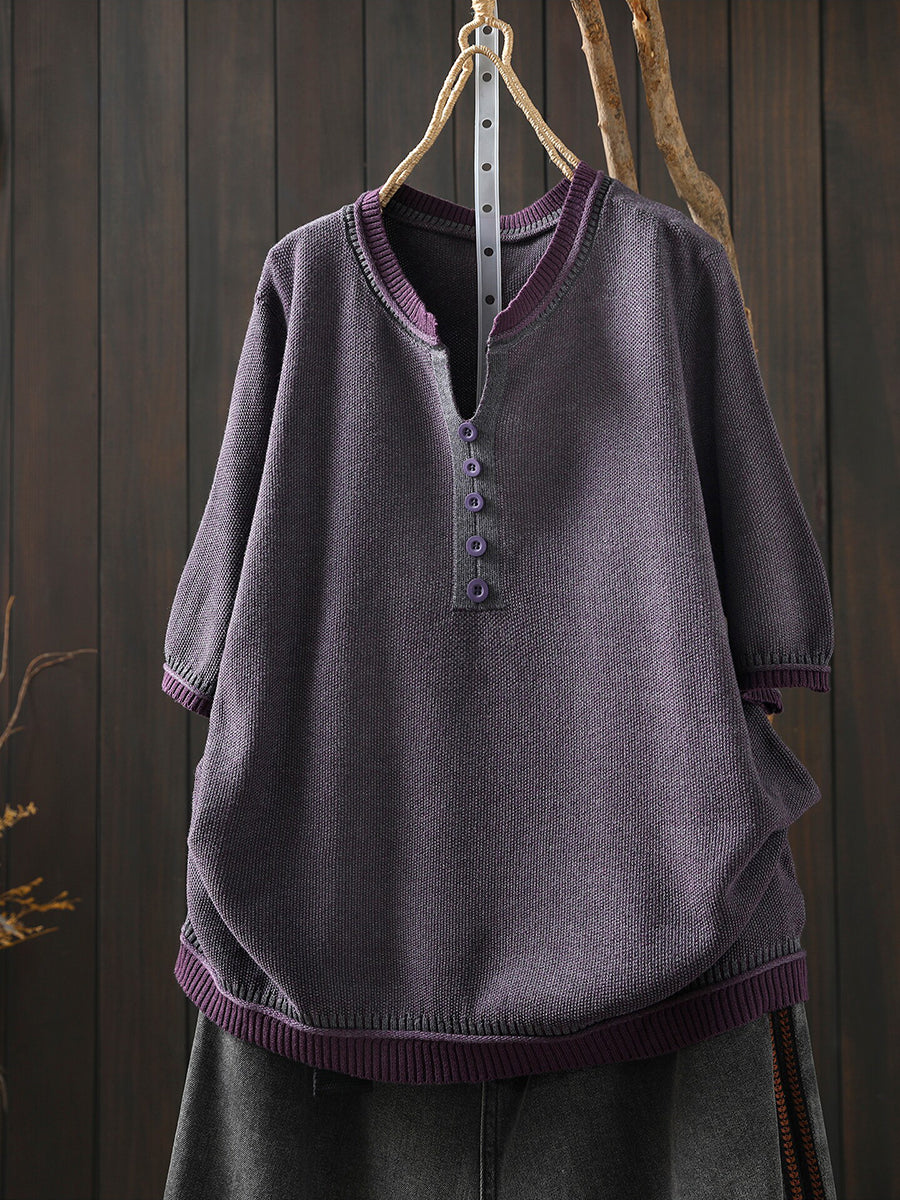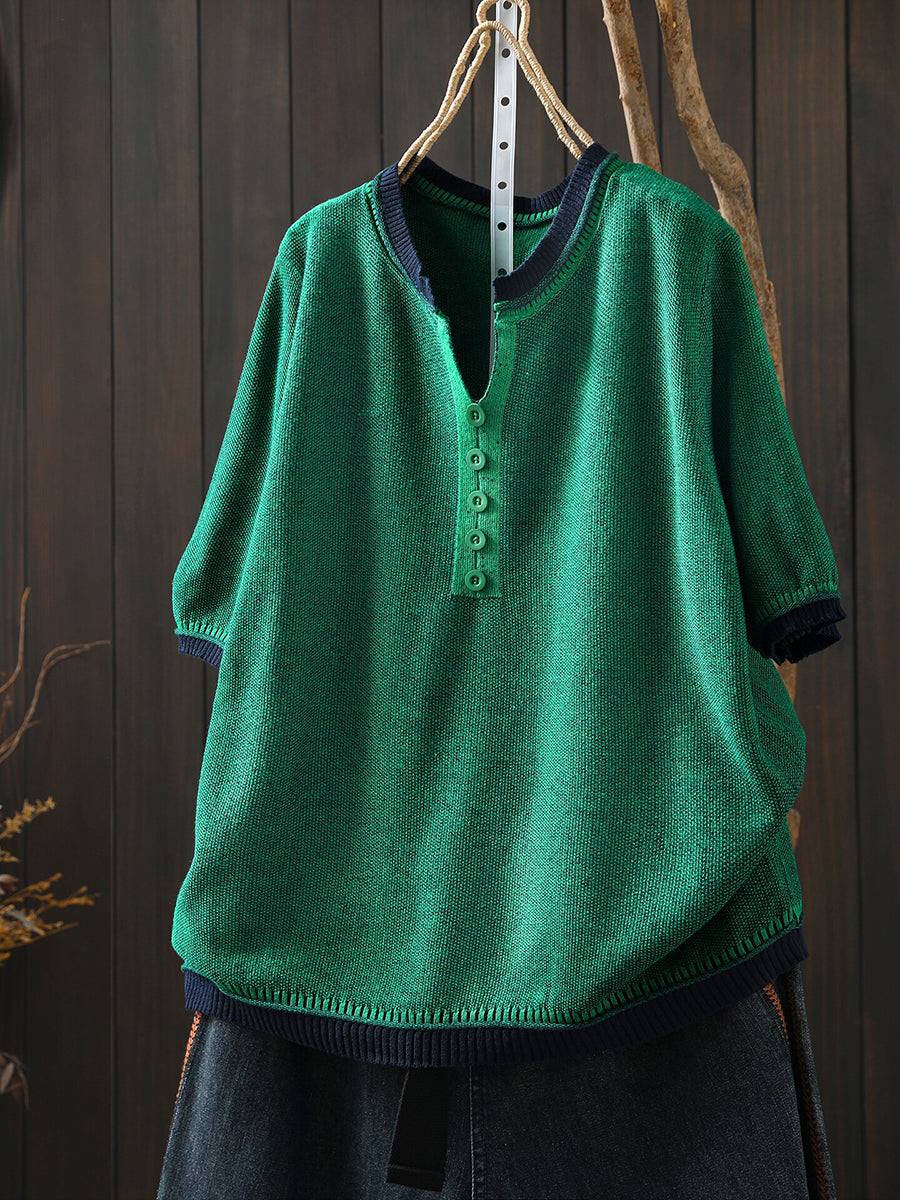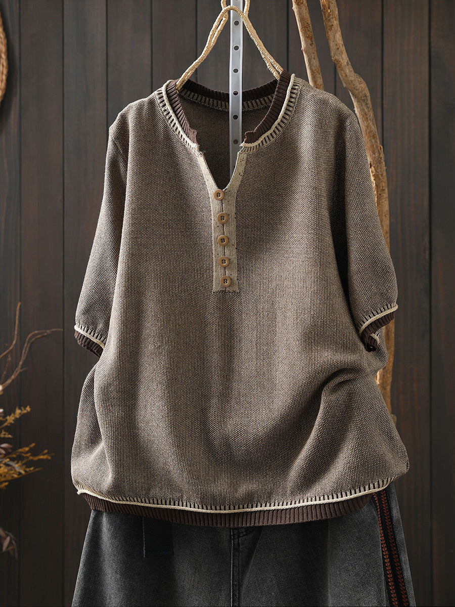 Women Summer Casual Pure Color V-Neck Blouse