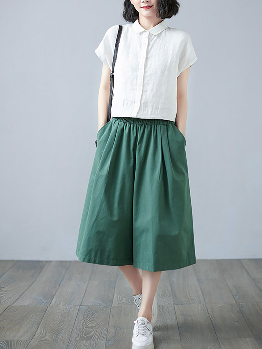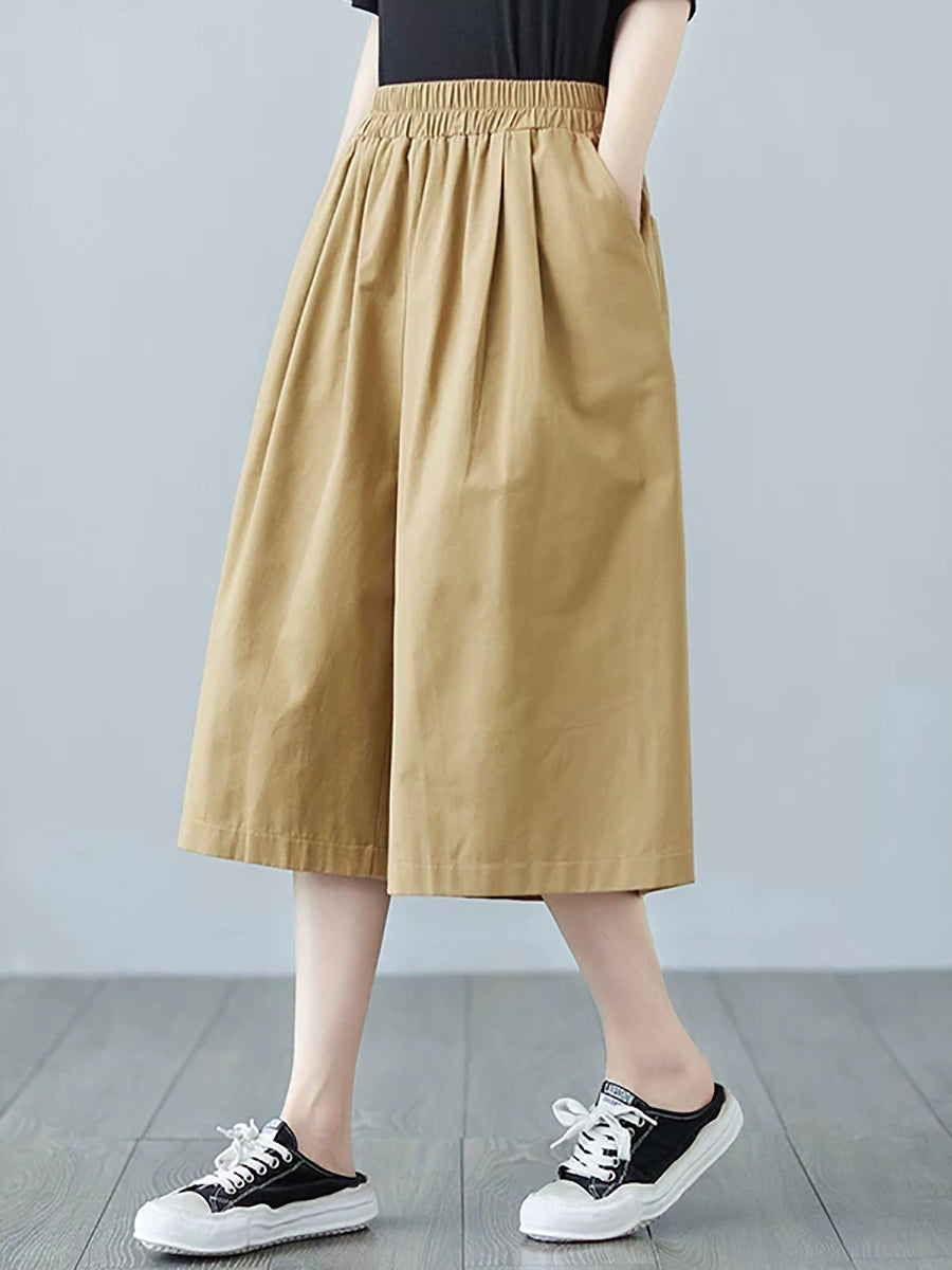 Women Summer Casual Pure Color Wide-leg Pants
