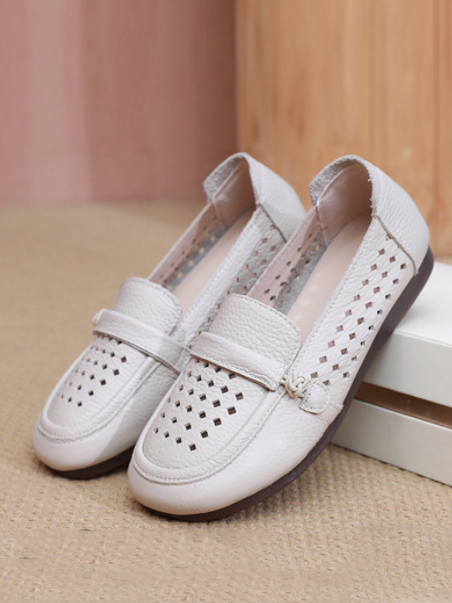 Women Summer Genuine Leather Hollow Out Flat Shoes