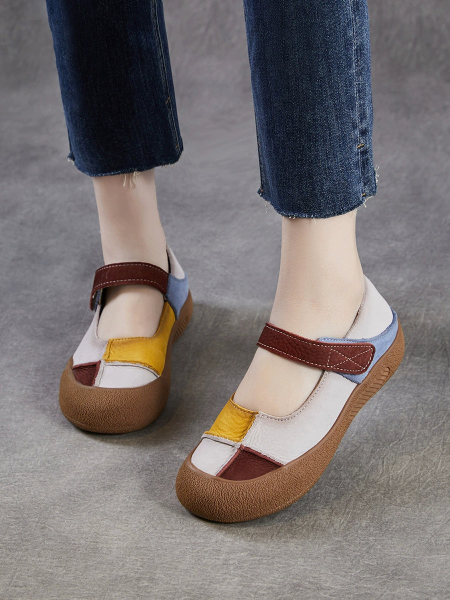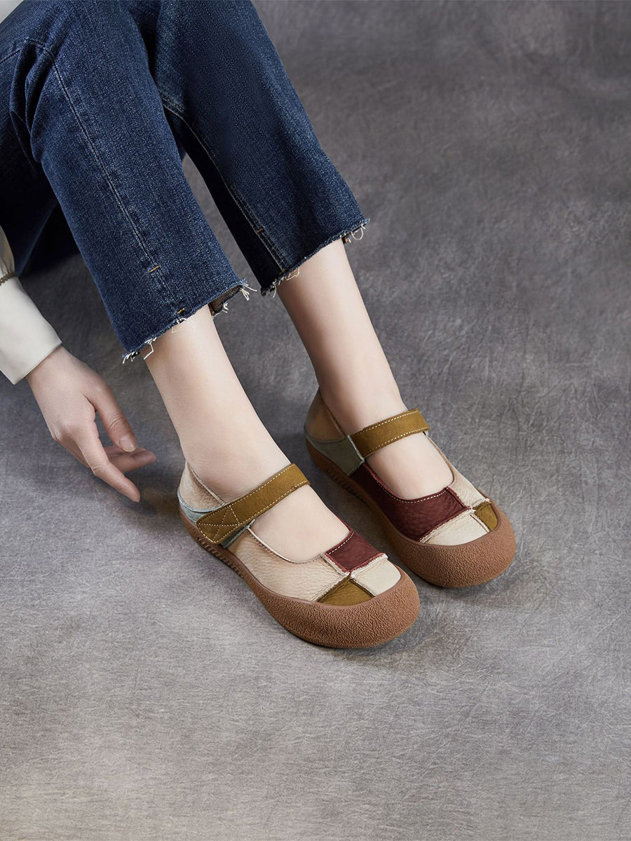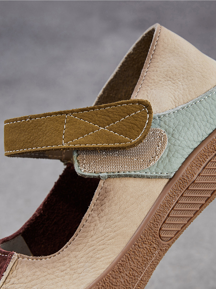 Women Summer Retro Genuine Leather Colorblock Shoes