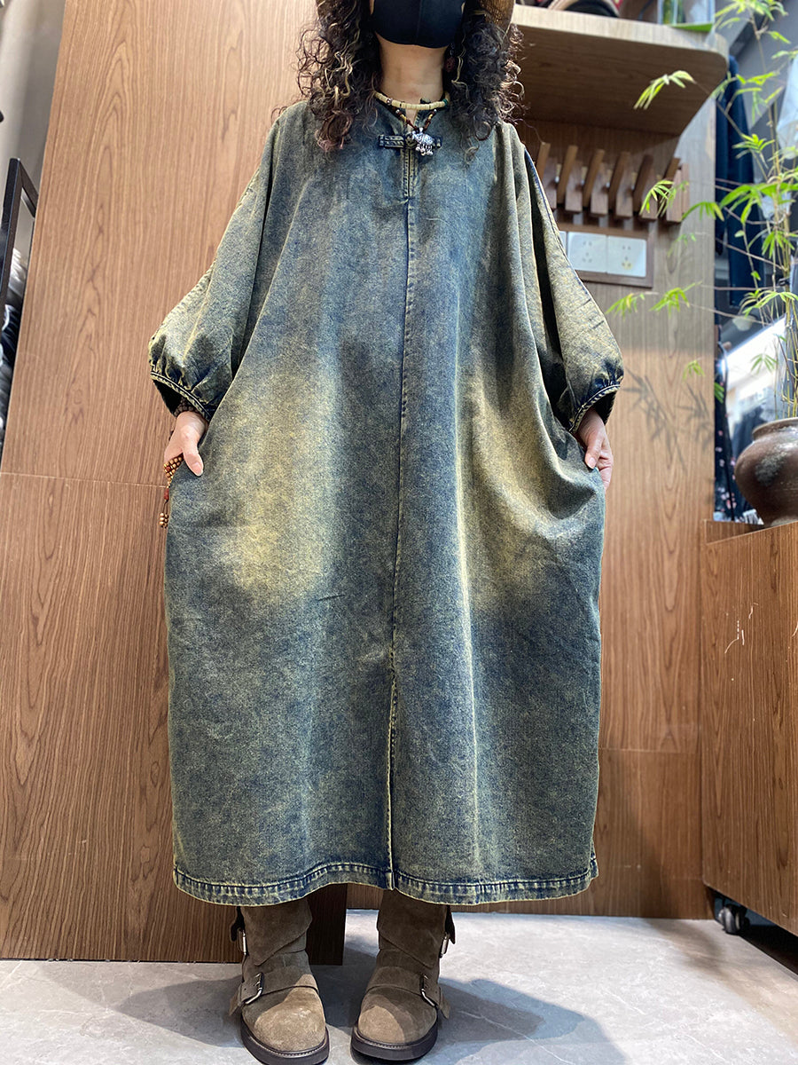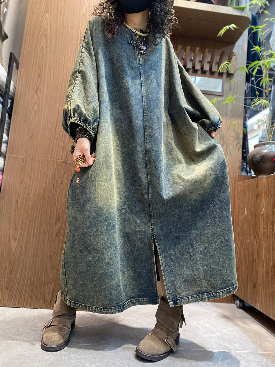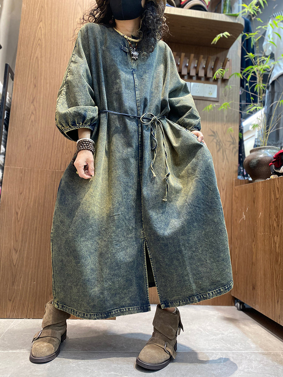 Women Summer Vintage Denim O-Neck Dress