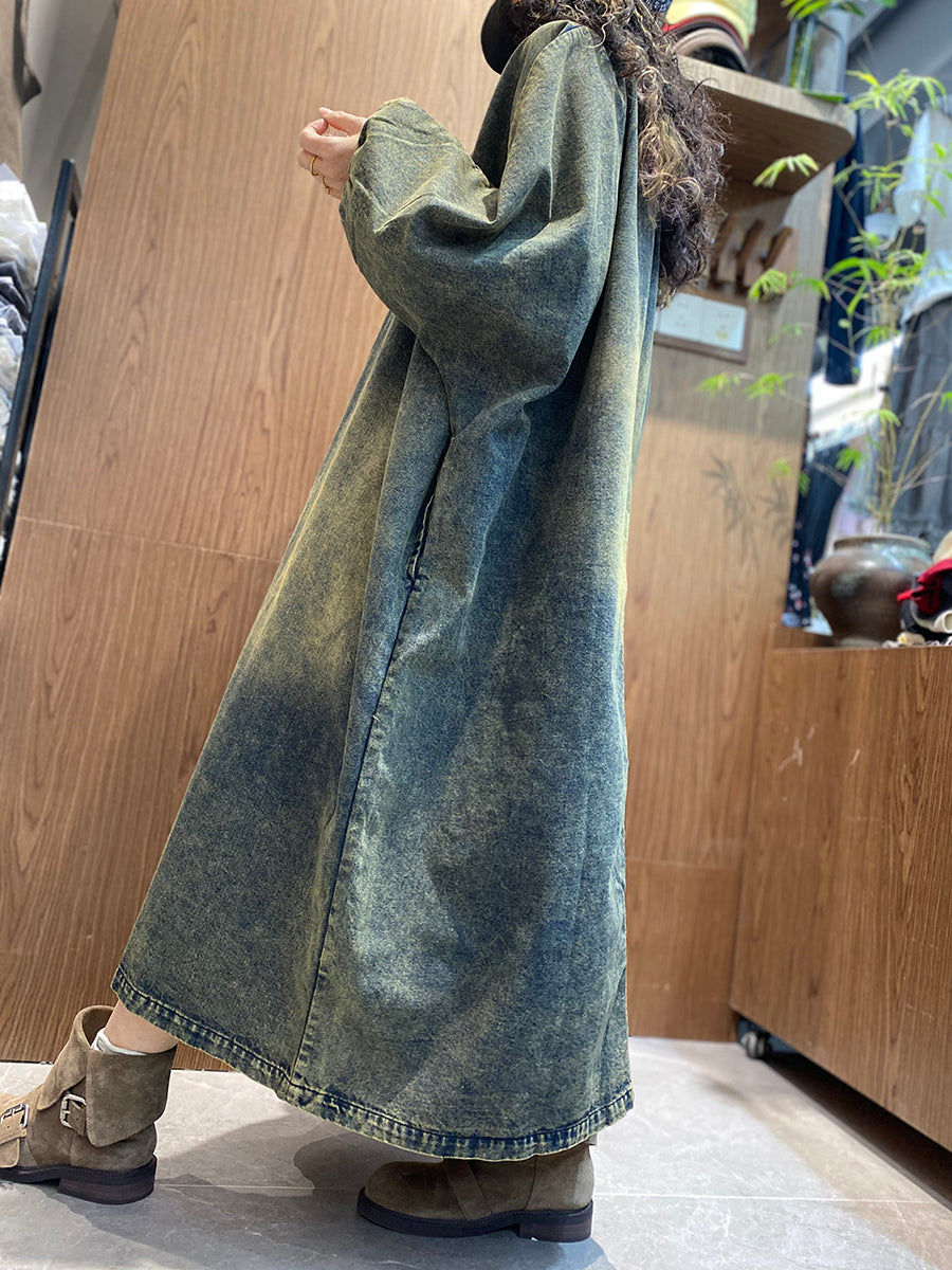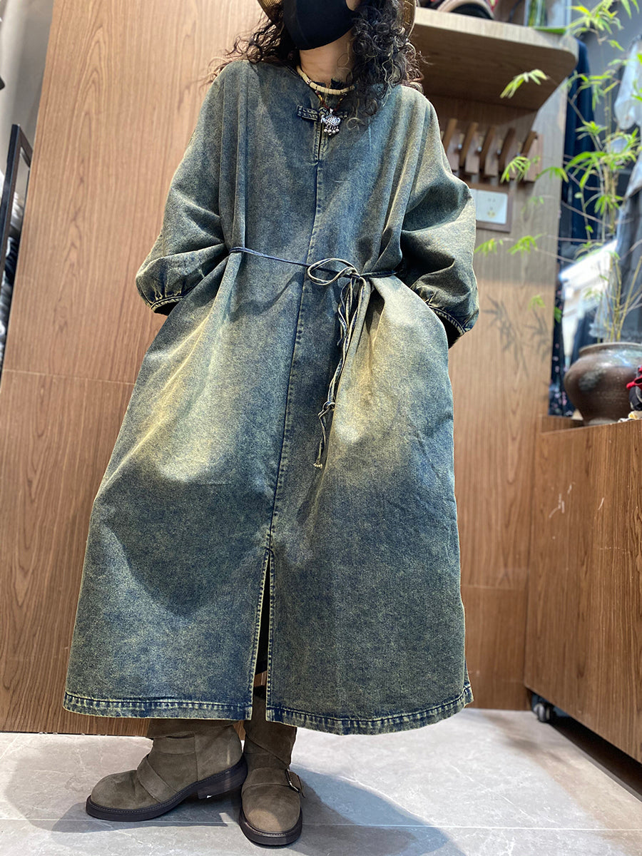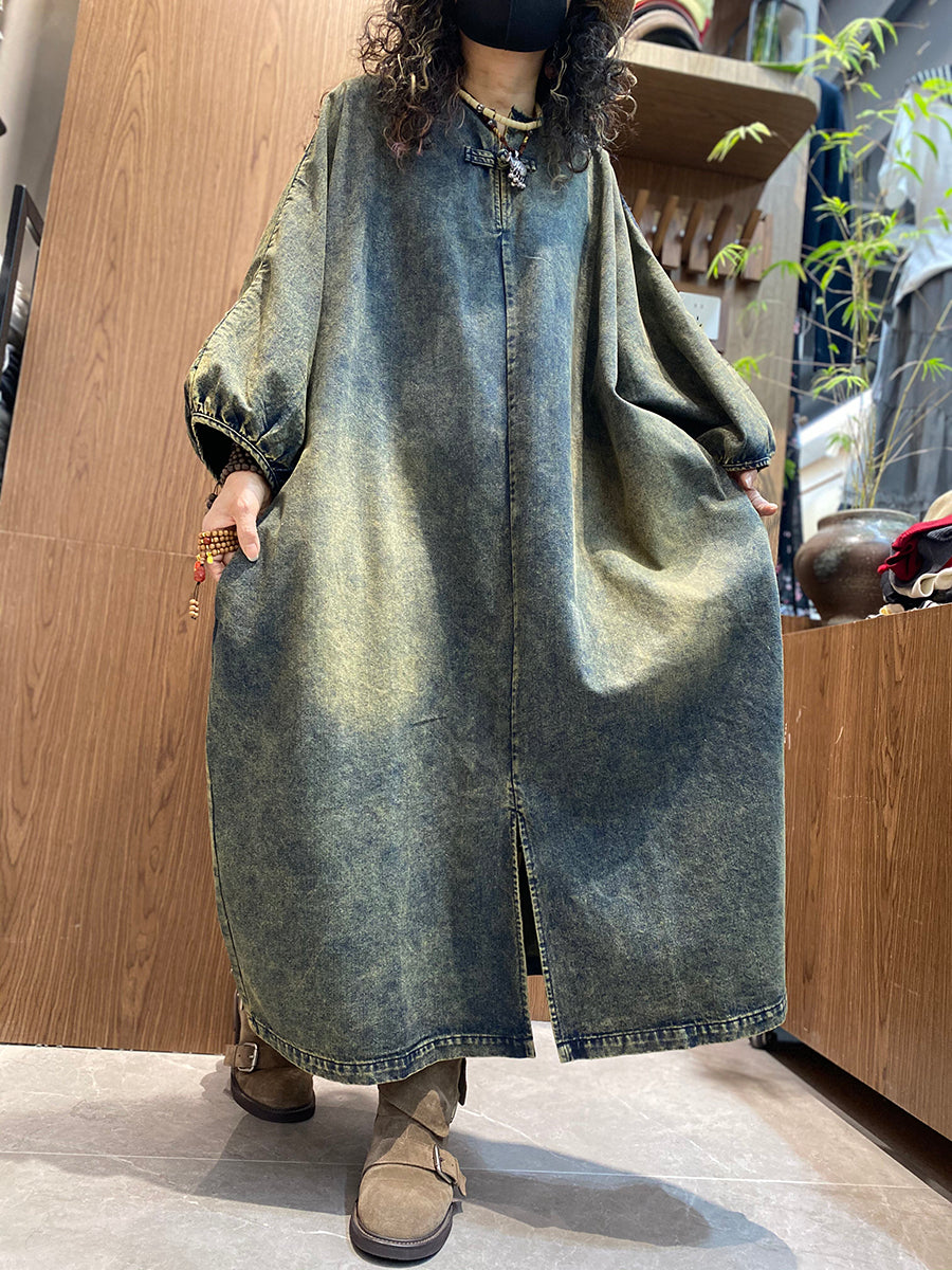 Women Summer Vintage Denim O-Neck Dress