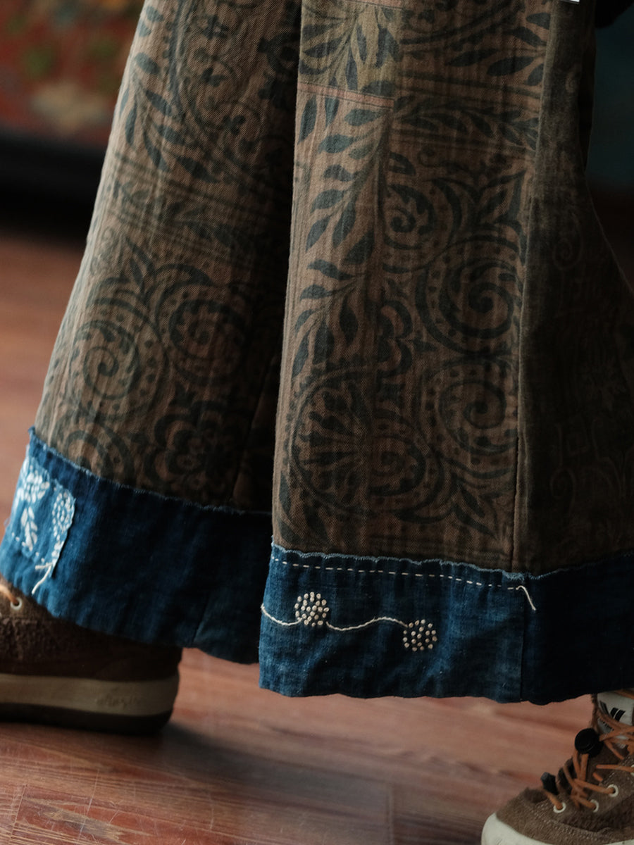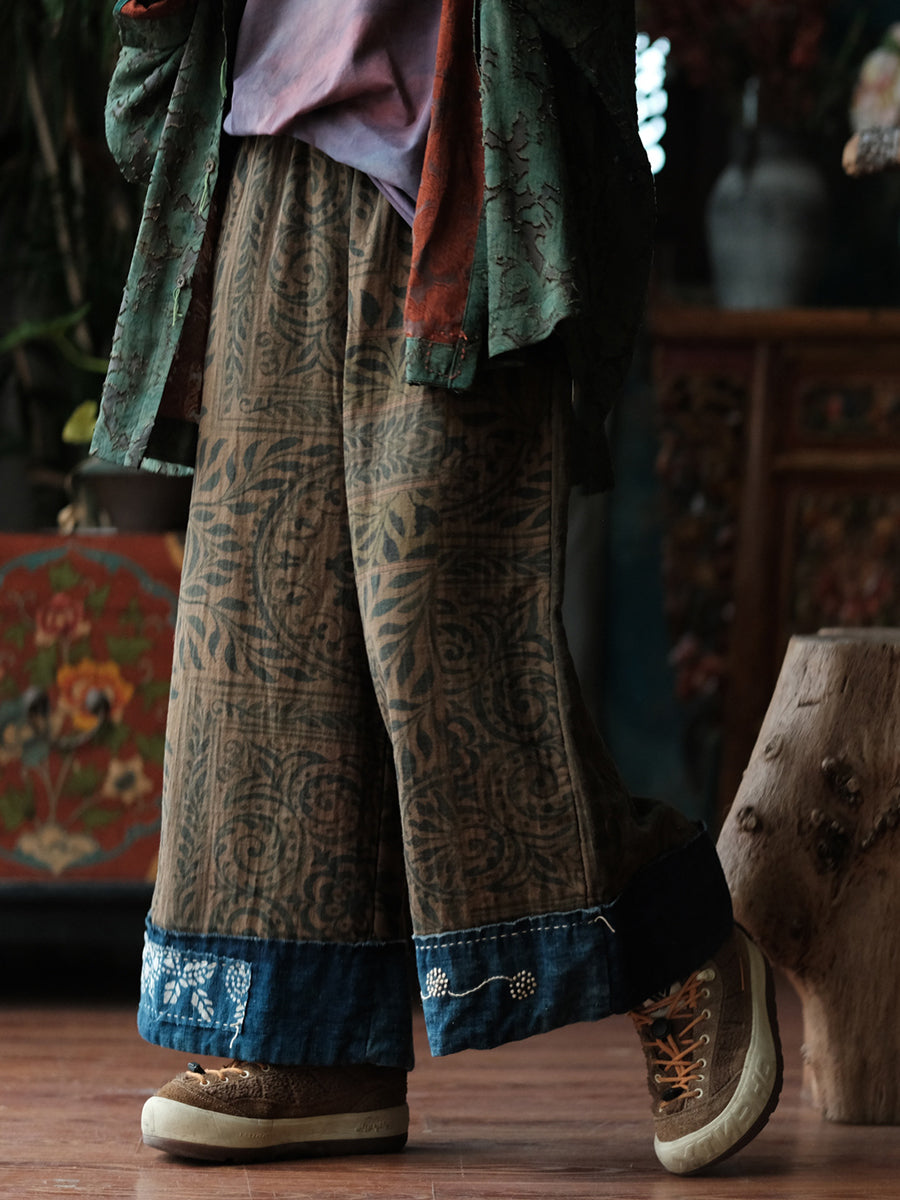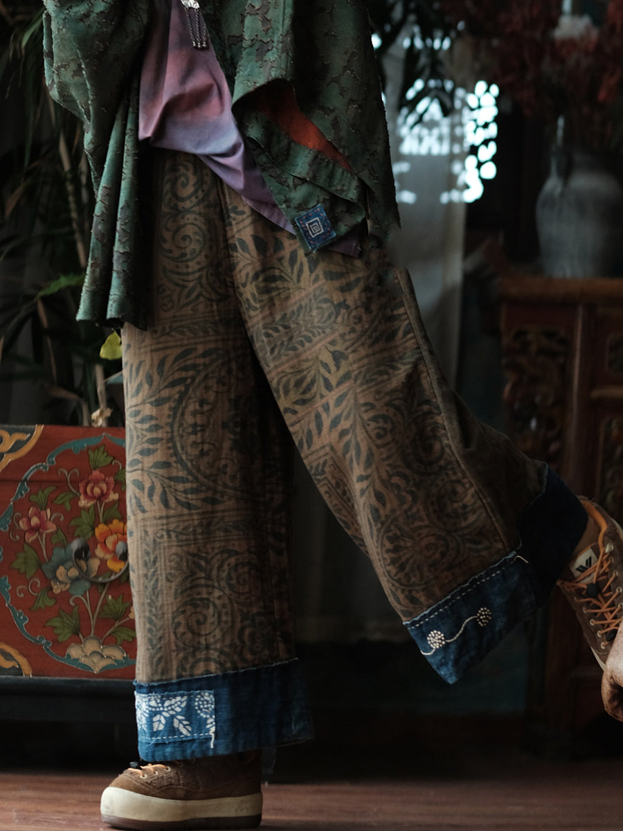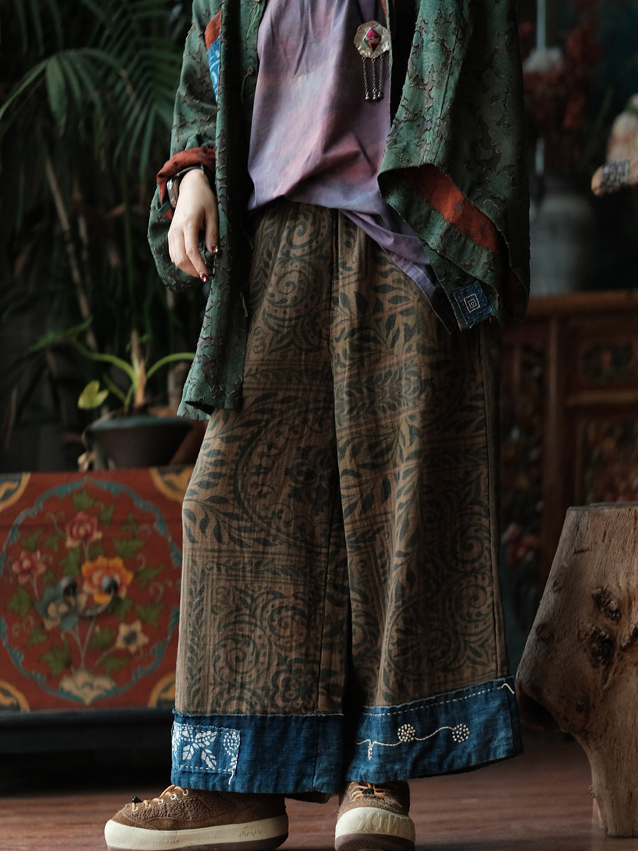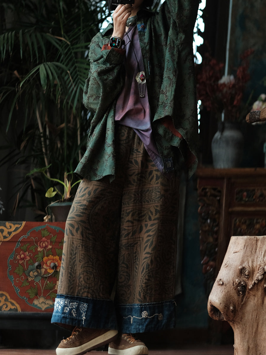 Women Summer Vintage Denim Spliced Wide-leg Pants