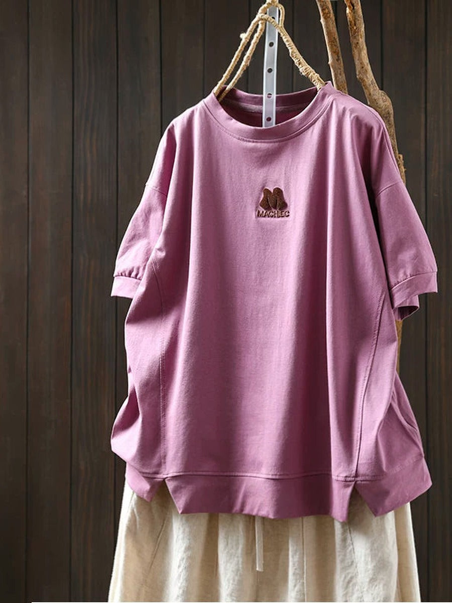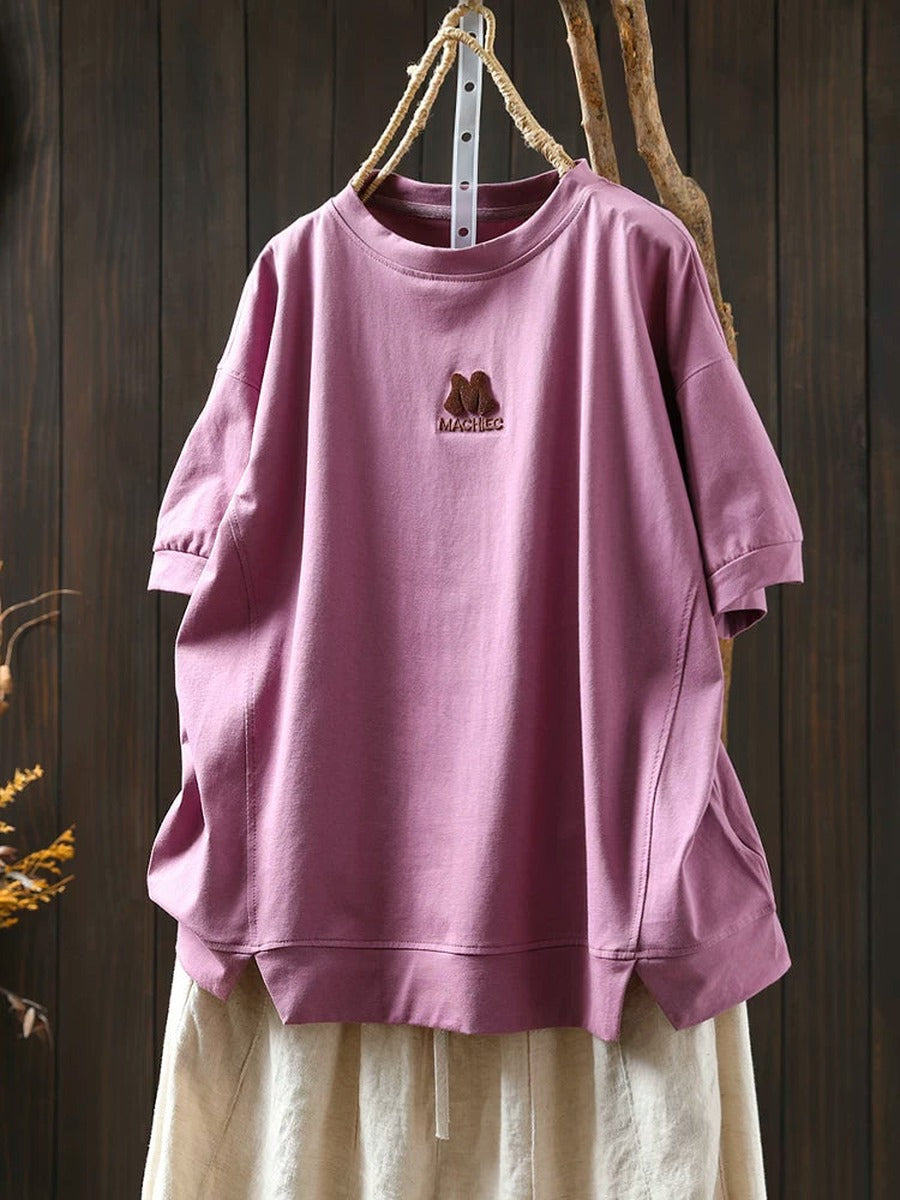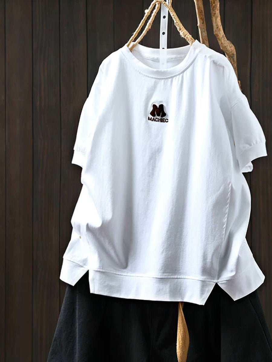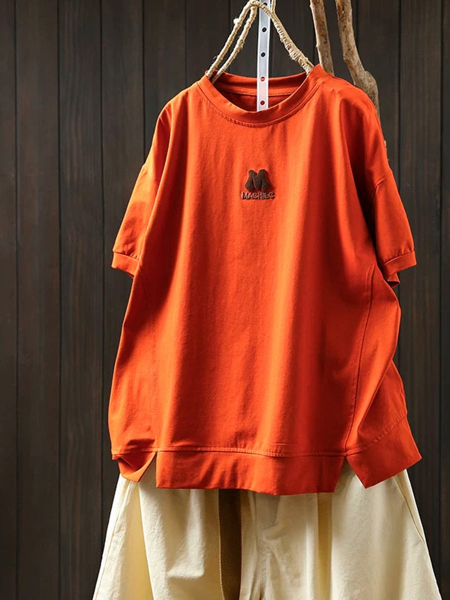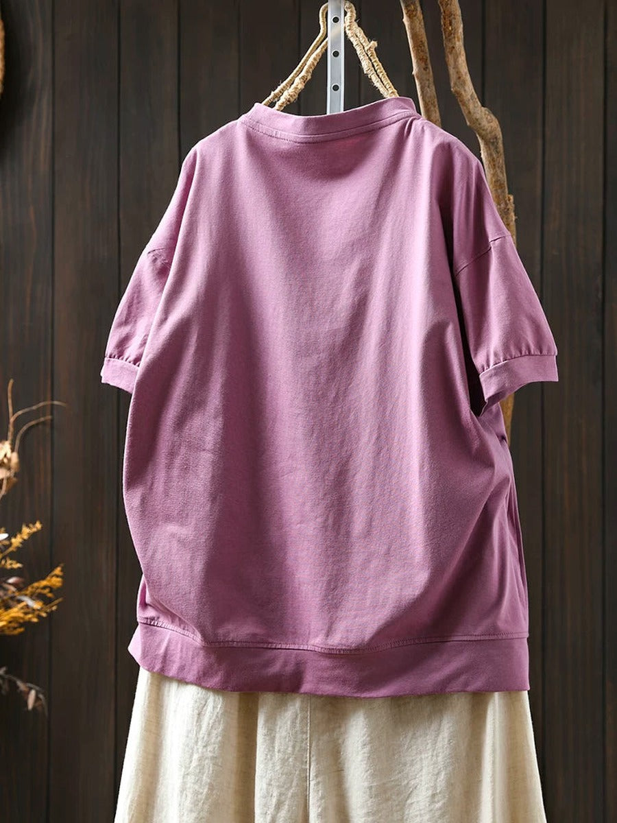 Women Summer Vintage Embroidered Cotton Short Sleeve T-Shirt