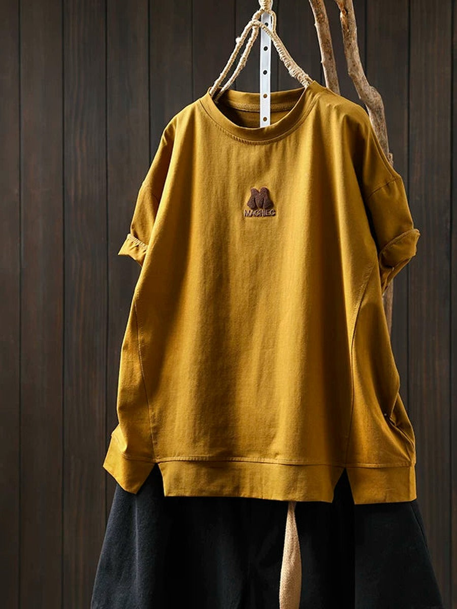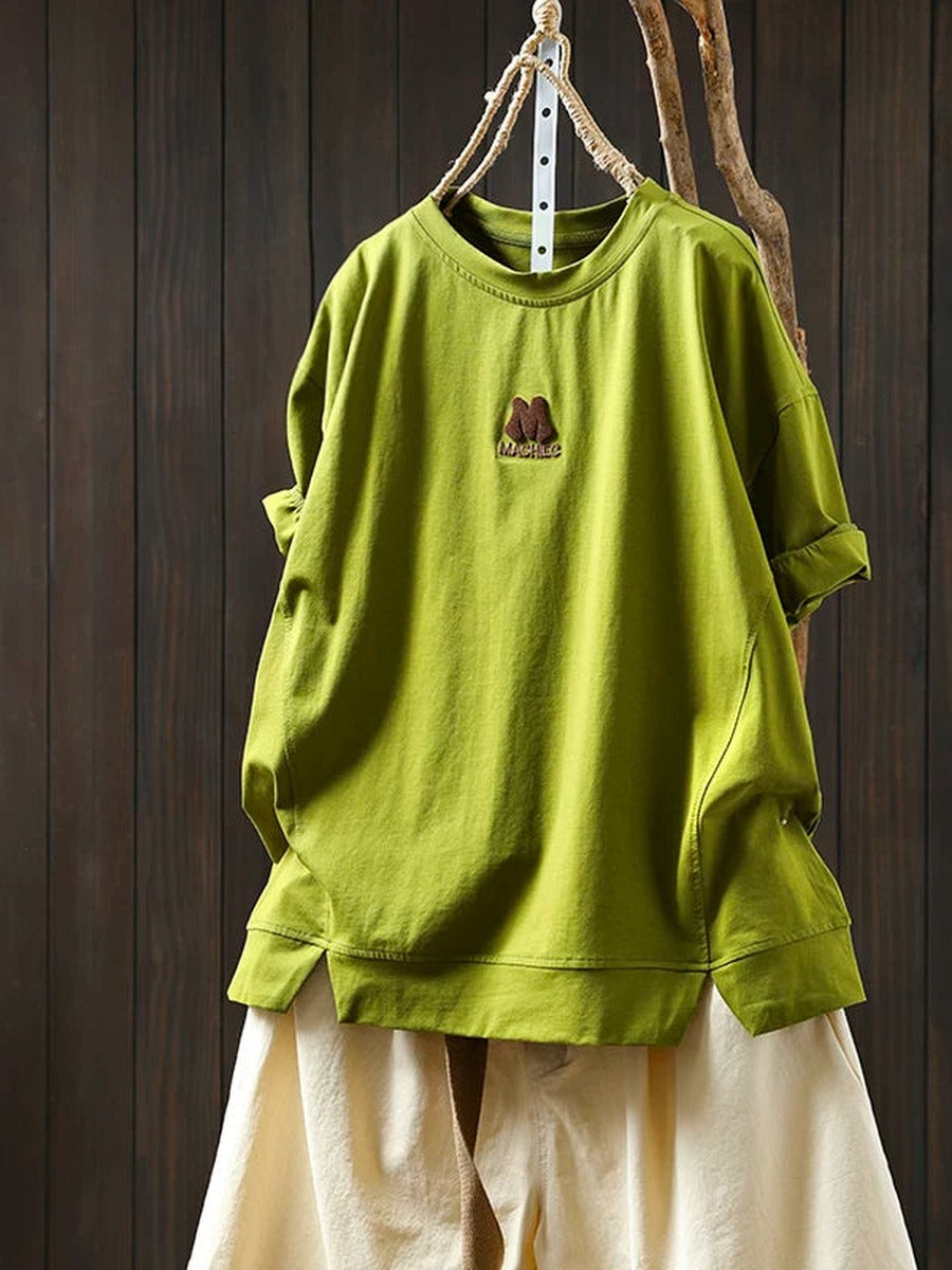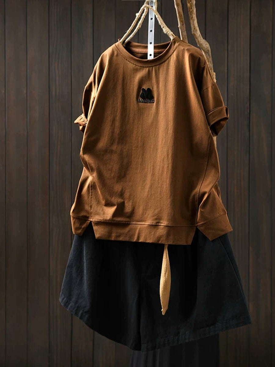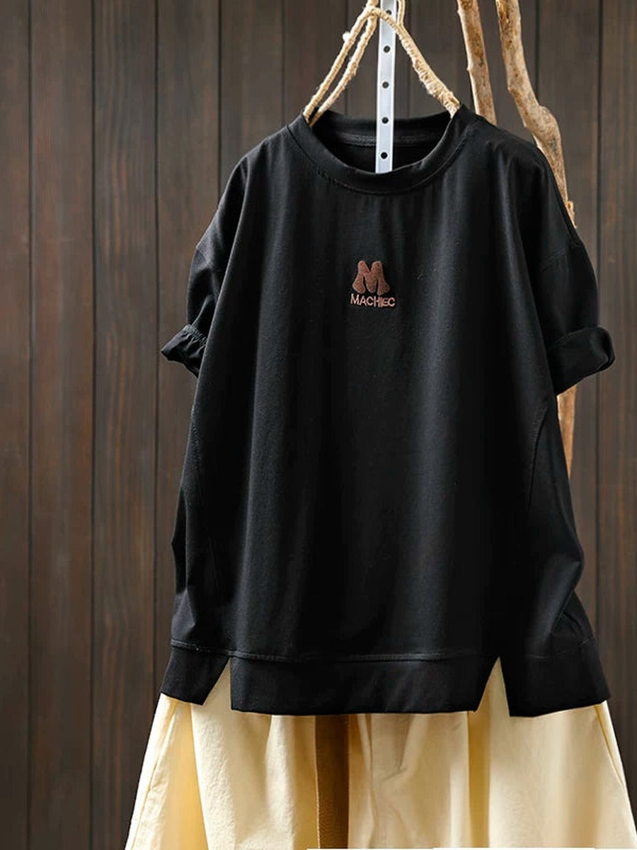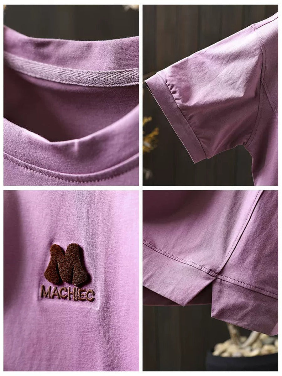 Women Summer Vintage Embroidered Cotton Short Sleeve T-Shirt
