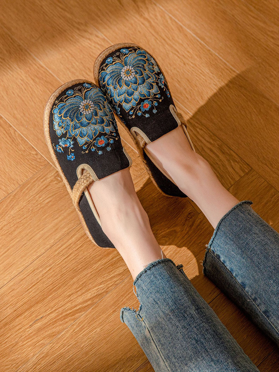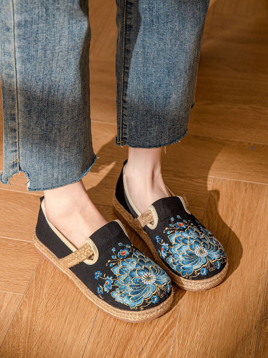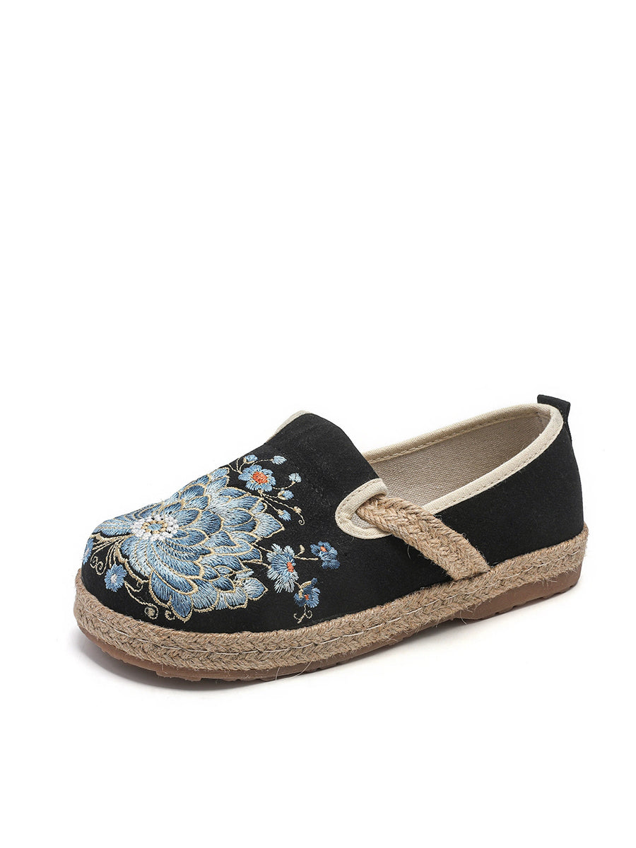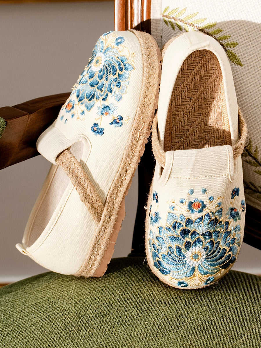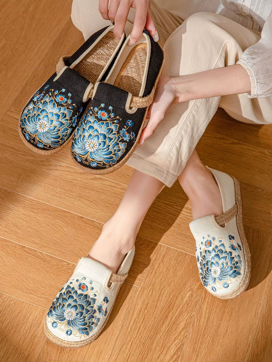Women Summer Vintage Flower Embroidery Canvas Shoes