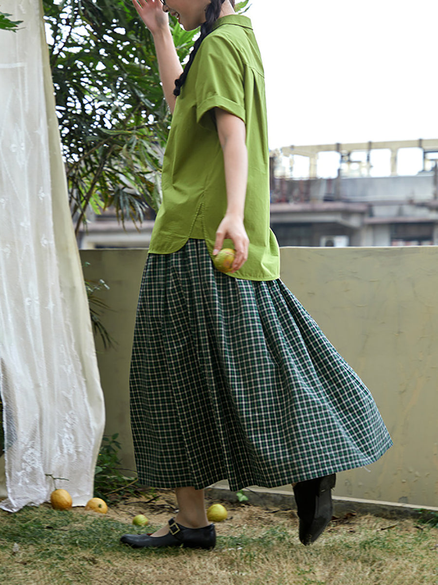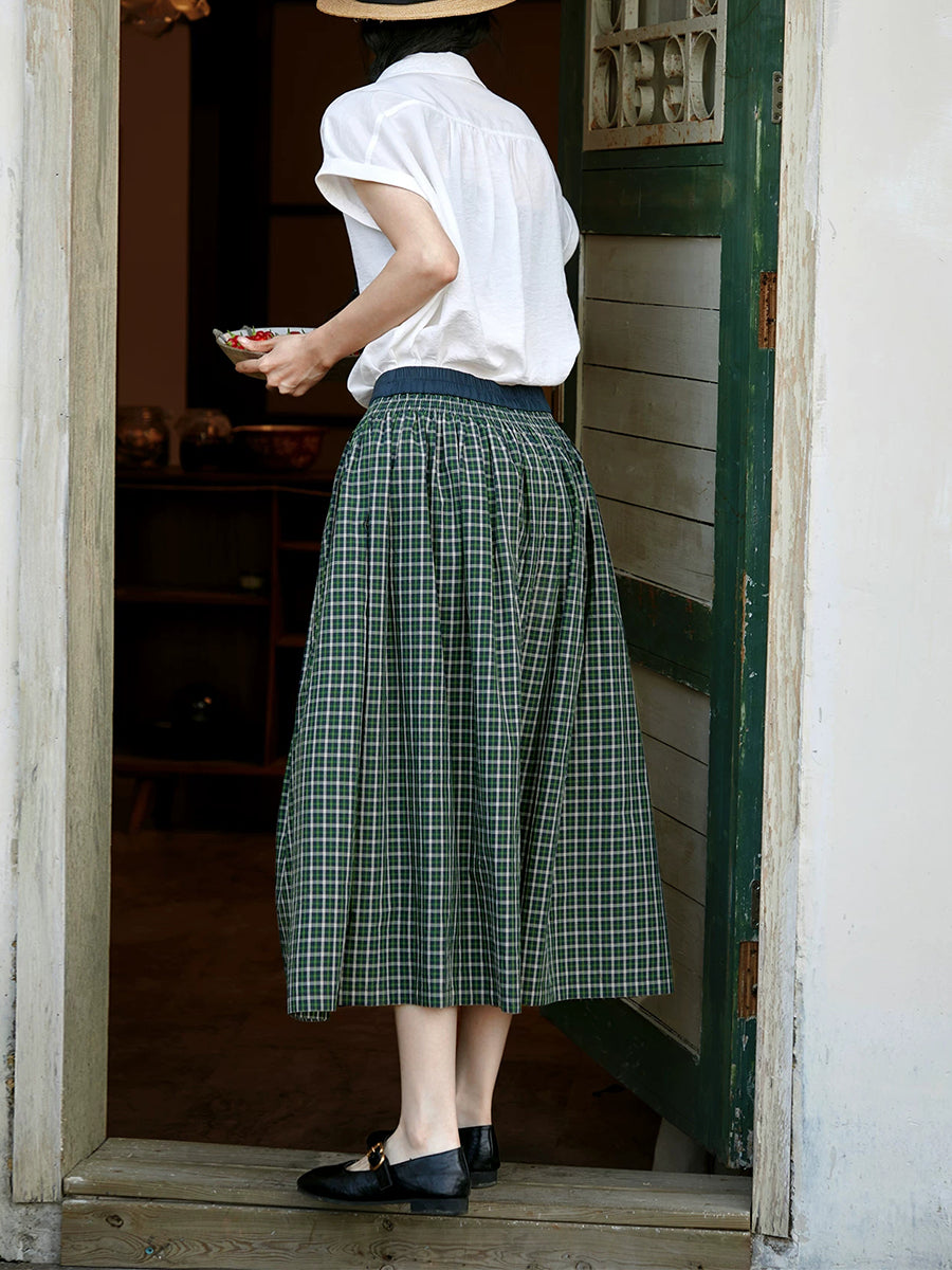 Women Summer Vintage Plaid 100%Cotton A-Shape Skirt