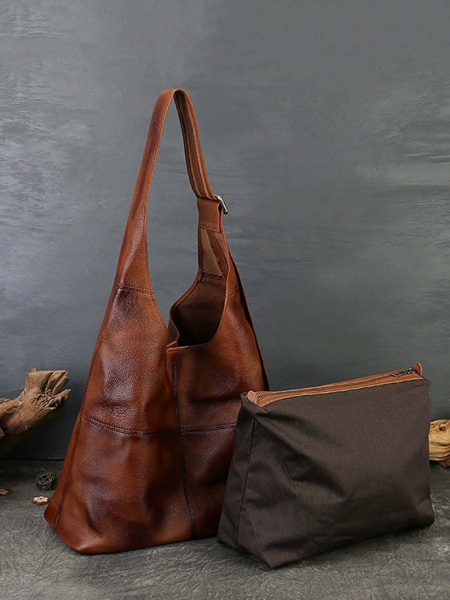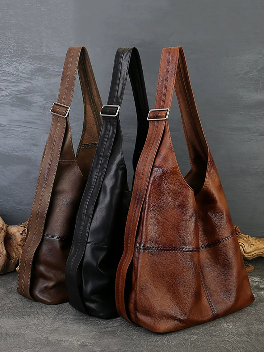Women Vintage Genuine Leather Spliced Shoulder Bag