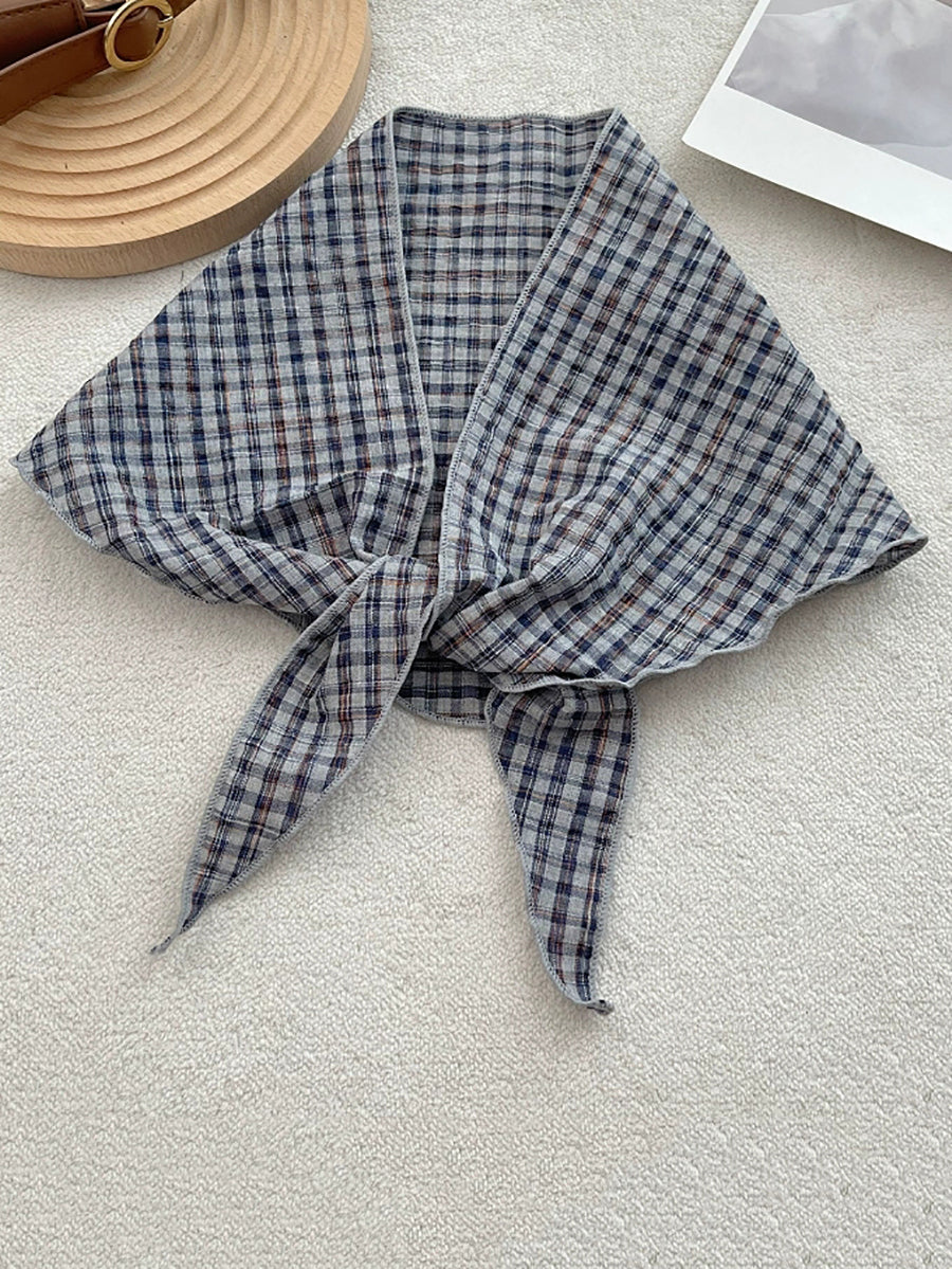 Women Vintage Plaid Cotton Triangle Scarf