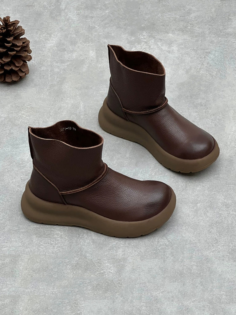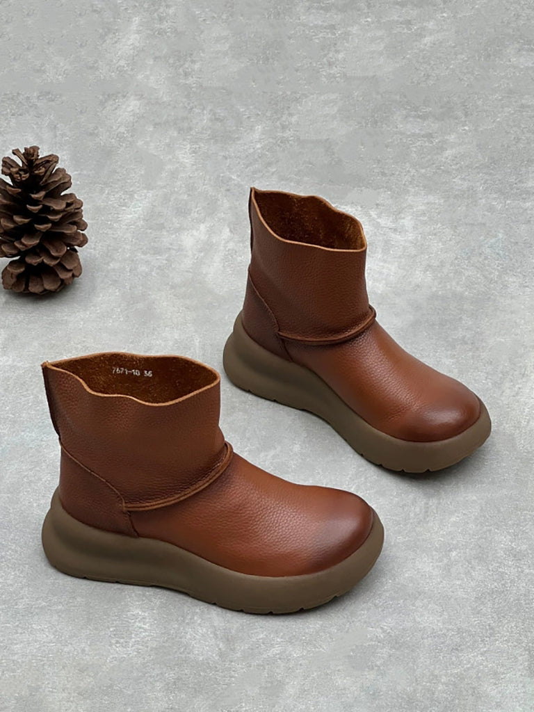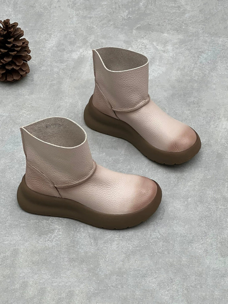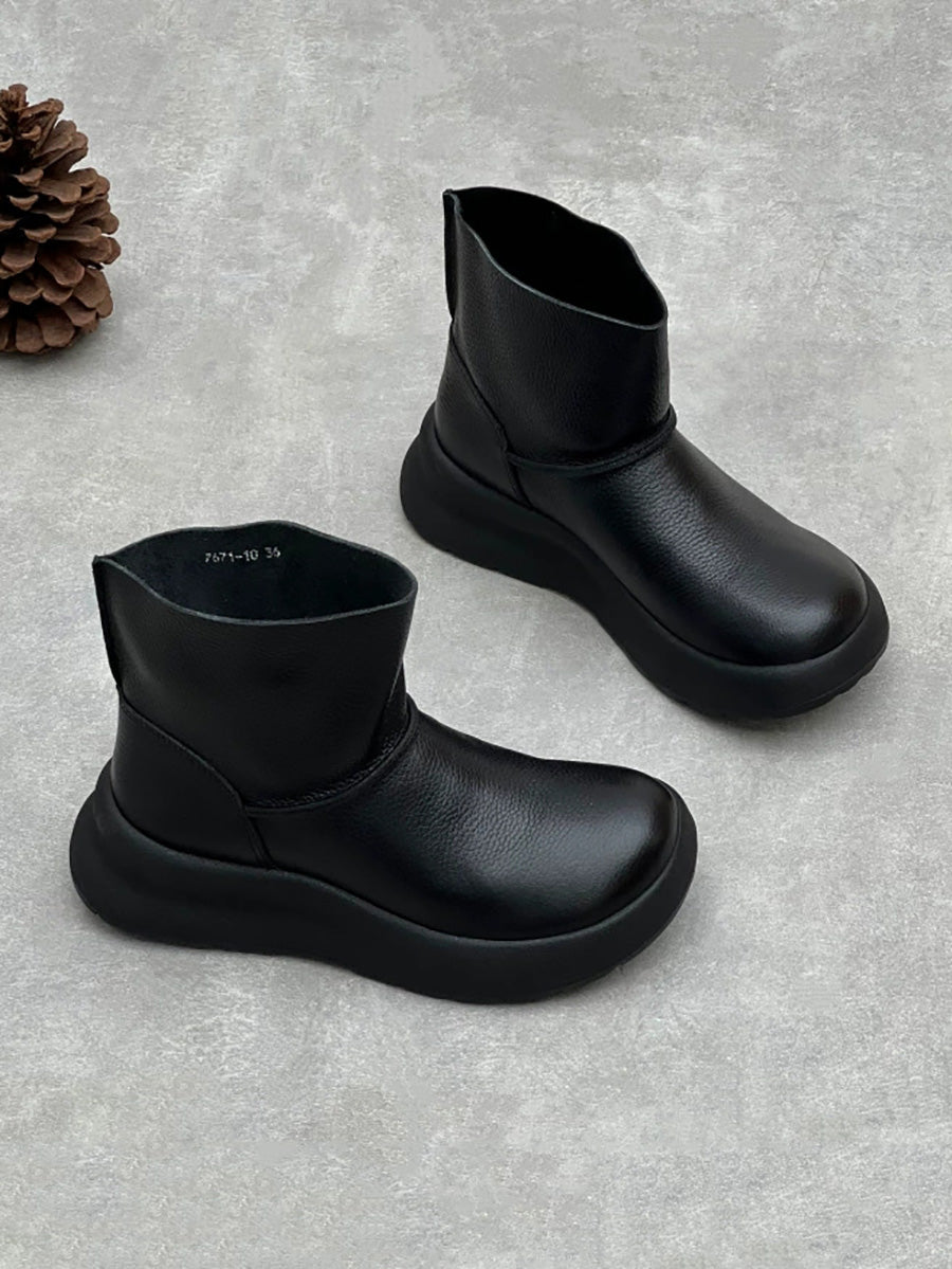 Women Vintage Soft Genuine Leather Platform Boots