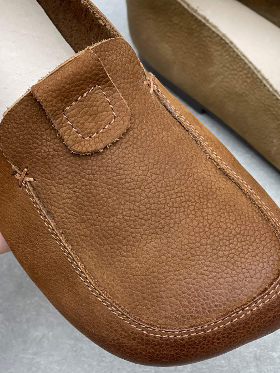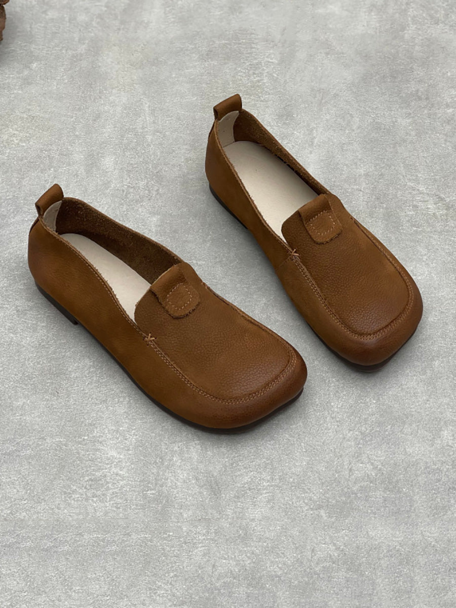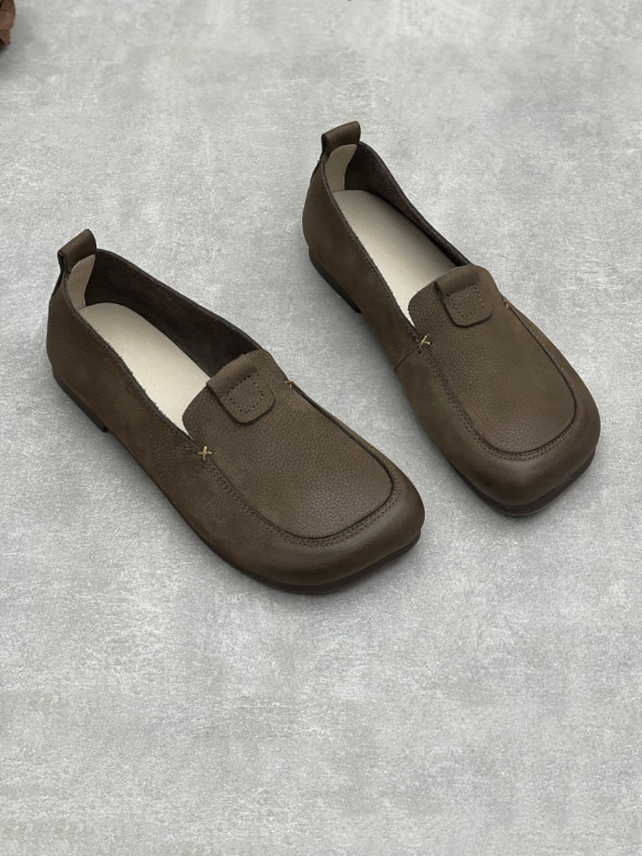 Women Vintage Soft Leather Square Collar Low Heel Shoes