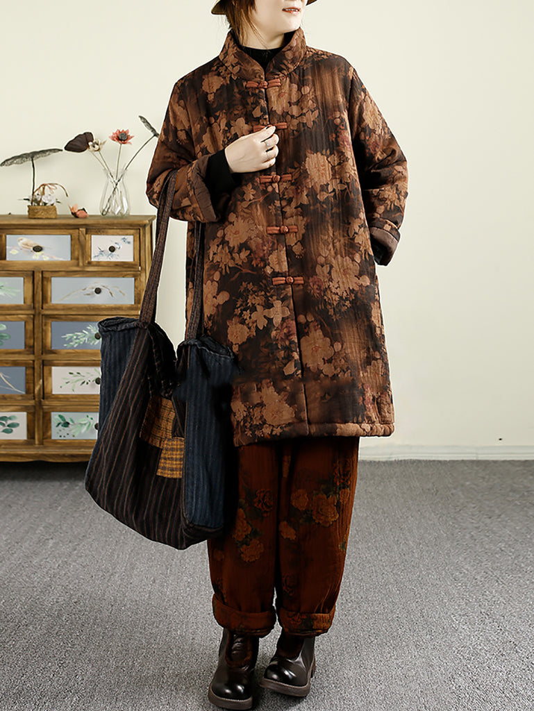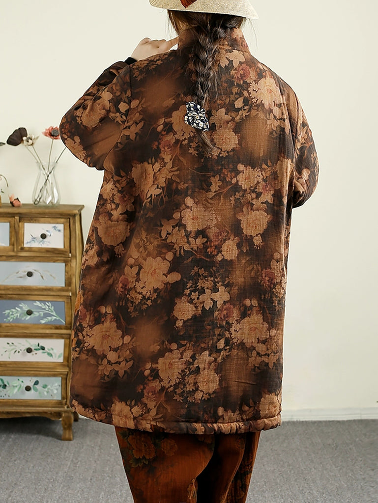 Women Vintage Winter Flower 100%Cotton Padded Coat