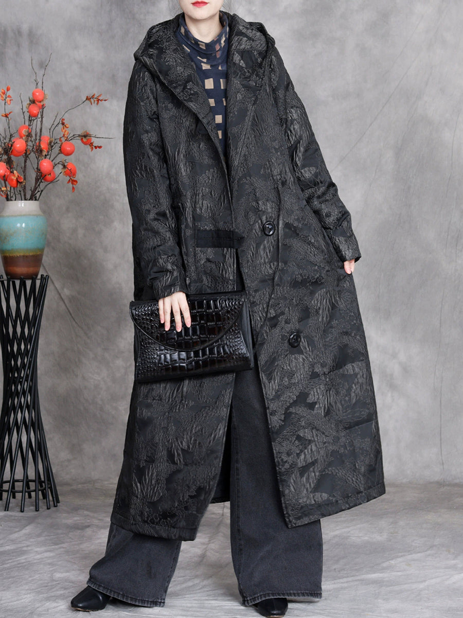 Women Vintage Winter Flower Jacquard Hooded Padded Coat