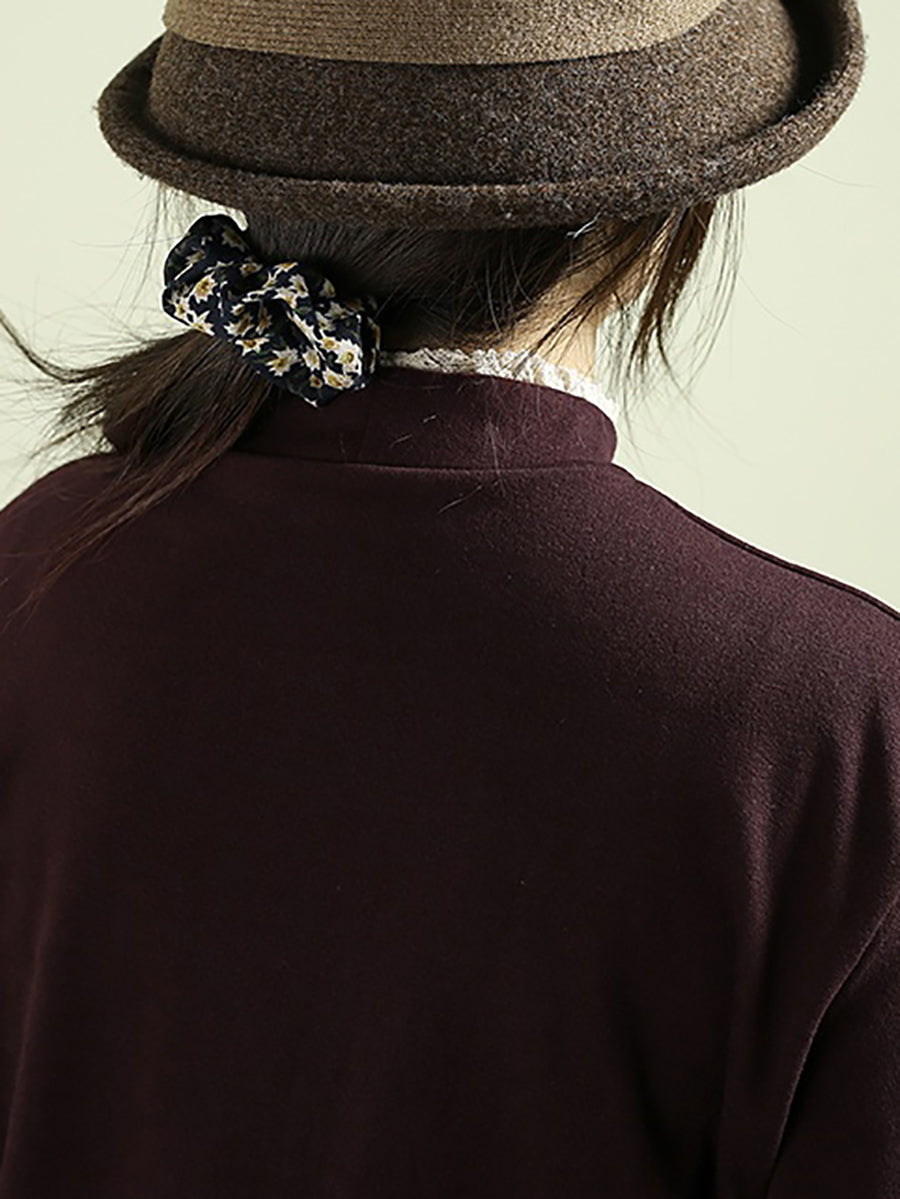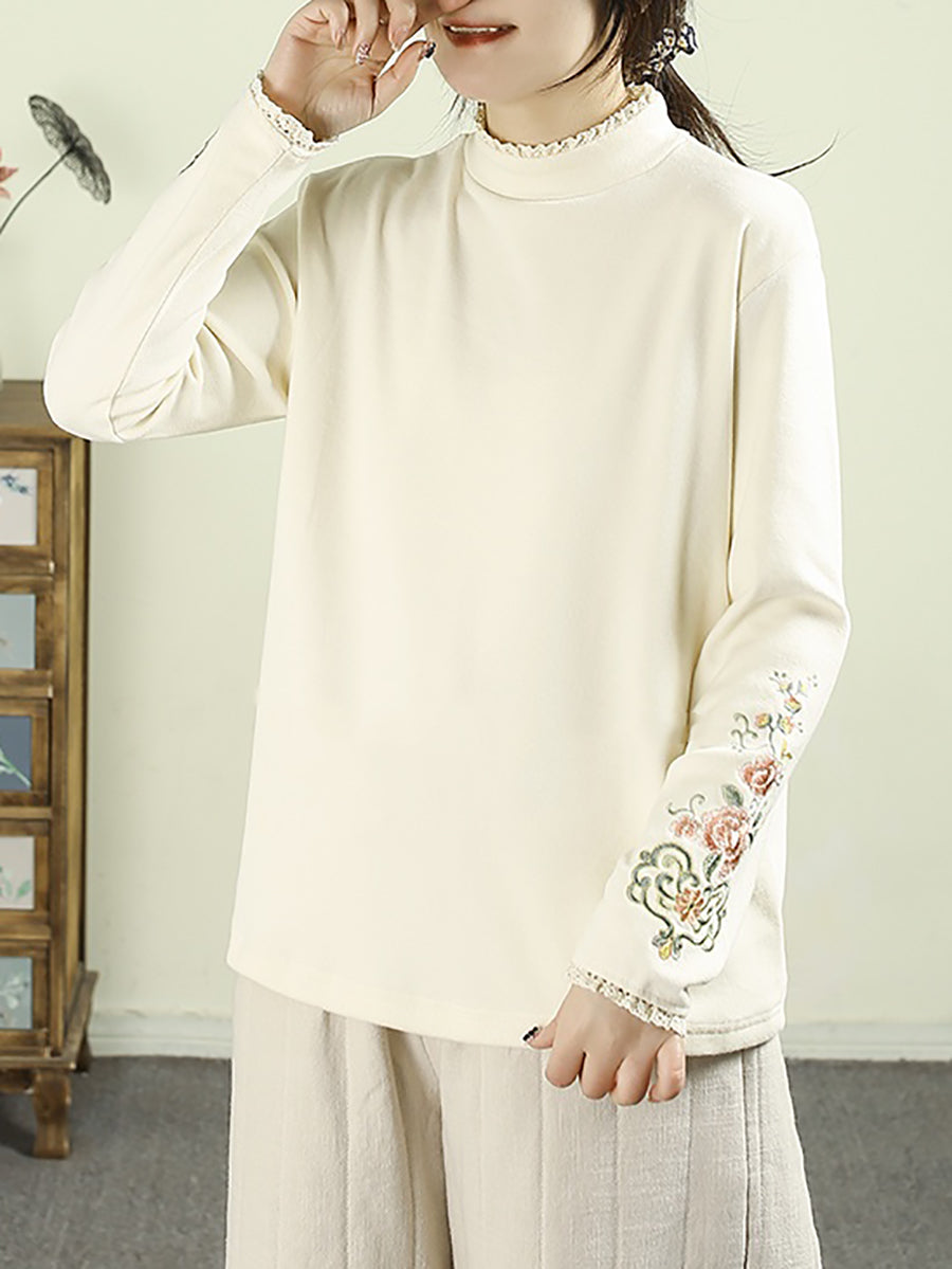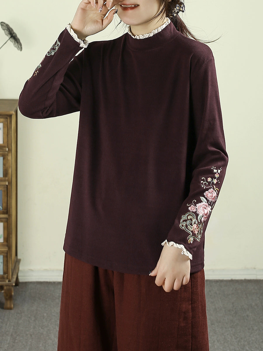 Women Winter Artsy Embroidery Half-Turtleneck Blouse