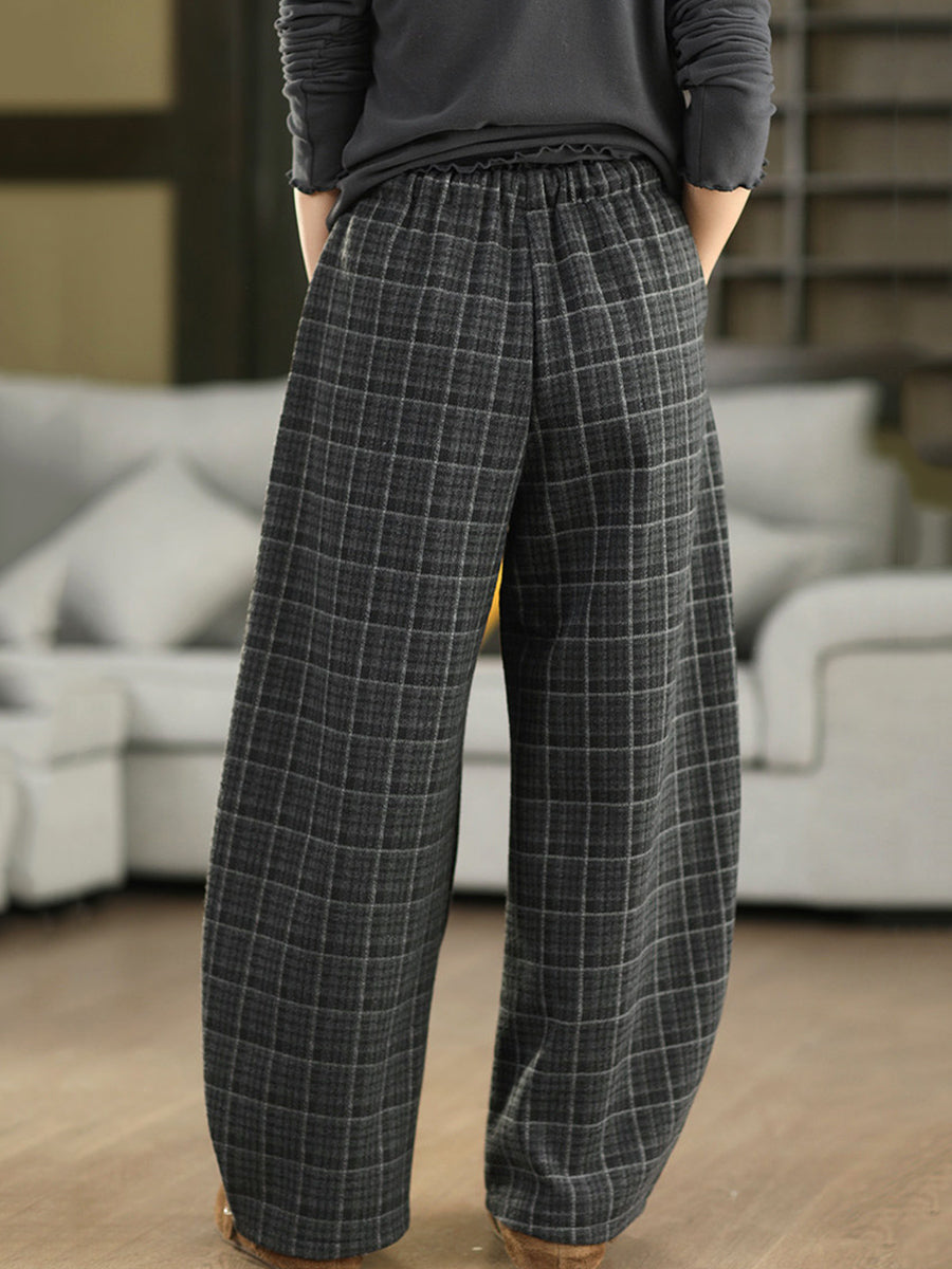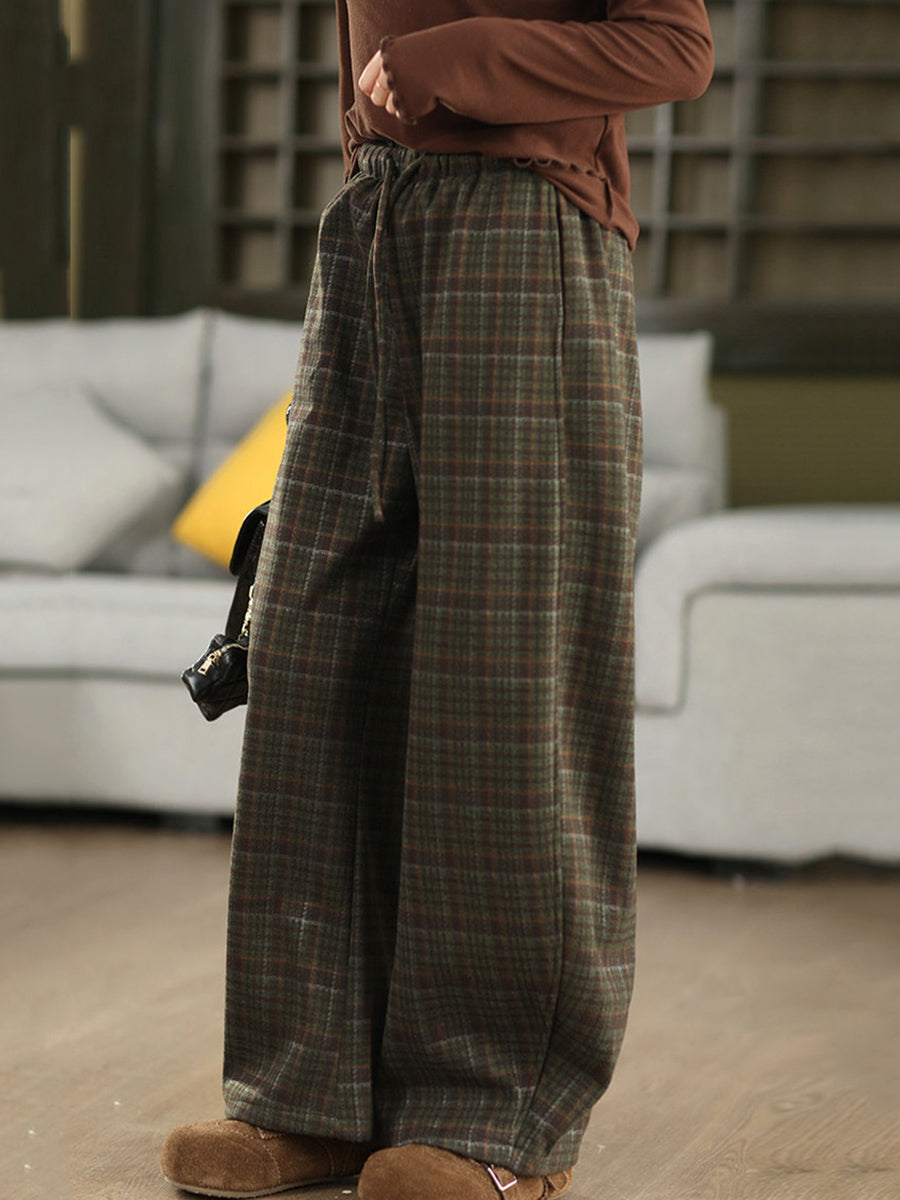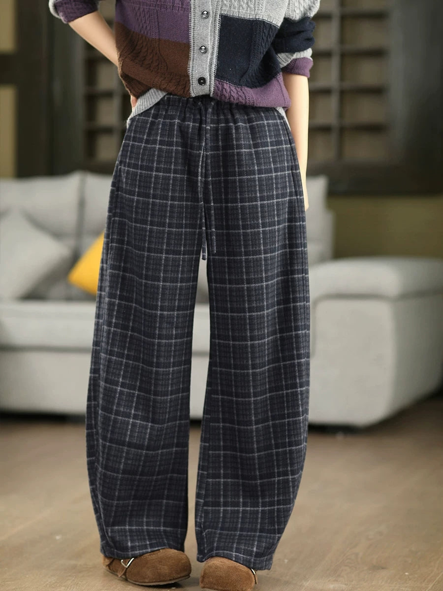 Women Winter Artsy Plaid Fleece-lined Straight Pants