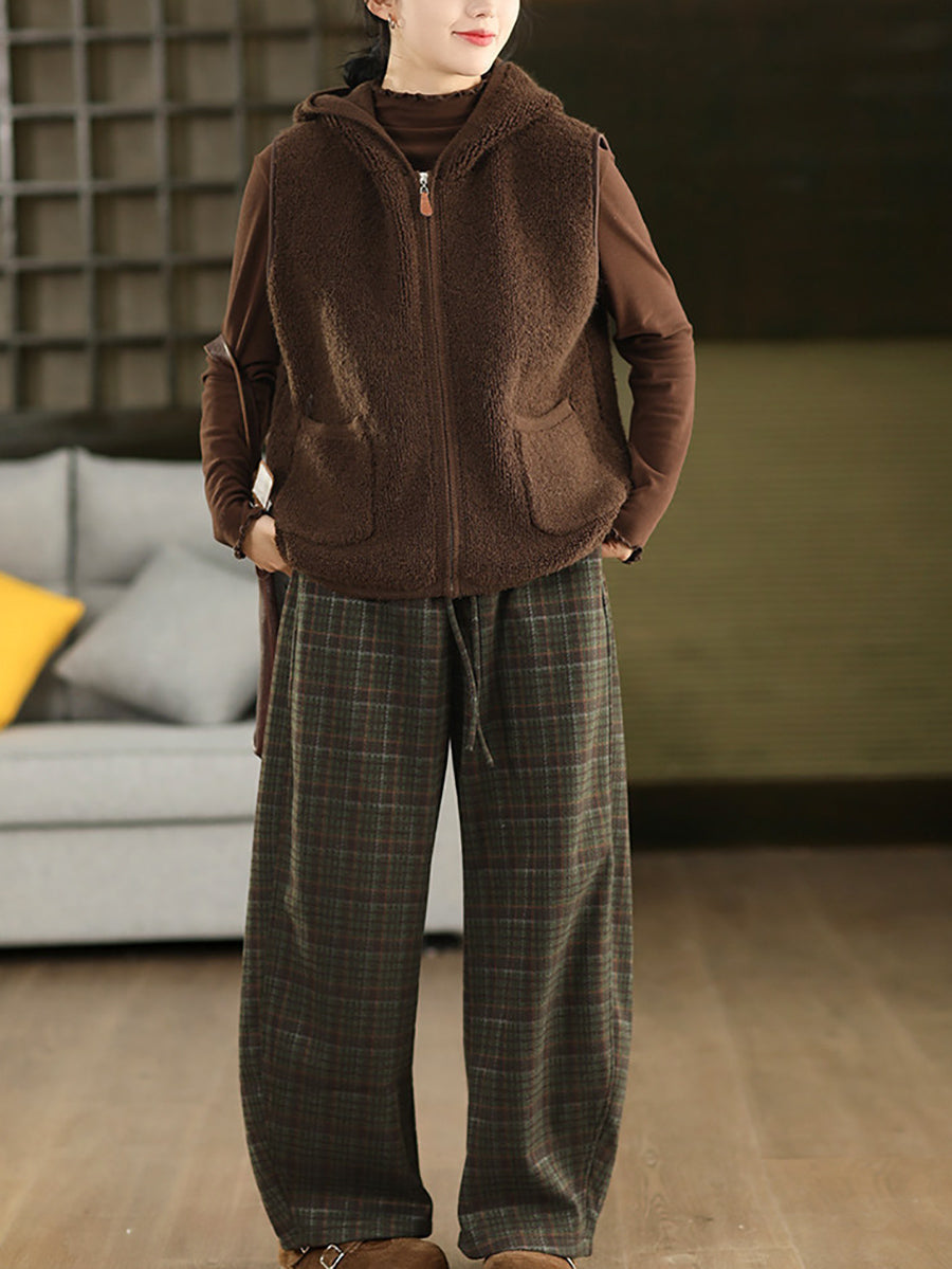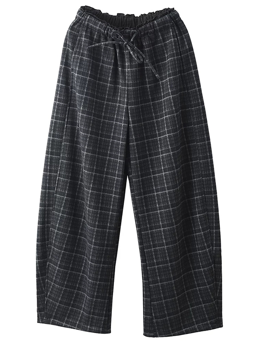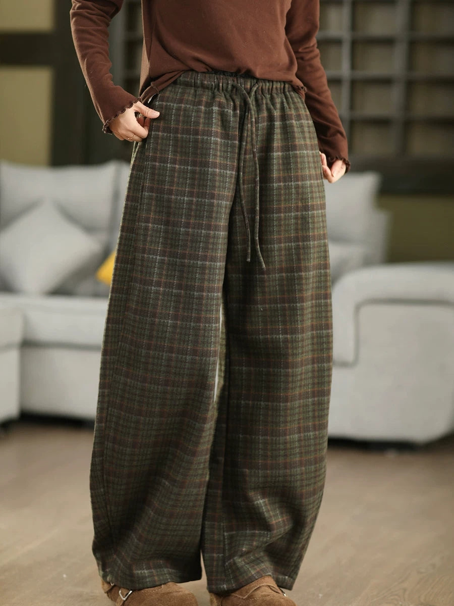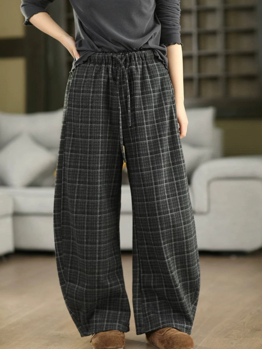 Women Winter Artsy Plaid Fleece-lined Straight Pants