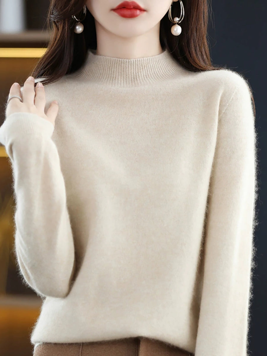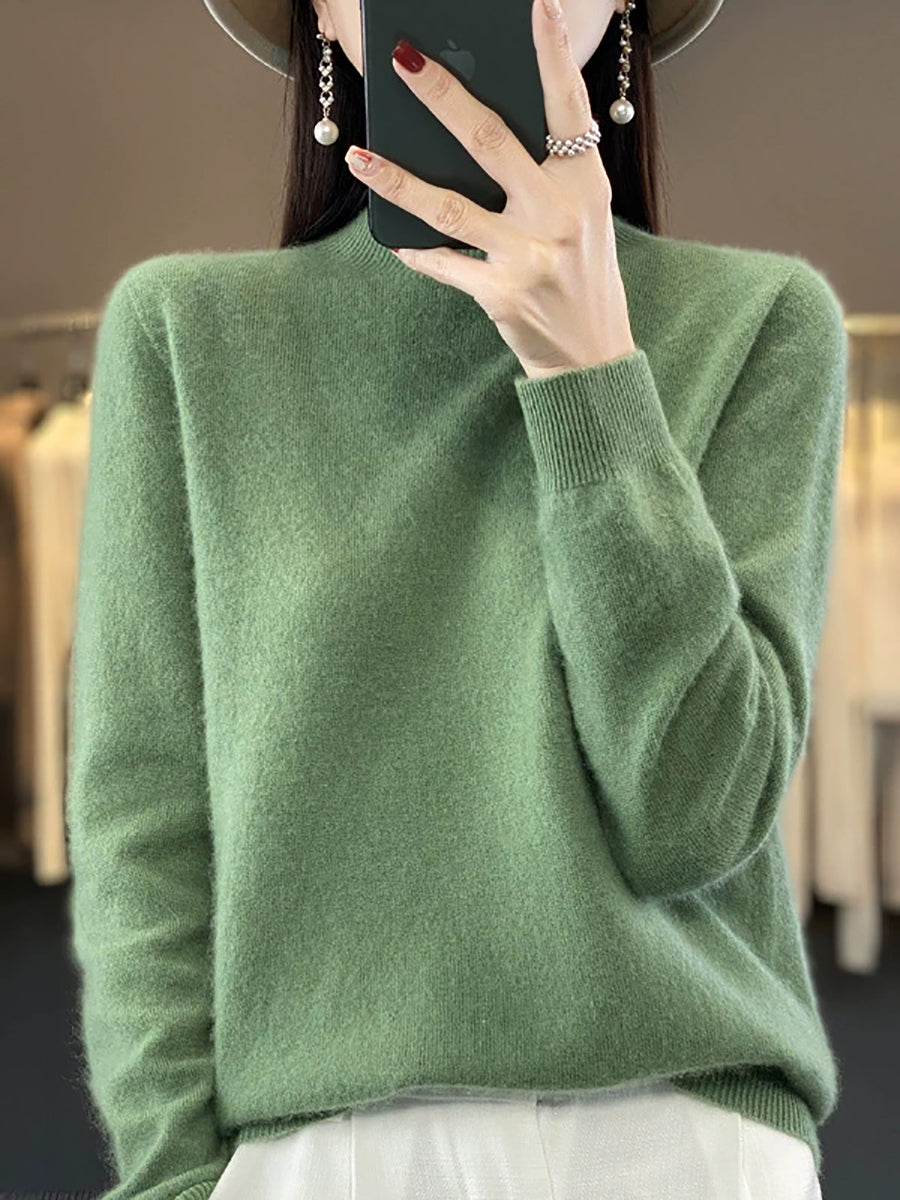 Women Winter Casual Pure Color Half-turtleneck Sweater