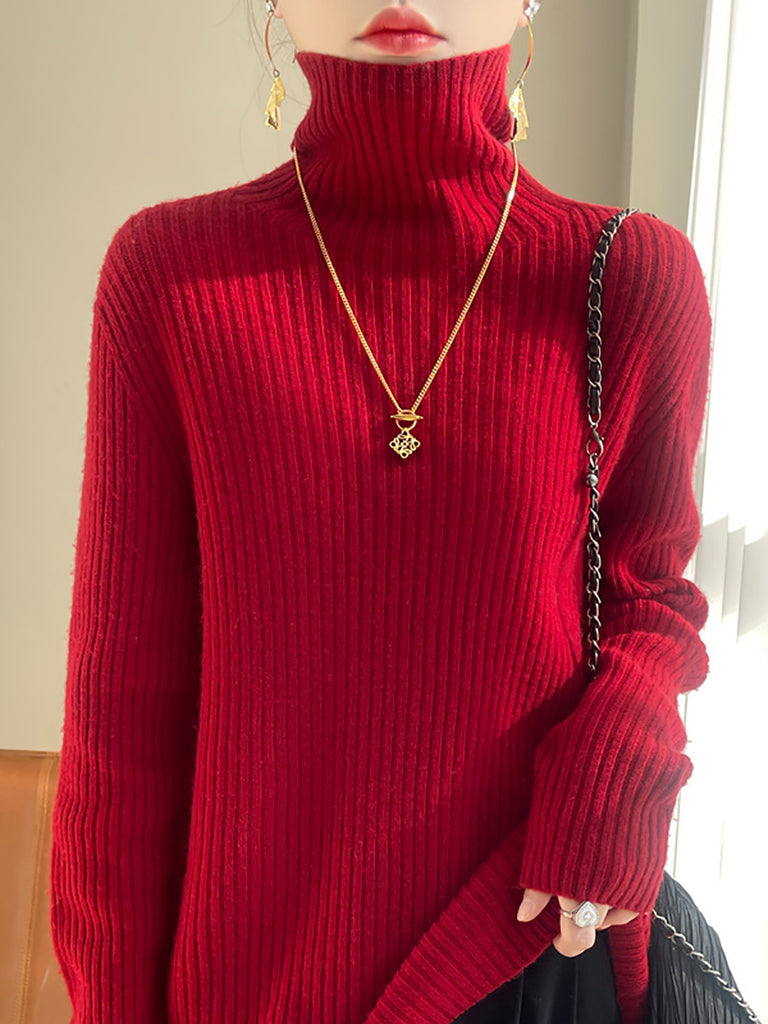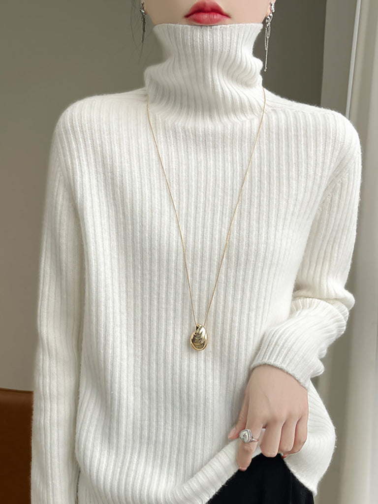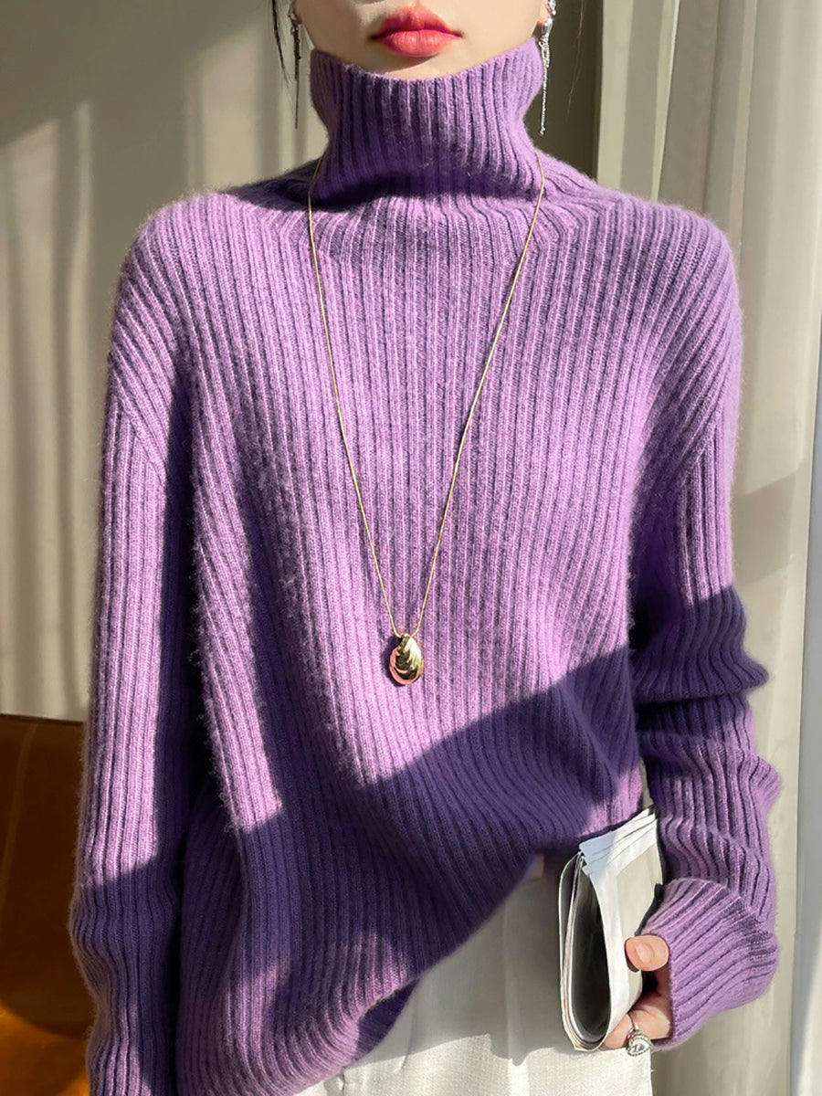 Women Winter Casual Pure Color Knitted Turtleneck Sweater