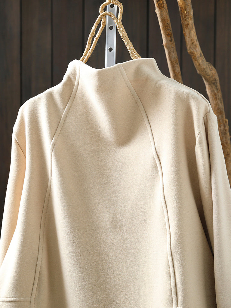 Women Winter Casual Pure Color Spliced Half-Turtleneck Blouse