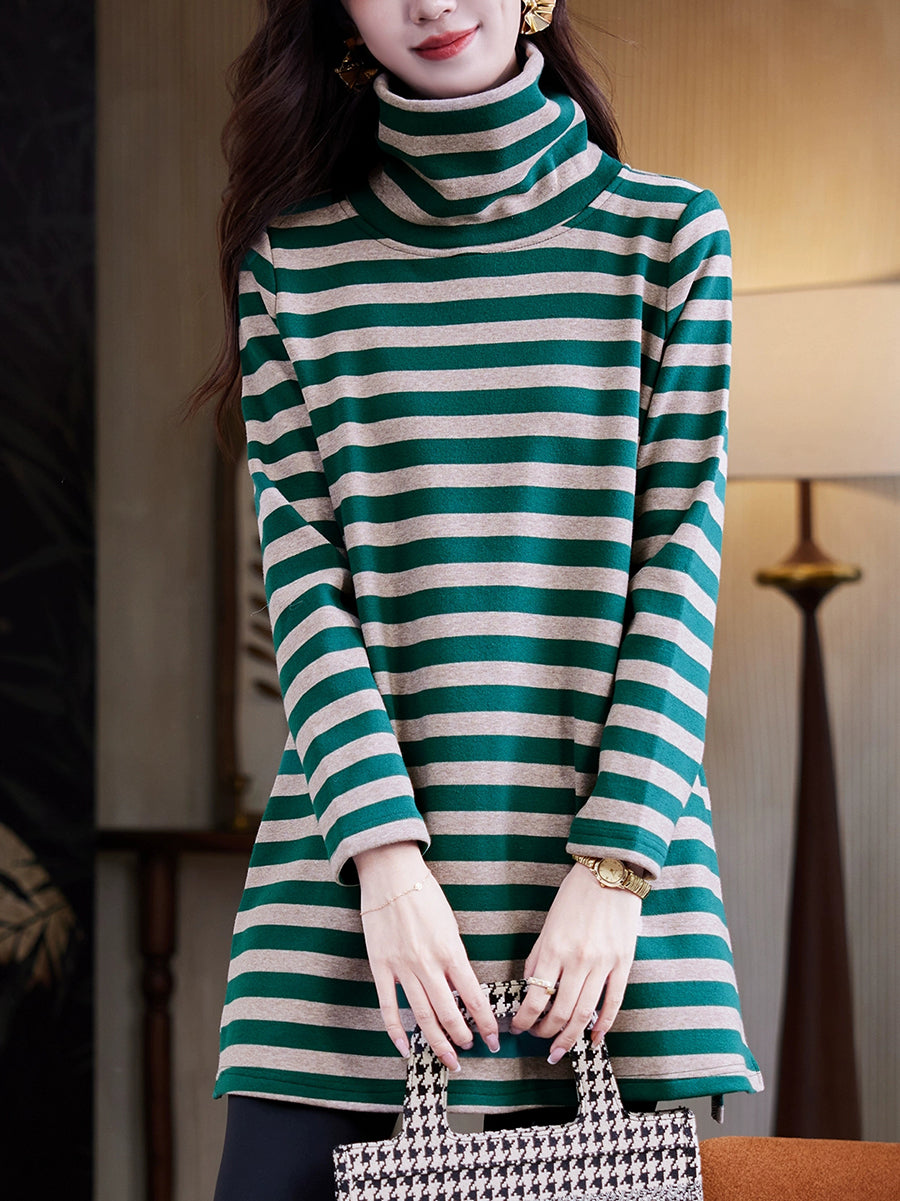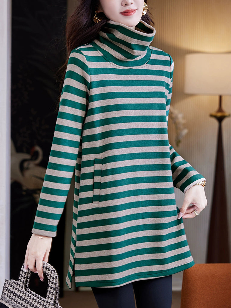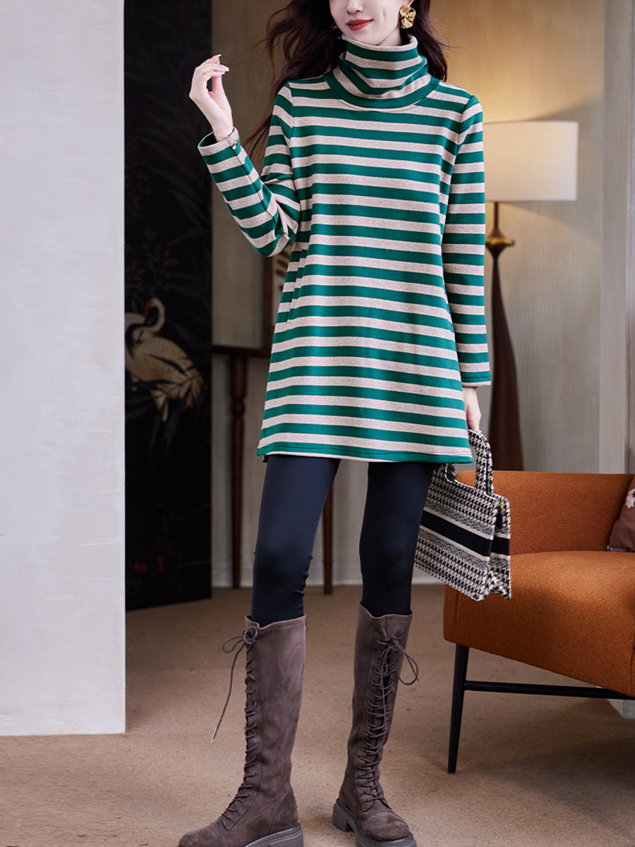 Crafted from a premium blend of 62.5% cotton, 33.5% polyester, and 4% spandex, this winter essential delivers both comfort and durability. The classic stripe pattern pairs seamlessly with a refined turtleneck collar, while full-length regular sleeves provide complete coverage. Designed with a relaxed casual aesthetic, it transitions effortlessly from autumn through winter, making it a versatile addition to any seasonal wardrobe.