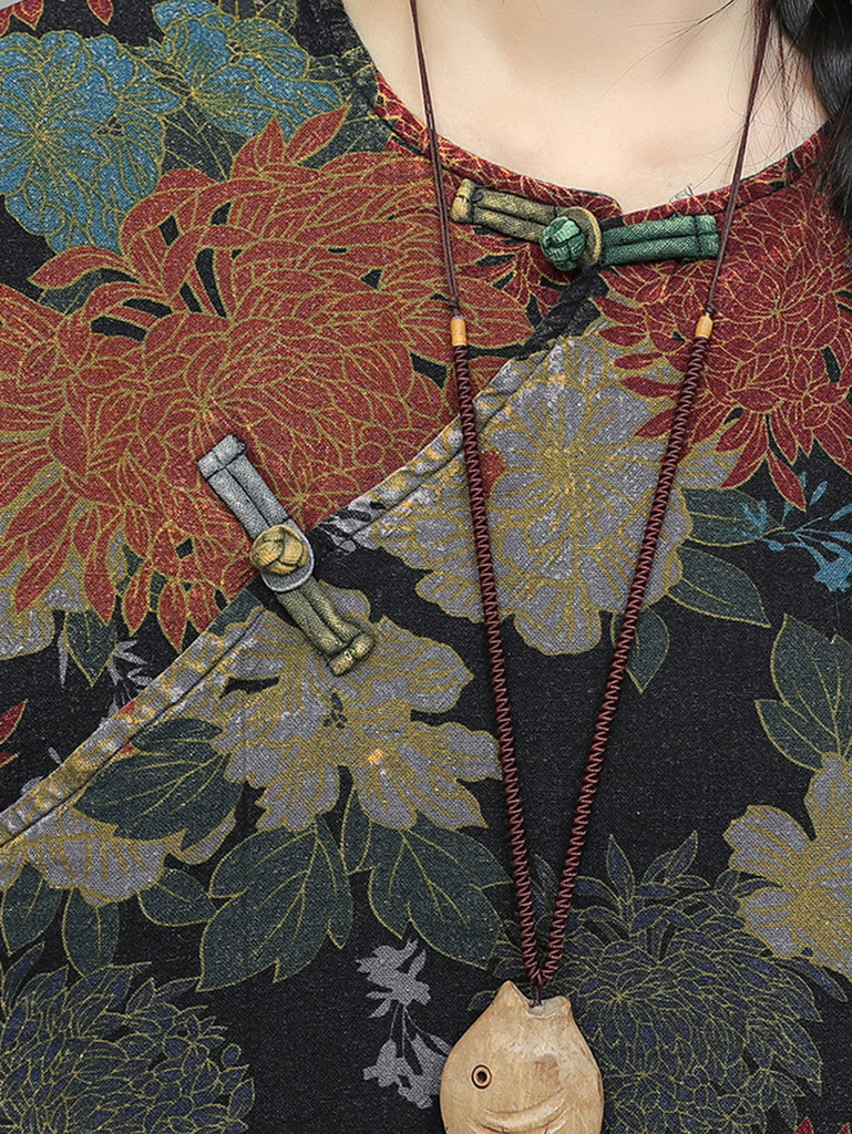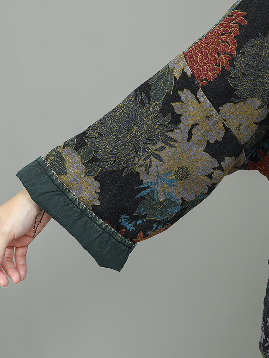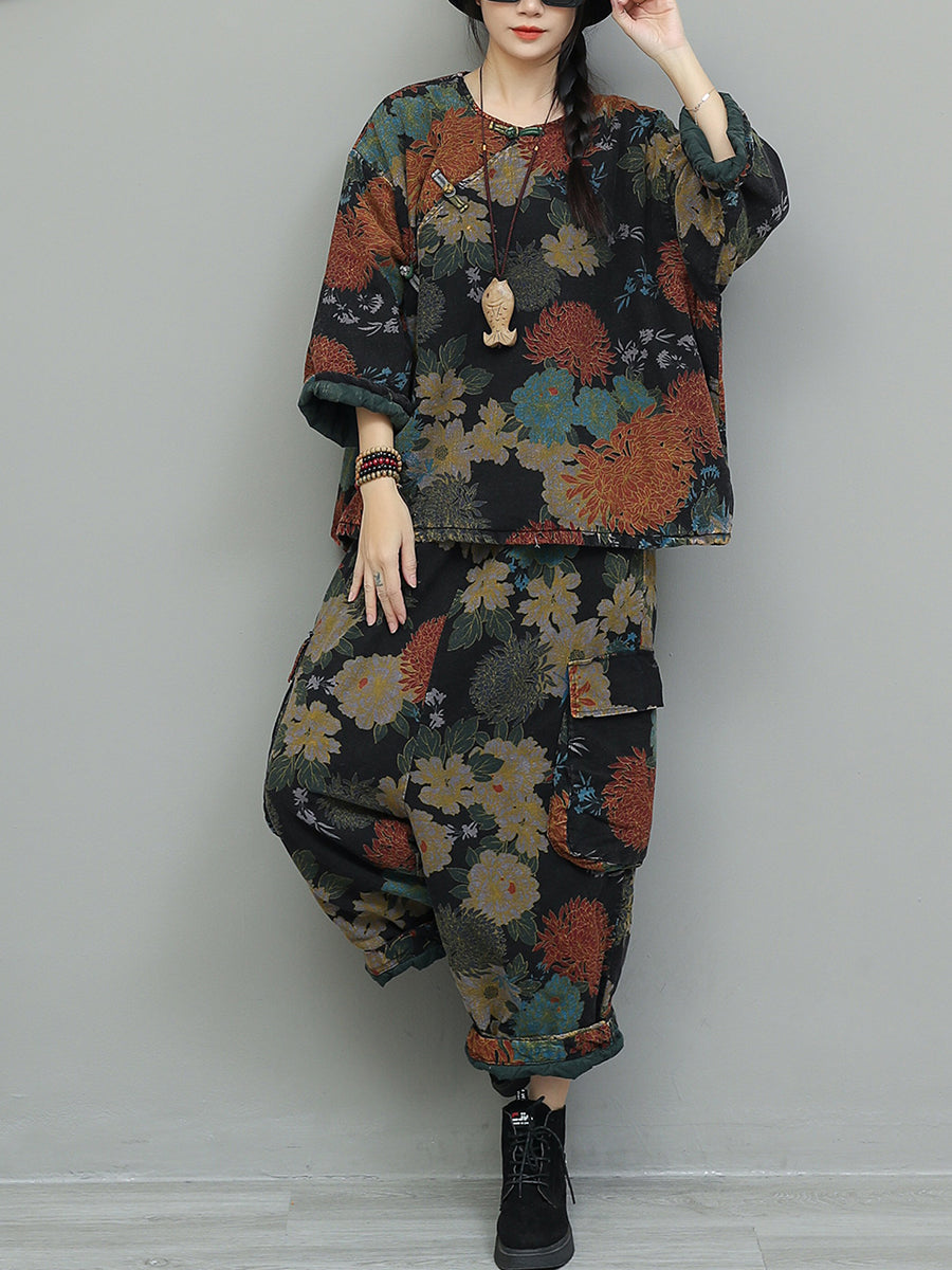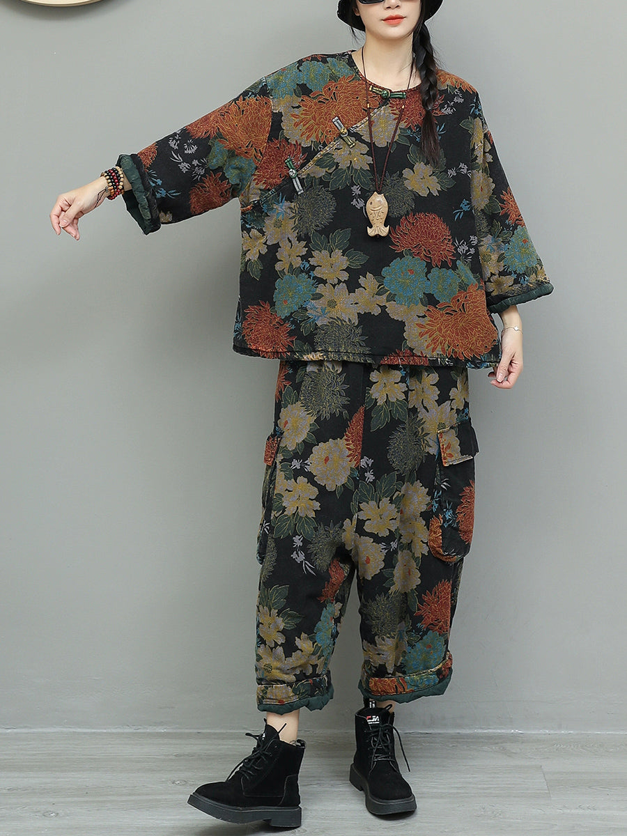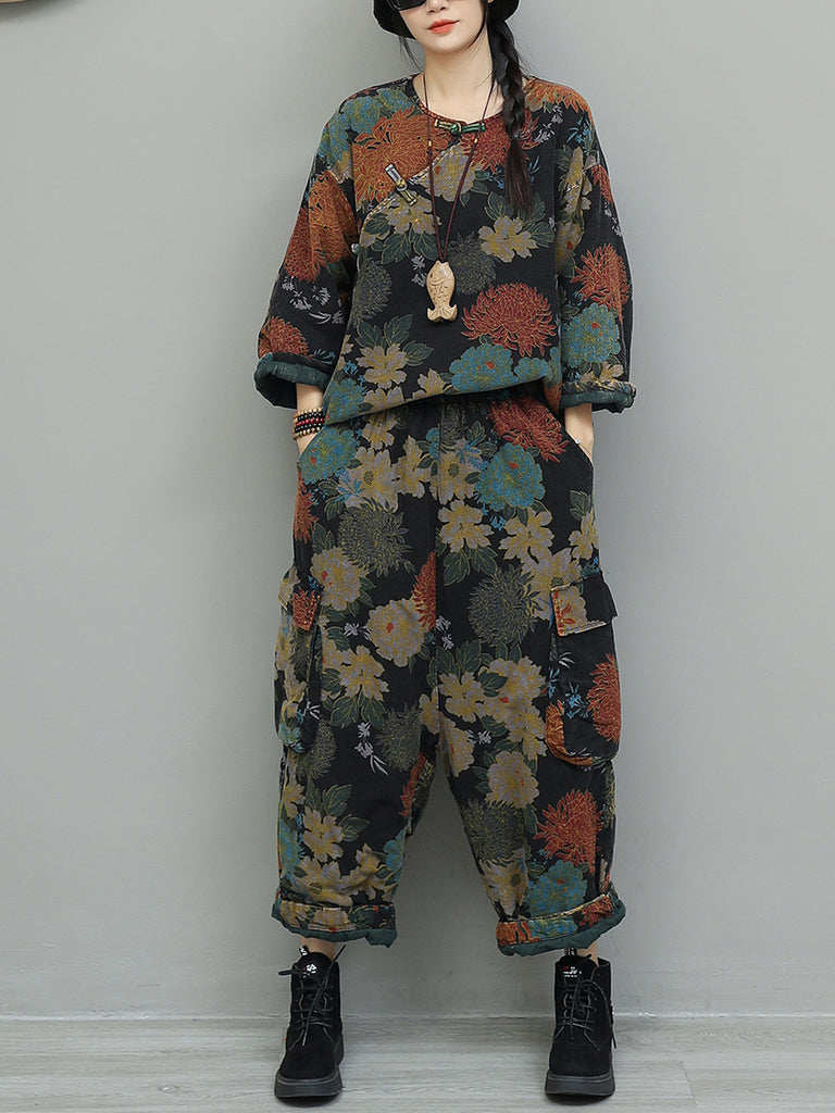Women Winter Ethnic Flower O-Neck Padded Suits