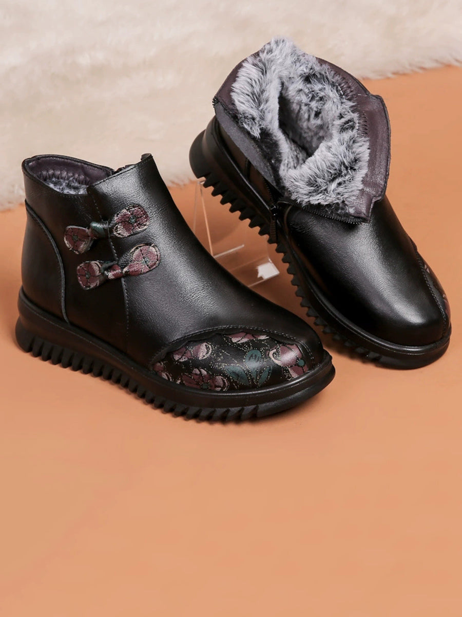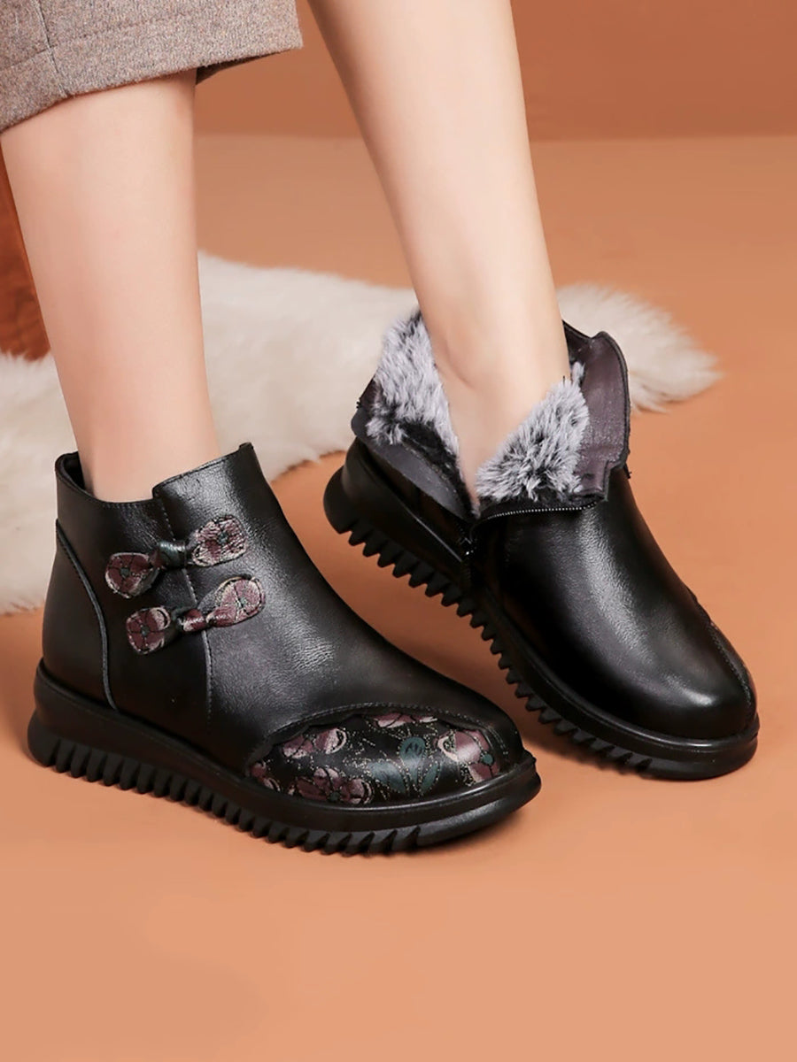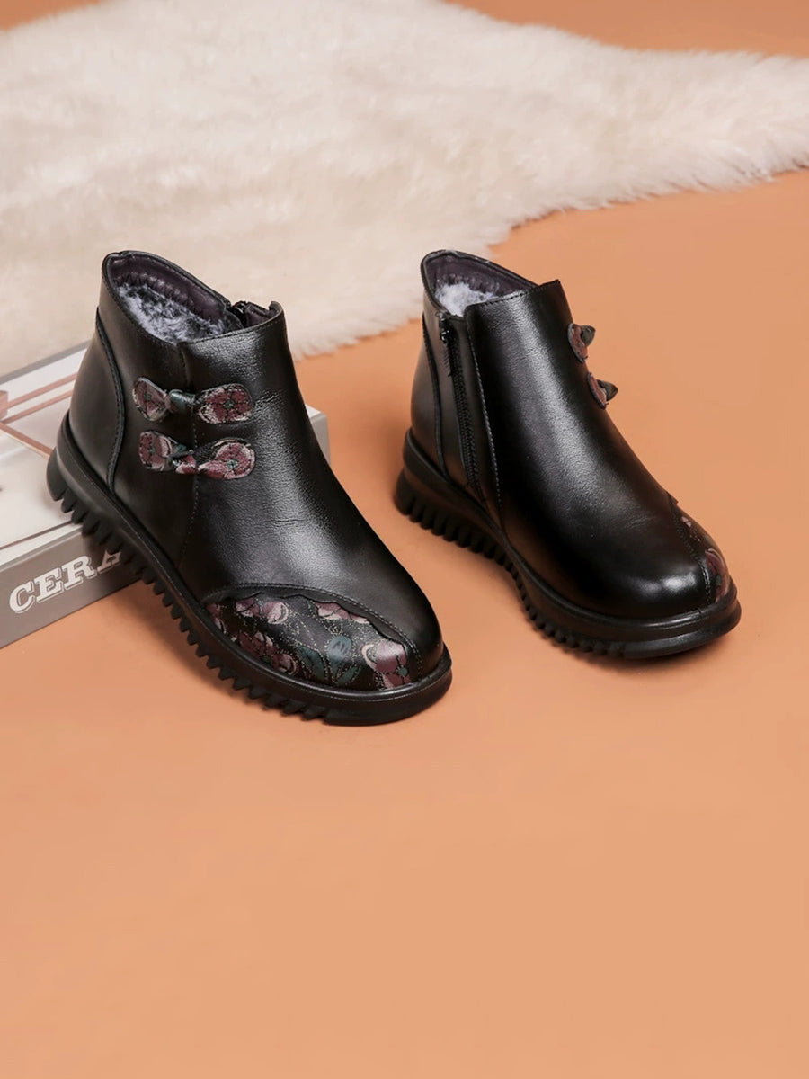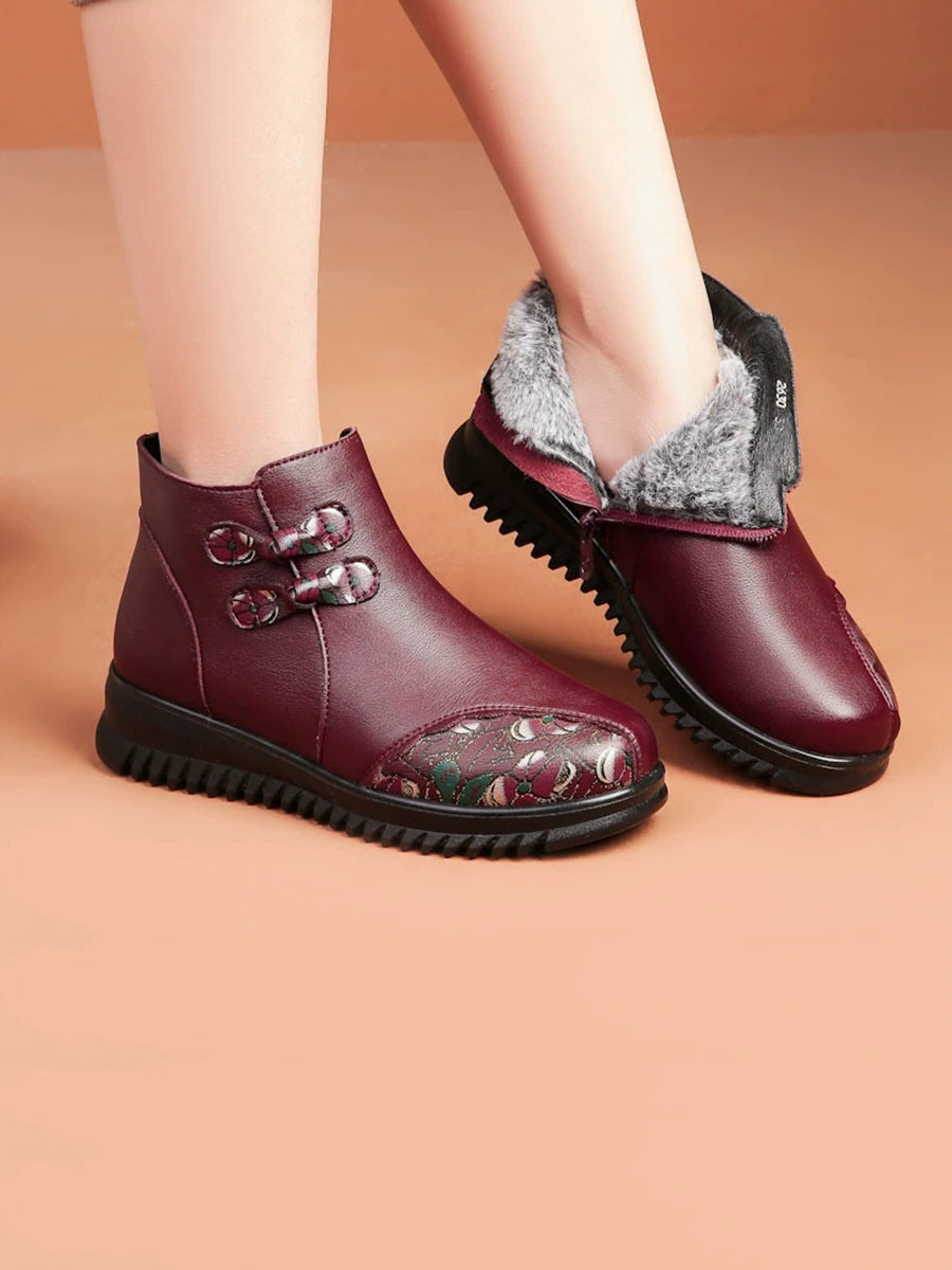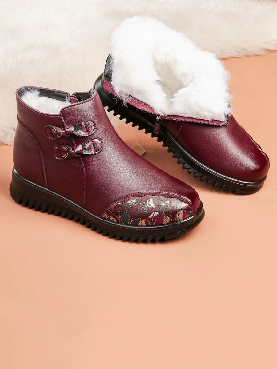Women Winter Ethnic Leather Spliced Fleece-lined Boots