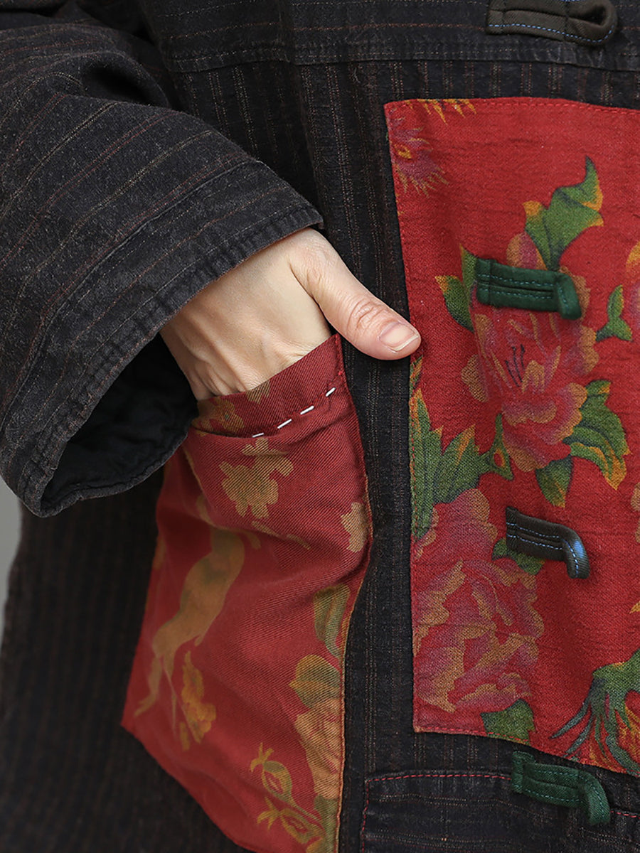 Women Winter Ethnic Patch Spliced O-Neck Suits