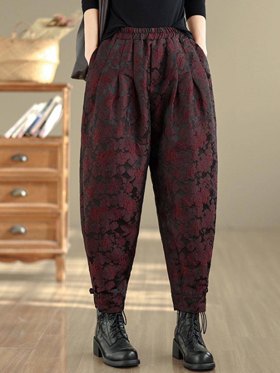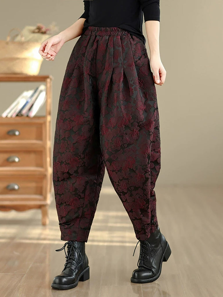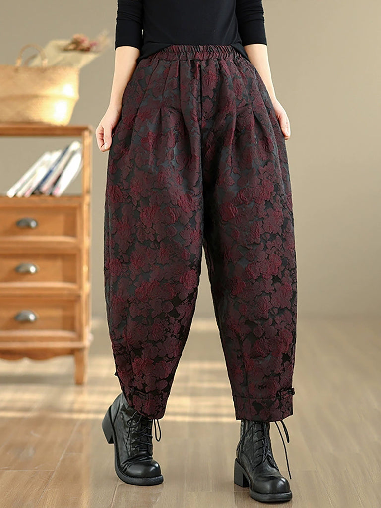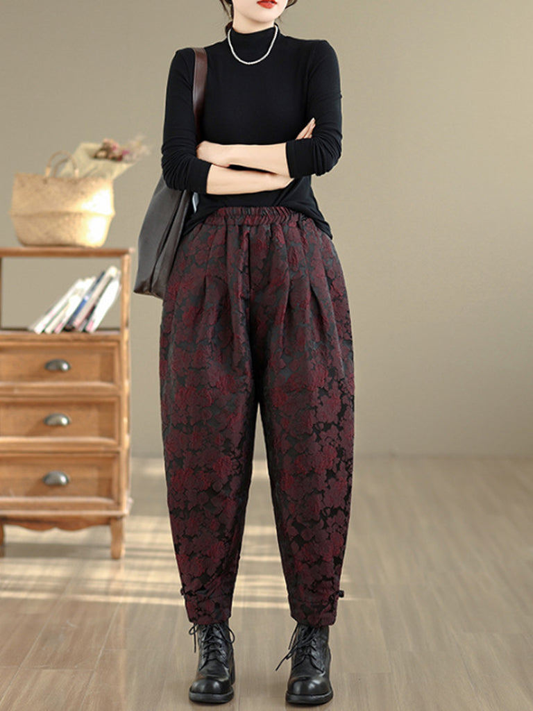 Women Winter Flower Jacquard Fleece-lined Harem Pants
