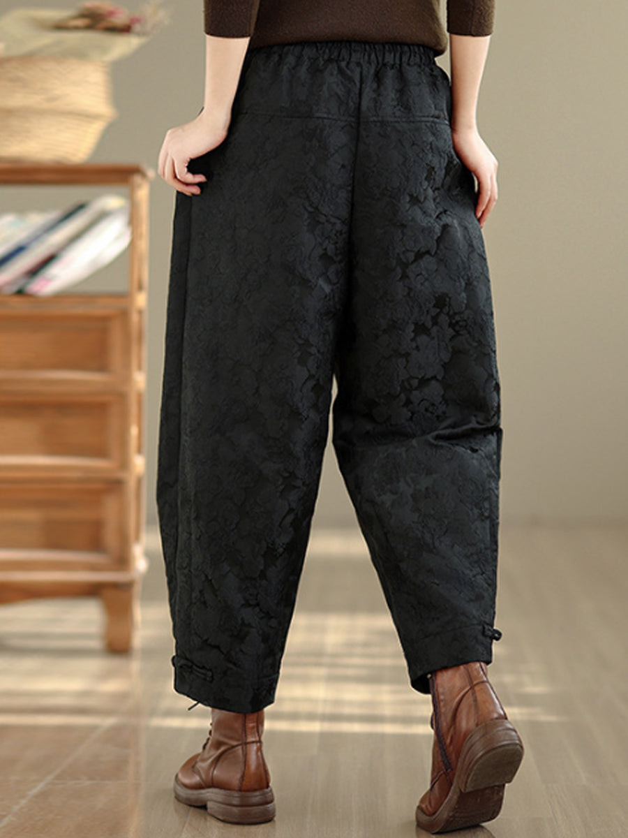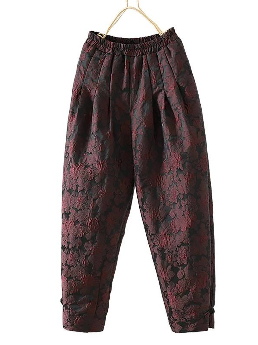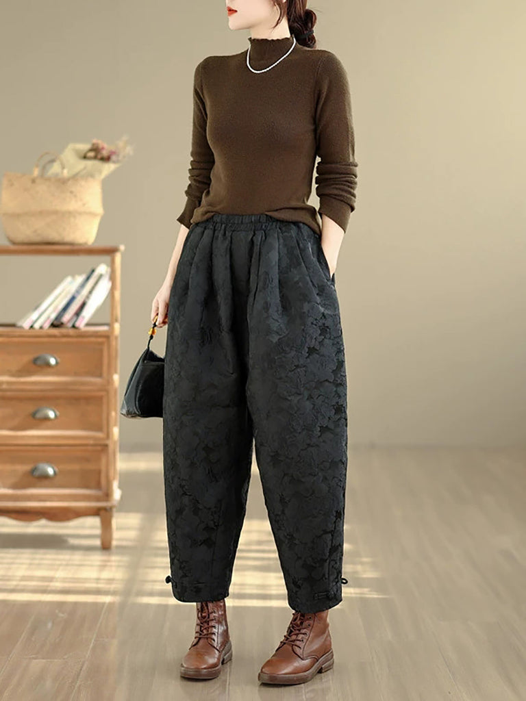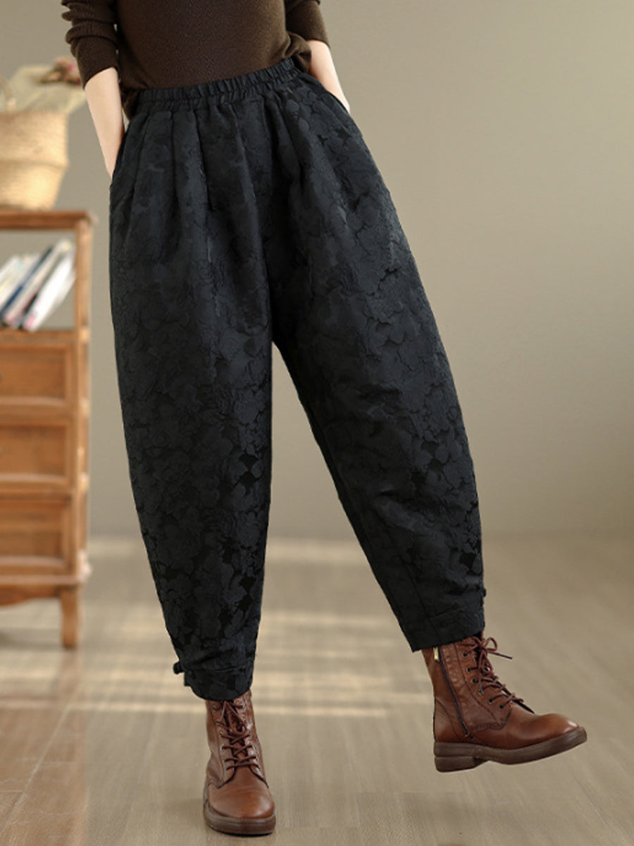 Women Winter Flower Jacquard Fleece-lined Harem Pants