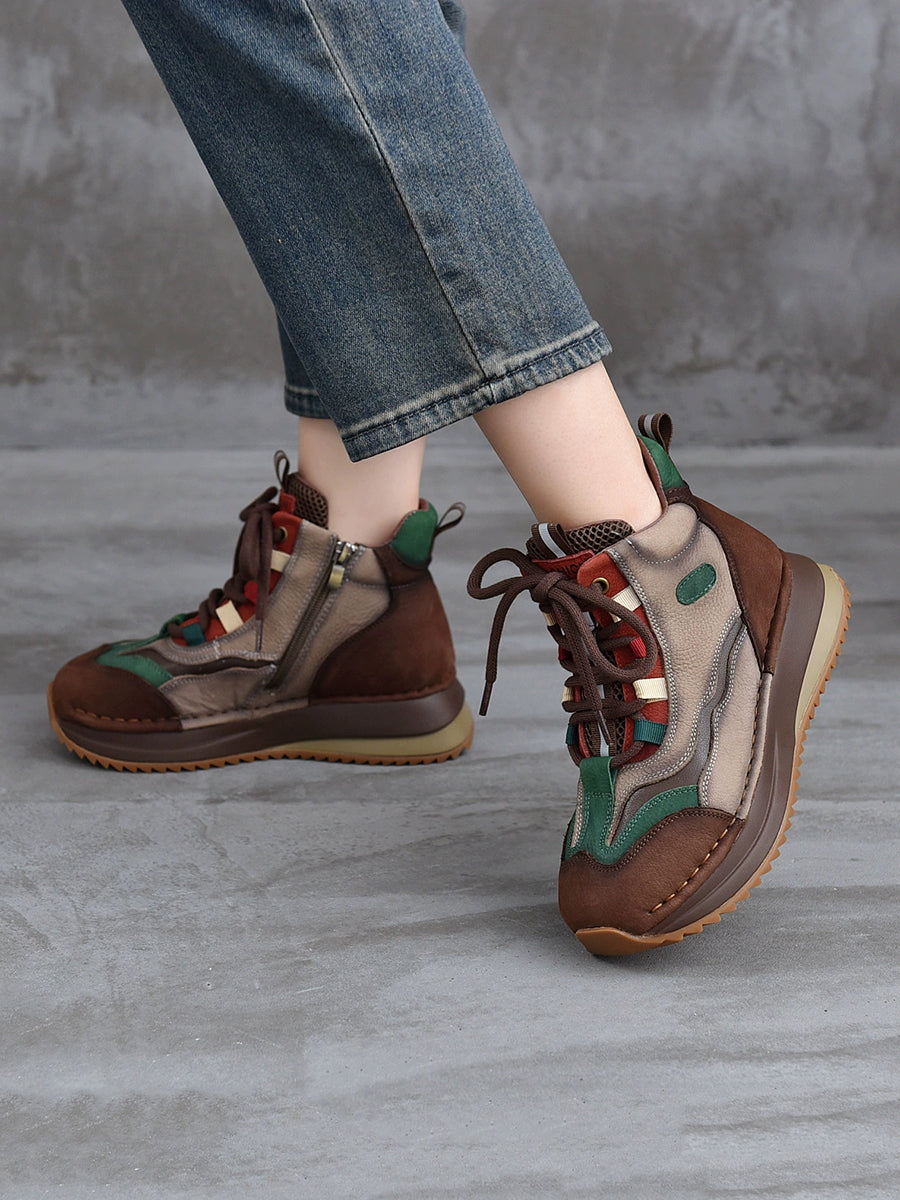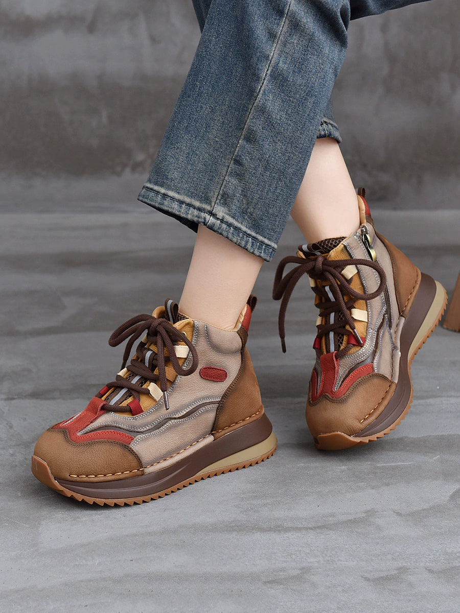 Women Winter Genuine Leather Colorblock Ankle Boots