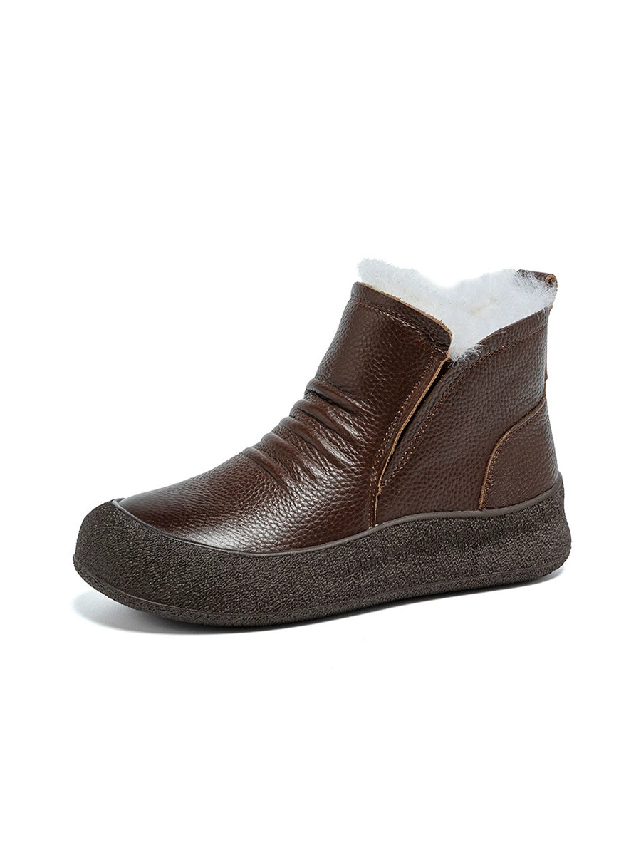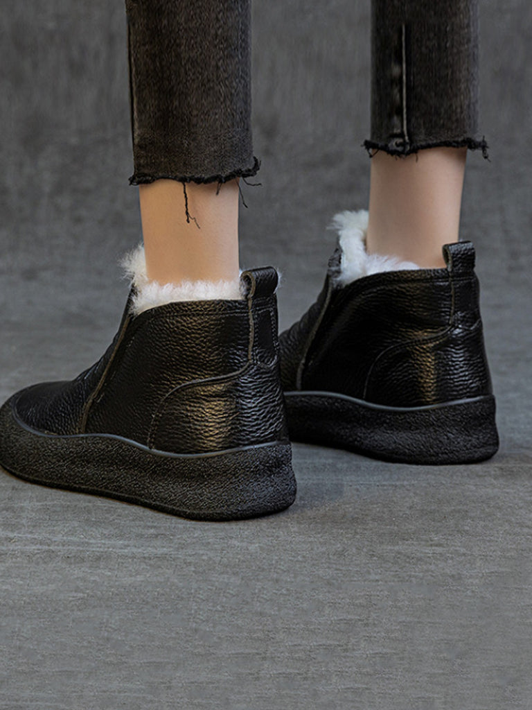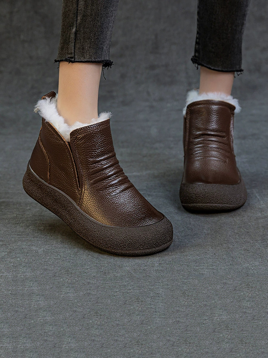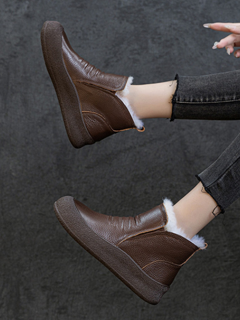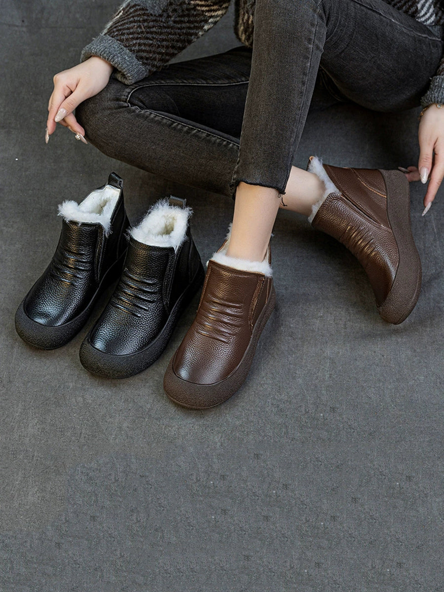 Women Winter Genuine Leather Fleece-lined Ankle Boots